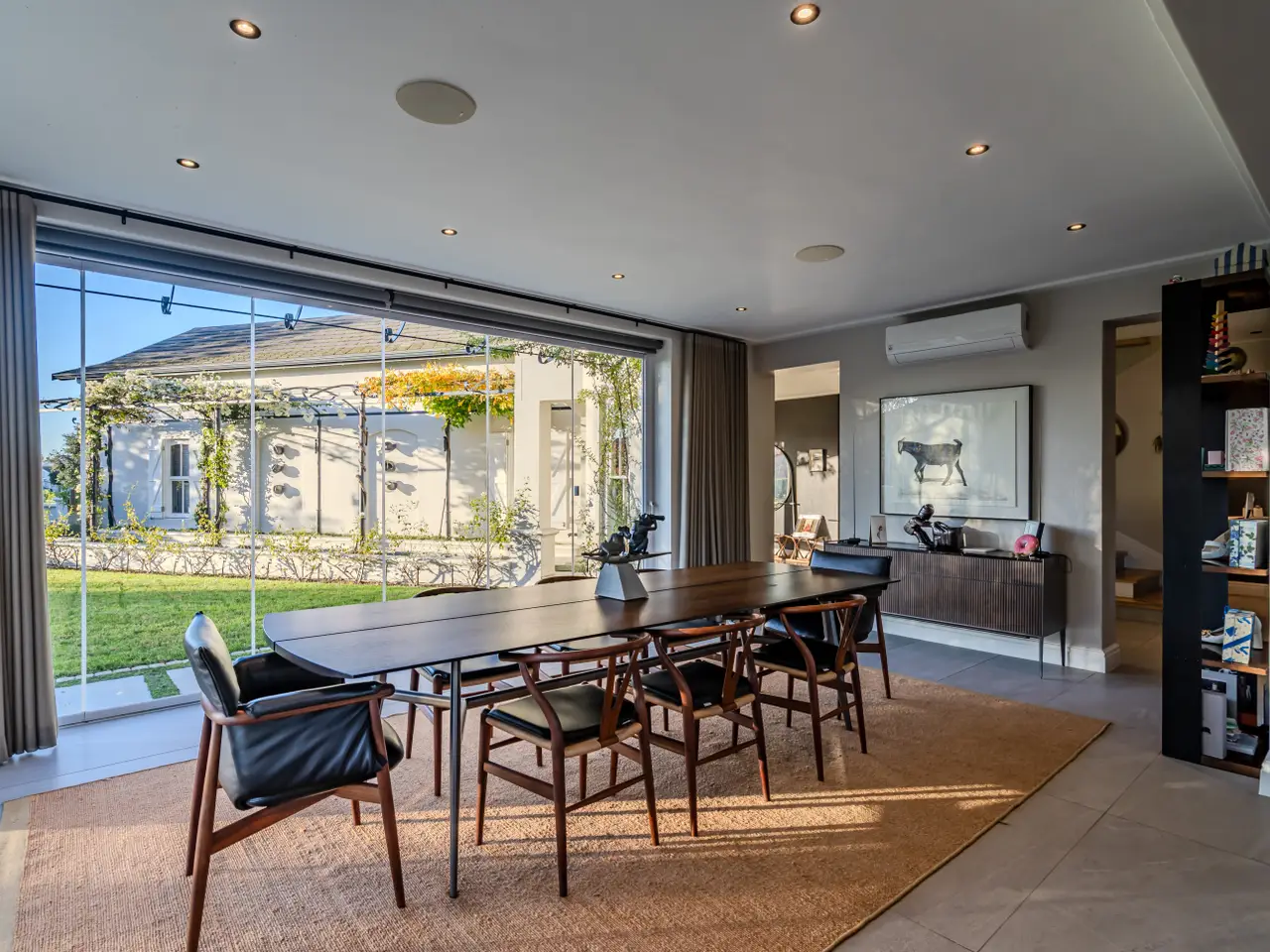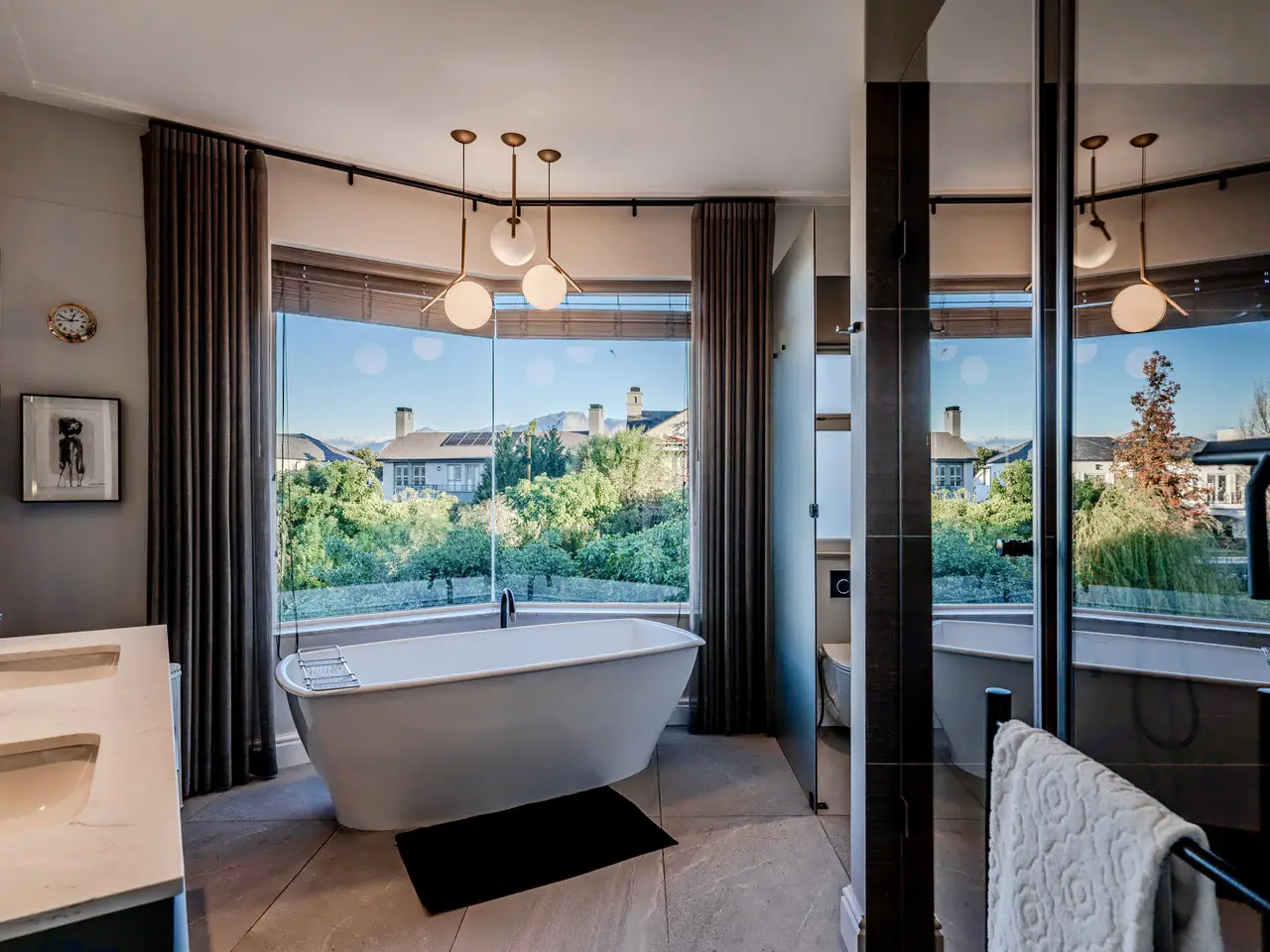 Immerse yourself in refined luxury at this exceptional modern estate—a striking architectural masterpiece designed for those who demand the very best in comfort, design, and lifestyle. This expansive residence offers a harmonious blend of clean lines, soaring ceilings, and walls of glass that flood the interiors with natural light while creating a seamless connection to curated outdoor living spaces. The open-concept layout flows effortlessly between spacious living areas, a designer chef’s kitchen, and a series of artfully appointed lounges and dining zones. A highlight of this property is the indoor swimming pool, a serene retreat with ambient lighting and elegant stonework, offering year-round enjoyment in a private setting just steps from the heart of the home. For elevated relaxation and entertainment, the home features a dedicated private cinema room, fully equipped for immersive viewing experiences with tiered seating, acoustic treatments, and state-of-the-art audio-visual technology. The primary suite is a sanctuary unto itself, complete with a boutique-style dressing room, and an opulent en-suite bath with a soaking tub, dual vanities. Each additional bedroom offers en-suite privacy, designer finishes, and tranquil garden or terrace views. Outside, refined landscaping and a series of terraces provide intimate settings for outdoor dining, lounging, and entertaining—all set within a serene, private environment. This extraordinary estate represents the pinnacle of modern luxury living—a residence of timeless elegance, world-class amenities, and incomparable craftsmanship. A rare offering for the discerning buyer seeking a lifestyle of prestige and effortless sophistication. Val de Vie Estate, nestled in the picturesque Paarl-Franschhoek Valley of South Africa's Cape Winelands, is renowned as Africa’s most secure luxury lifestyle estate. Spanning over 1,000 hectares, it offers an unparalleled blend of natural beauty, world-class amenities, and Val de Vie Estate seamlessly blends luxury living with a commitment to wellness, nature, and community, offering residents an unparalleled lifestyle in the heart of the Cape Winelands