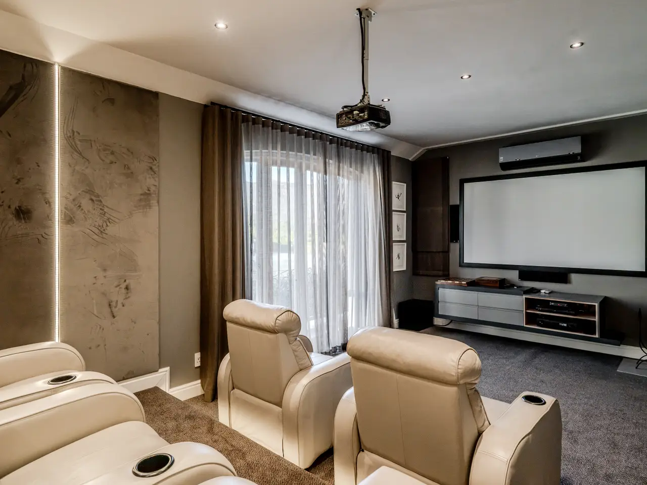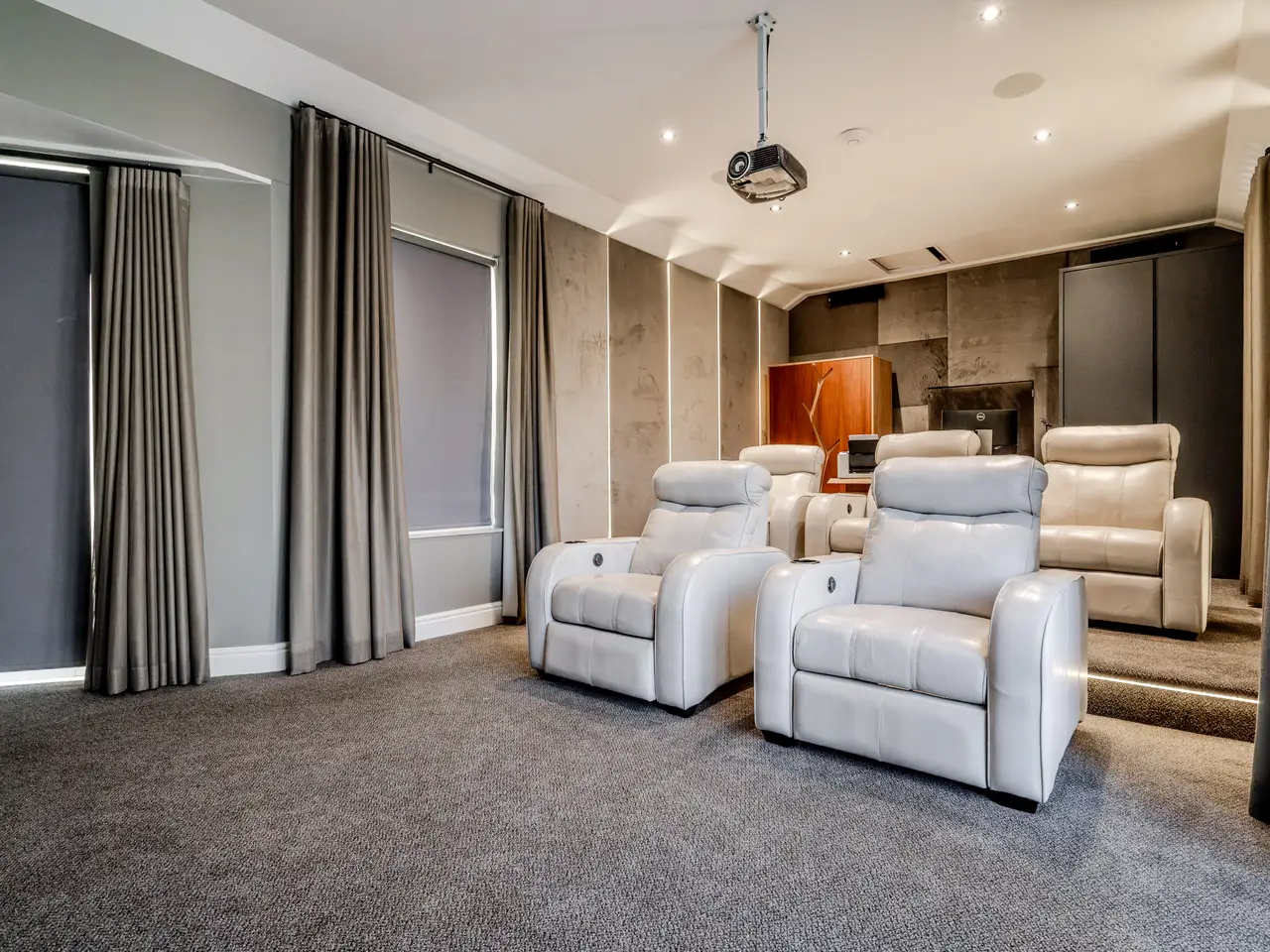 • Private cinema room with tiered seating