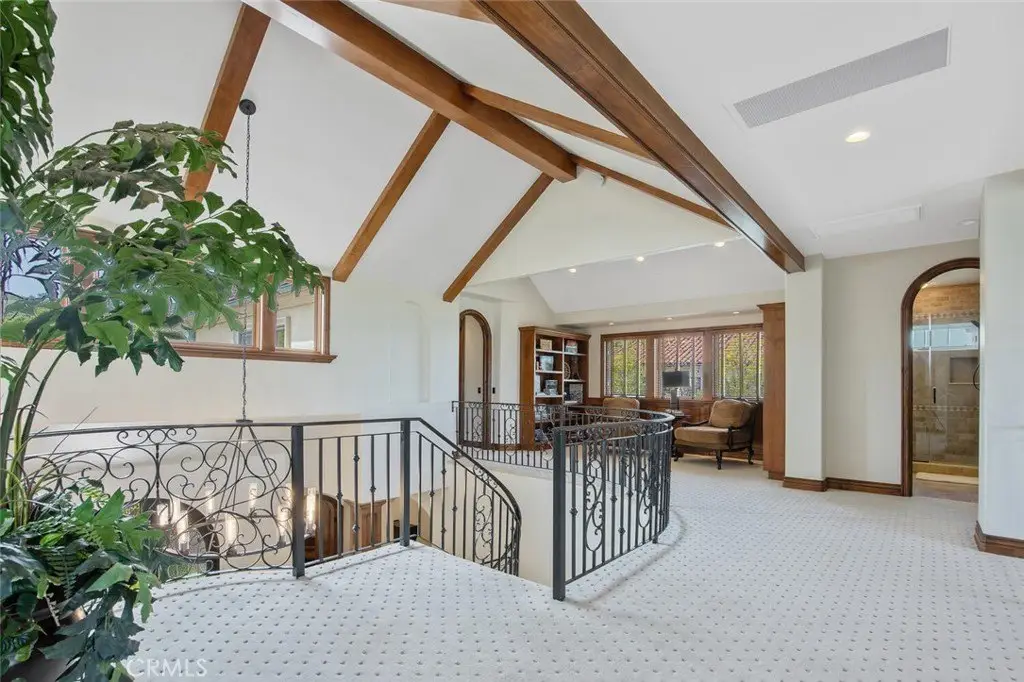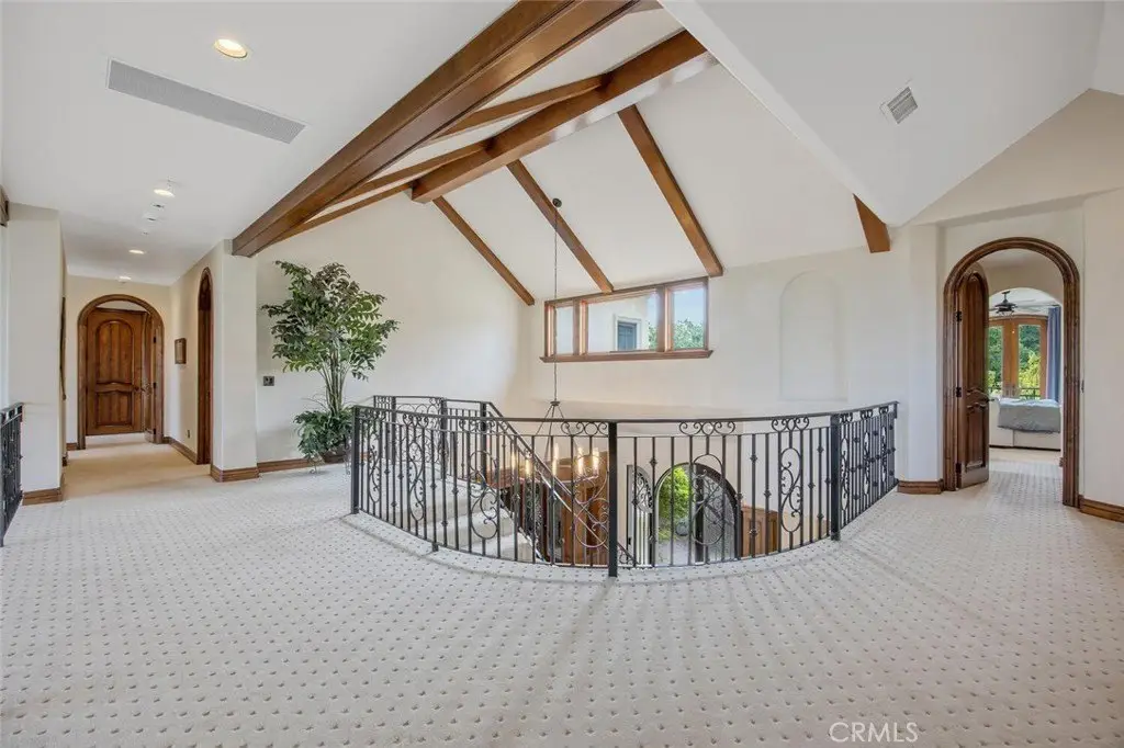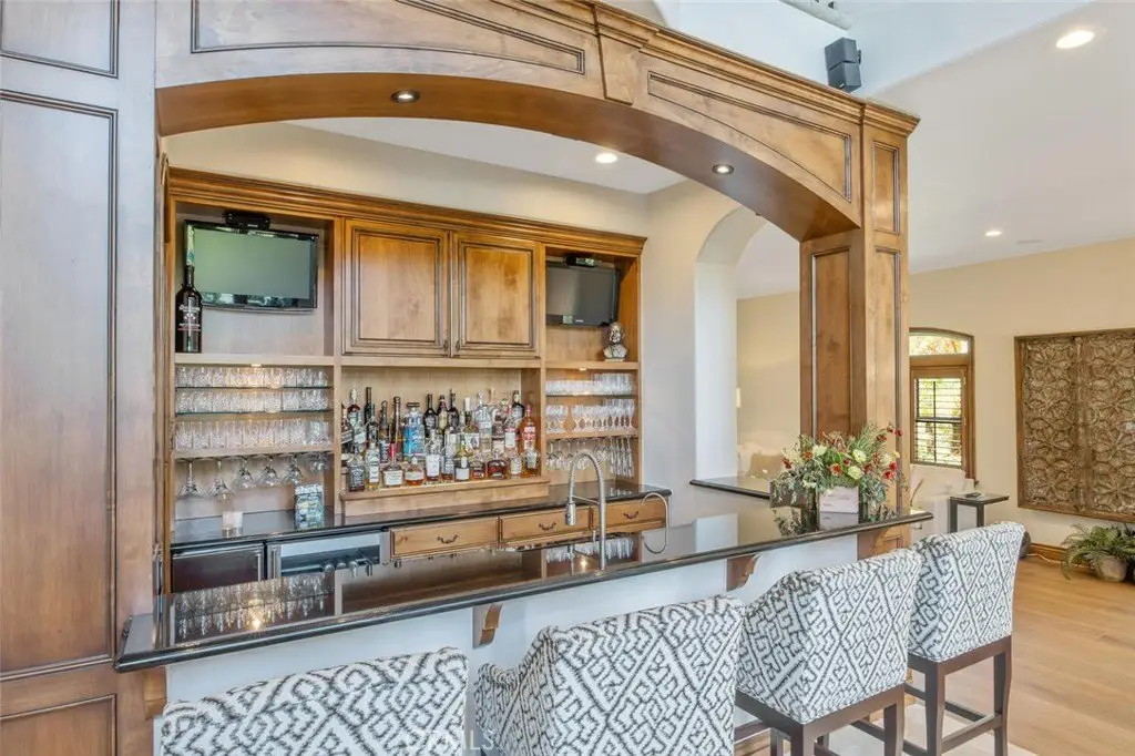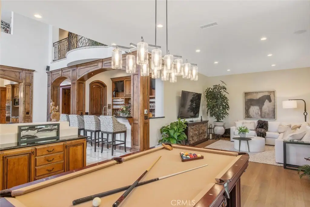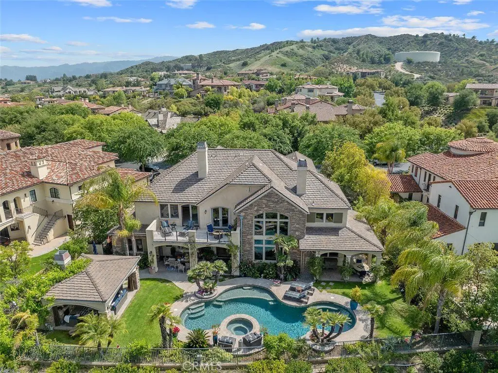 Dream Estate in Westridge Estates! Welcome to this custom estate where elegance, comfort, and exquisite California lifestyle meet. Tucked behind the guarded gates of the exclusive Westridge Estates, 6 bedrooms, 9 bathrooms, and over 6,700 sq ft await. Recently refreshed by a designer to maximize its full potential. This estate features many updated finishes including new flooring in the family and poker room creating a modern yet timeless atmosphere. This stylish home has been freshly painted throughout and has beautifully curated lighting. The spectacular large windows flood the formal living room with natural light, boasting an impressive fireplace, coffered ceilings and sophisticated custom millwork. The kitchen is a chef’s dream with a Sub-Zero refrigerator and freezer, an 8-burner Wolf range, farmhouse sink, and an elegant, leathered countertop on the island. In addition to the grand spiral staircase, the estate also offers a 500 plus bottle wine cellar, entertainers bar, office, poker room, and a family room with a pool table. Upstairs features include a library, gym, dramatic upstairs primary master with beautiful views off the balcony. The en-suite has heated floors, a jacuzzi tub and a steam shower. Step outside to your resort-style backyard with a sparkling pool, baja shelf, and spa. The cabana includes a built-in fireplace, custom-made pizza oven and generous seating. Adjacent to the cabana is a built in BBQ with bar seating. The outdoor shower, restroom and koi pond round out this lovely backyard. Enjoy outdoor amenities lush landscaping all perfect for relaxing or entertaining year-round or just kicking back and enjoying the good life. Just moments from The Oaks Club at Valencia and Golf Course, top-rated schools, shopping, and the 5 freeway. No Mello-Roos. This estate offers a lifestyle of privacy, elegance, and unforgettable gatherings in luxury living.