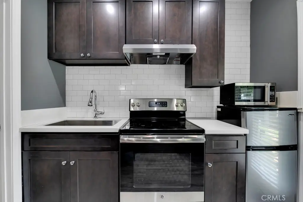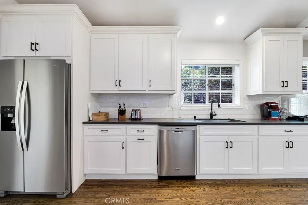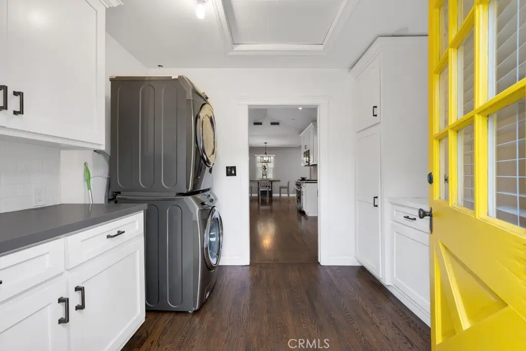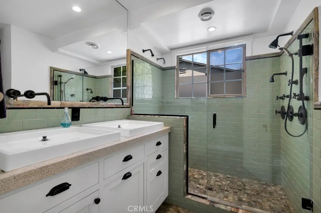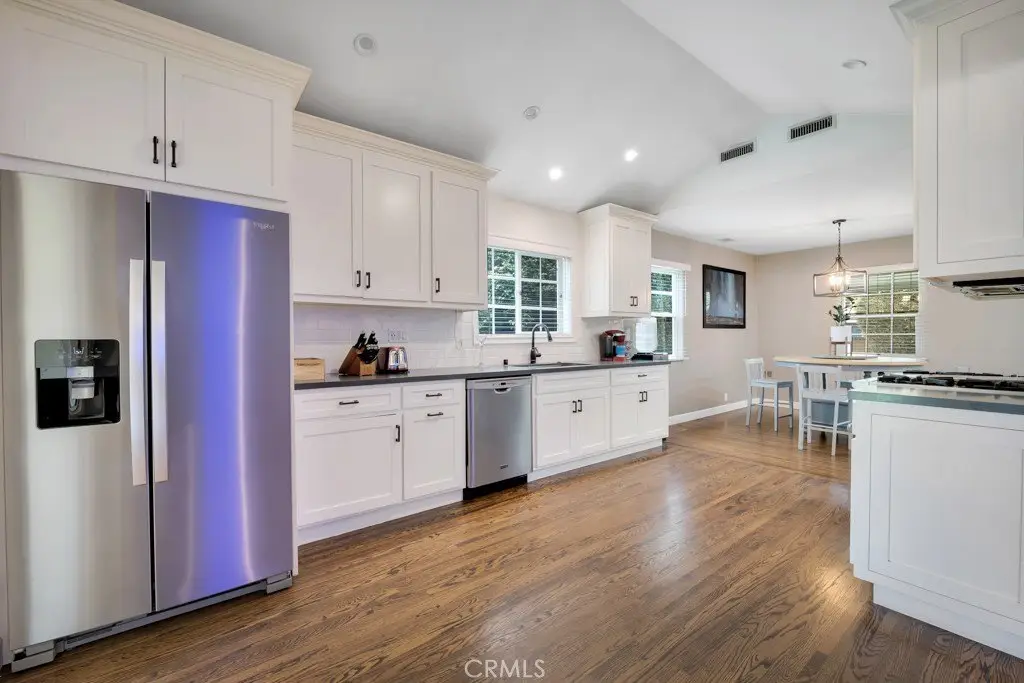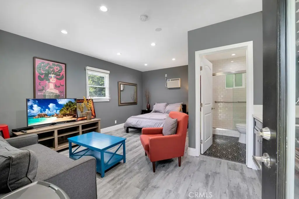 This stunningly renovated and expanded three bedroom, two bathroom home is a true masterpiece! With its soaring vaulted ceilings and open, airy layout, this residence showcases top-notch finishes and exceptional indoor/outdoor living. A charming Dutch door welcomes you into the cozy formal living room, featuring a sophisticated stone fireplace as its centerpiece. The seamless flow of the open-concept design leads you effortlessly into the dining area, which is beautifully highlighted by a striking architectural light fixture. The contemporary kitchen is a chef's dream, complete with custom cabinetry, quartz countertops, a Wolf range, and high-end stainless steel appliances. The newly designed master suite is a luxurious retreat, featuring a spacious walk-through closet and an ensuite bathroom adorned with premium finishes such as Waterworks tile, bespoke cabinetry, and elegant European fixtures. The airy great room is accentuated by large modern bi-fold doors that open up completely to reveal a brand-new deck and an exquisitely landscaped backyard. The outdoor space boasts a heated saltwater pool and a Studio ADU equipped with its own full kitchen. Additionally, the property is outfitted with fully paid-off Tesla solar panels and two Tesla batteries, enhancing its energy efficiency. This incredible opportunity is not to be missed!