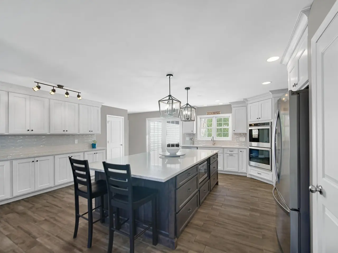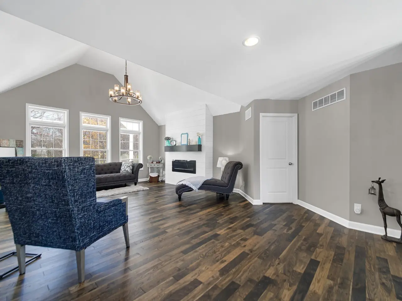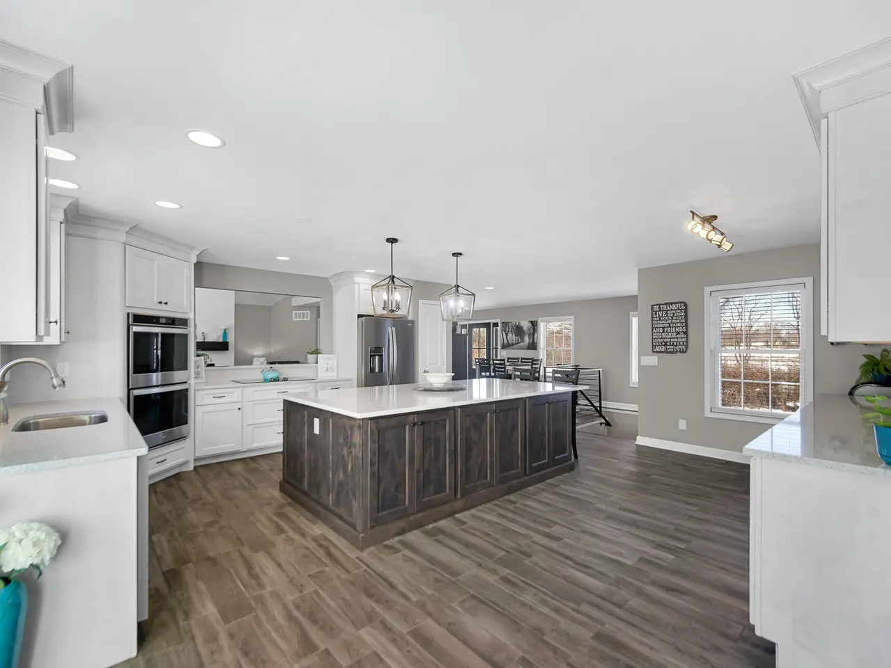 Discover your dream home in this beautifully remodeled ranch featuring 5 bedrooms and 4.5 baths, including THREE bedrooms with their own PRIVATE EN-SUITES bathrooms. Updated over the past 3 years with TOP QUALITY materials and exceptional ATTENTION TO DETAIL, this home offers modern comfort on a spacious 2.75 ACRE LOT, complete with a large workshop, perfect for hobbies, storage, or major projects. Step onto the covered front porch and into a generous foyer that opens to the living room. The living/dining area will quickly become a favorite gathering spot with its hardwood floors, cathedral ceilings, fireplace, and peaceful VIEWS OF NATURE. The heart of the home is the stunning MODERN KITCHEN, showcasing quartz countertops, custom cabinetry, and a large pantry. The primary suite includes a beautifully designed en-suite bath and walk-in closet. Need more closet space? A nearby bedroom has been transformed into a walk-in closet but can easily be converted back if preferred. On the opposite wing, another private en-suite bedroom offers its own retreat with a full bath and three closets. The main level also includes a half bath, a full bath, and a convenient laundry room. Upstairs, you'll find a versatile office/library that can be customized to suit your needs, kept comfortable year-round with a newly added mini-split HVAC system. The DAYLIGHT basement delivers even more living space, including two bedrooms, a 3/4 bath, a recreation room, and an exercise area--perfect for guests, hobbies, or additional living quarters. Outdoors, the 2.75-acre lot provides endless room to explore, relax, or entertain. The 64' x 48' HEATED SHOP with dedicated 200-amp service is ideal for anyone needing serious workspace or storage. Despite the private setting, the property is conveniently located near downtown Valparaiso, schools, amenities, and major roadways--offering the perfect blend of seclusion and accessibility. This fully remodeled ranch is a rare find. Please see attachments.