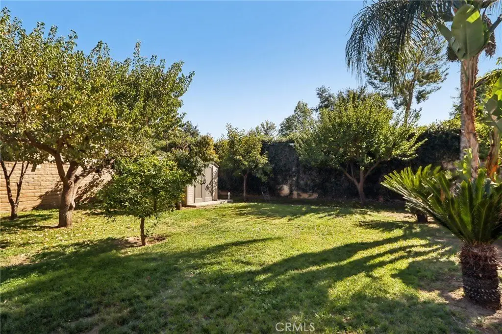 Large backyard with fruit trees