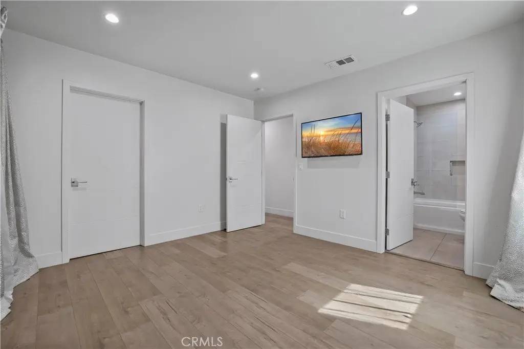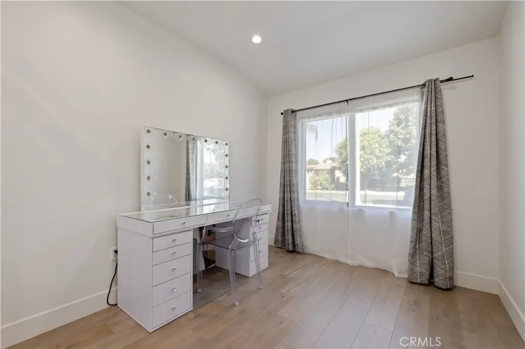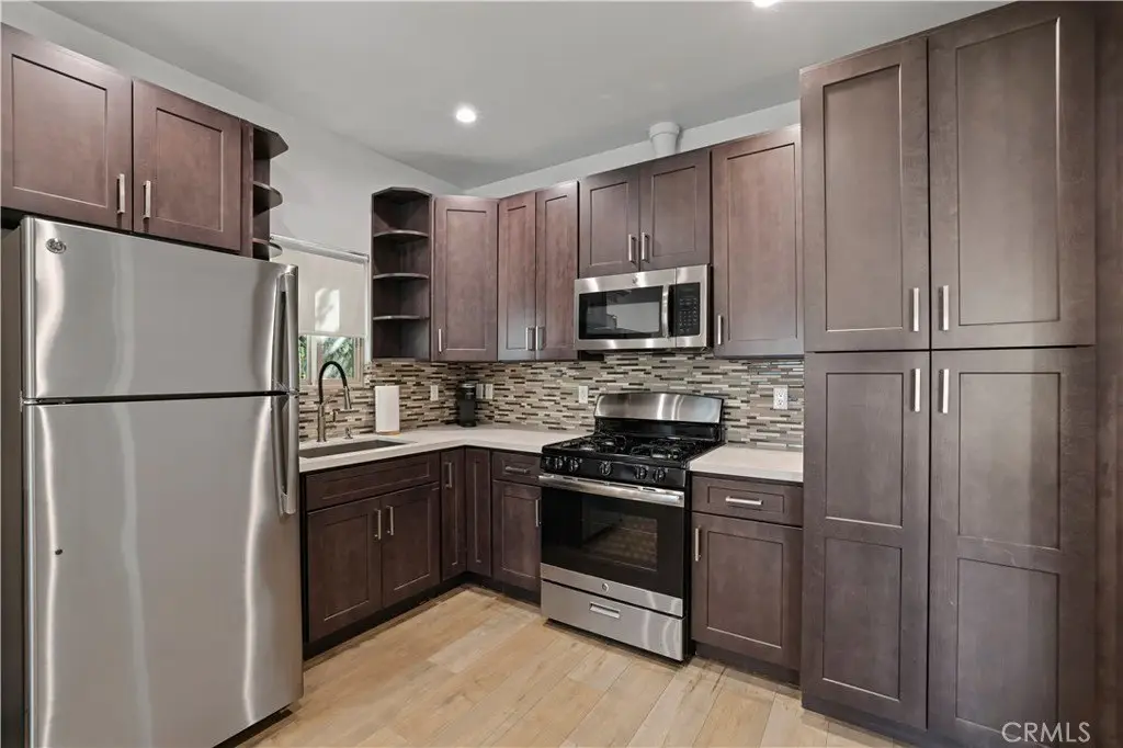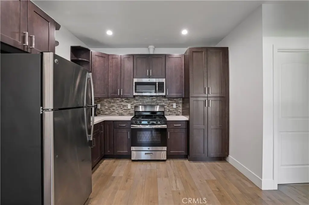 . Step into this beautifully upgraded single-family home designed for modern family living — complete with a fully permitted 1 bedroom, 1 bathroom ADU featuring a private entrance, its own address, and separate meter. Whether you’re looking for space to grow, multigenerational flexibility (no stairs), or rental income potential, this home checks every box. The main residence offers 3 bedrooms, a stylishly remodeled bathroom, and a generously sized primary suite offering a peaceful escape with a walk-in closet, custom accent wall, and a private full en-suite bathroom, and plenty of room to relax. Enjoy everyday comfort and high-end touches throughout: dual hanging closets, custom lighting, recessed LED fixtures, top-grade laminate flooring, and a dedicated dining area with a separate living room - both featuring elegant custom accent walls. The chef’s kitchen is a standout with Caesarstone countertops, tile backsplash, stainless steel appliances, and soft-close cabinetry. This home has been meticulously maintained and thoughtfully upgraded with a newer roof, updated copper plumbing and electrical, tankless water heater, custom dual pane windows, and a newer HVAC system. Outdoors, the covered patio with soaring ceilings is perfect for weekend BBQs or evening gatherings. The large grassy backyard is ideal for playtime or adding a pool, and includes a storage shed, lovely landscaping, and automatic sprinklers. The driveway’s modern concrete and grass design and smooth stucco exterior elevate the home’s curb appeal. The separate ADU is ideal for extended family or rental income — featuring its own custom kitchen with stainless steel appliances and sleek contemporary finishes. Washer, dryer, and select furnishings are included, making this home truly move-in ready. Homes like this — with thoughtful design, stylish updates, and room to thrive — don’t come around often. Make this your family’s next chapter. Schedule your private showing today and fall in love with where you live!
