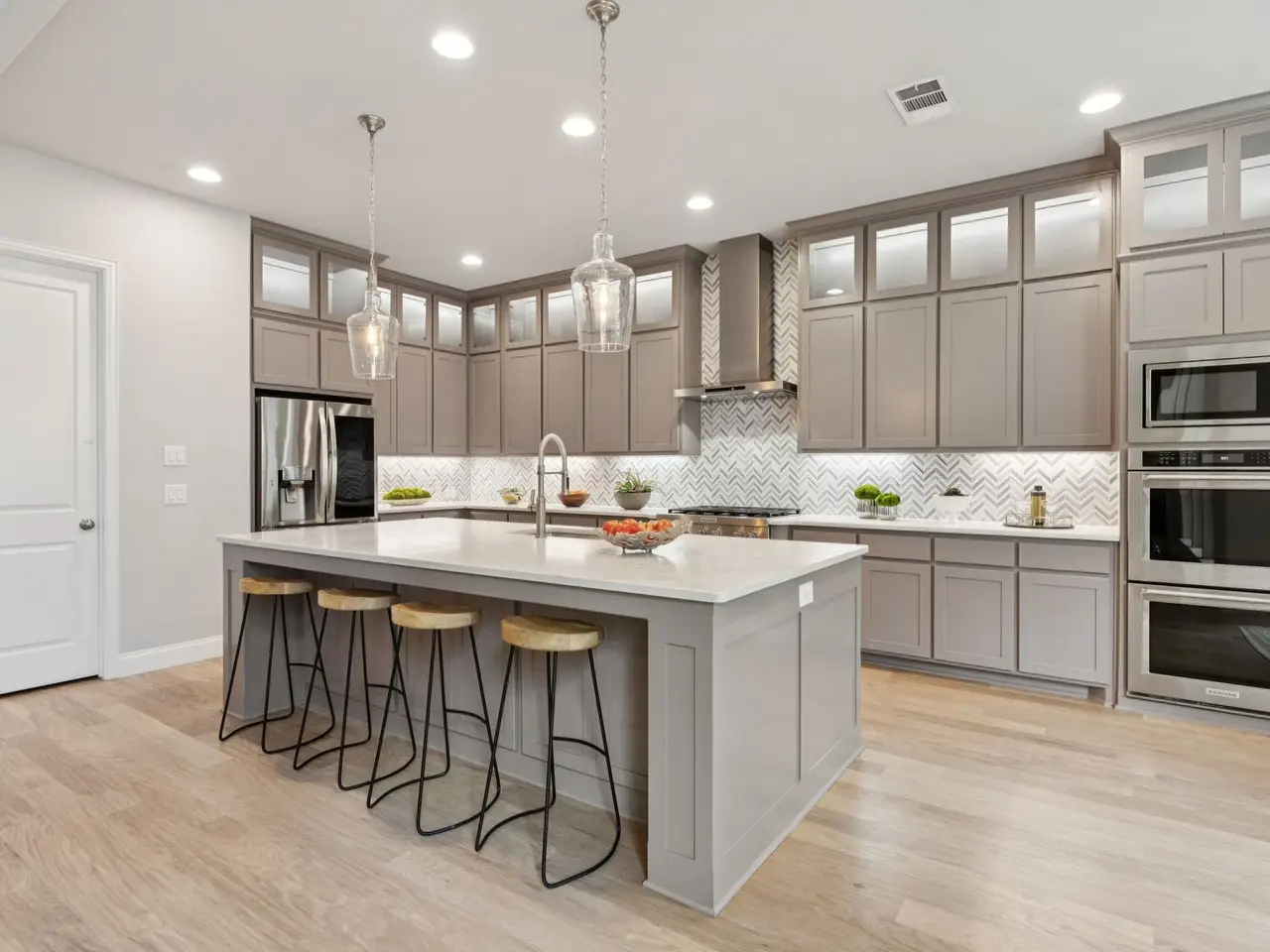 Amazing opportunity perfectly positioned in the coveted community of The Grove! This home has been meticulously maintained, and the entire first floor now boasts new hardwood floors and a brand-new kitchen island. The kitchens open layout spills effortlessly into the family and dining room, creating one spacious, light-filled hub thats tailor-made for entertaining. The secluded primary suite feels like a private resort, featuring a spa-inspired bath with a deep soaking tub, an oversized glass-enclosed shower, and a spacious walk-in closet. The first floor also hosts a secluded guest suite with its own en-suite bath and generous walk-in closet. The house also has a private study ideal for working from home. Upstairs, youll find two well-appointed bedrooms plus a generous game room that opens directly into an adjoining media room perfect for movie nights or game-day gatherings. The home is complemented by a three-car tandem garage, offering ample space for vehicles and storage.