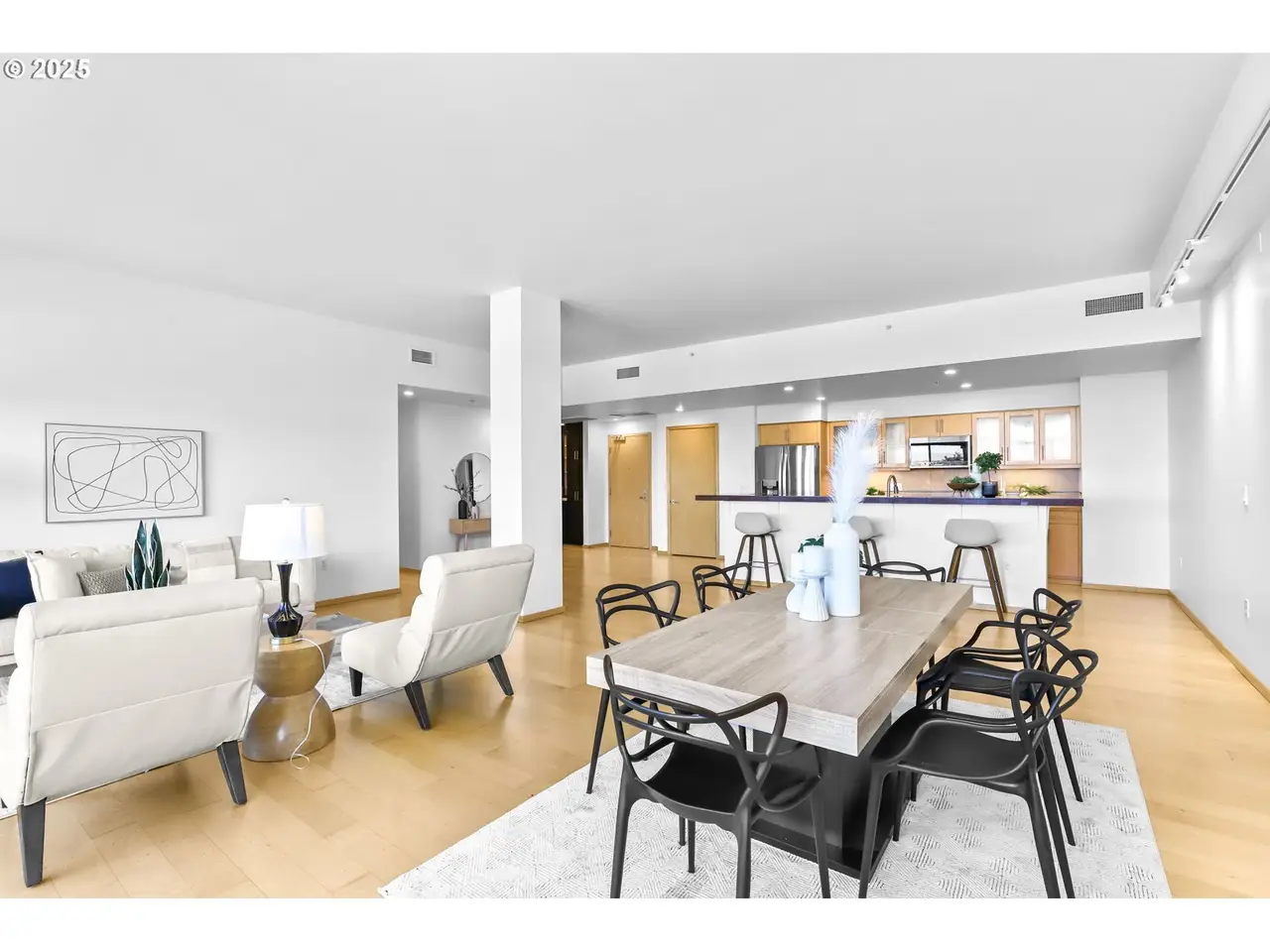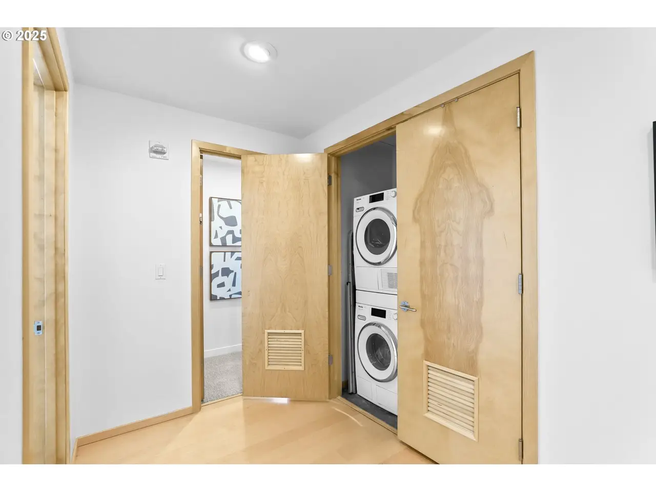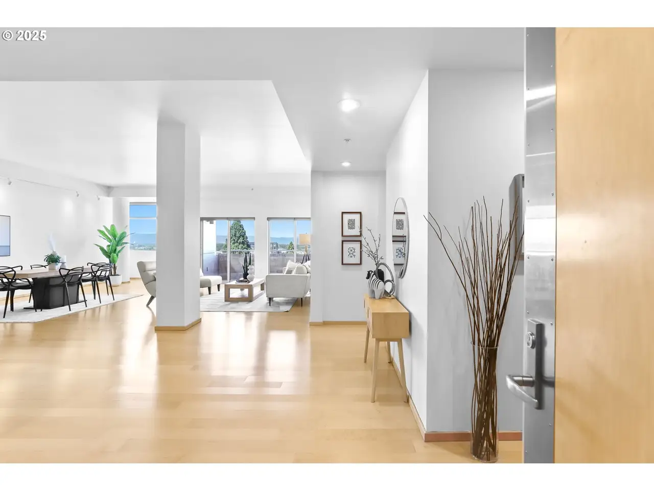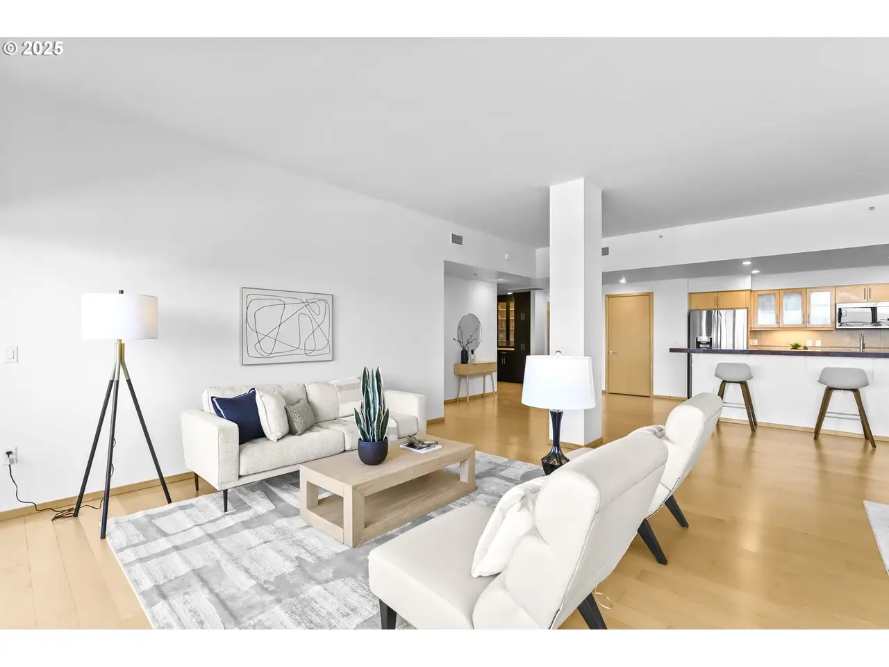 Luxury Downtown Living with Panoramic Views! Elevate your lifestyle in this stunning 2-bedroom, 2-bath luxury condo in the heart of downtown Vancouver. Flooded with natural light, the open-concept design features soaring ceilings and expansive west-facing windows that frame views of the Columbia River, I-5 Bridge, Esther Short Park, the Vancouver Waterfront, and unforgettable sunsets. The kitchen is both elegant and functional, featuring a spacious island, premium appliances - including a three-year-old LG French door refrigerator with dual ice makers, Bosch dishwasher, and gas stove with electric oven - and a cleverly designed butler's pantry with ample storage and dual Artevino temperature-controlled wine cellars. It's a seamless blend of form and function, perfect for both everyday living and effortless entertaining. The fully renovated primary suite offers a peaceful retreat with a cozy sitting area, spa-inspired en suite bath, and a walk-in closet outfitted with a professionally designed organization system. The second bedroom adds flexibility, ideal as a guest room and home office, or creative space. With a walk score of 100, nearly everything you need is just steps away - stroll to the market, catch a movie and dinner, wander along the waterfront, or relax in the park. Building amenities include a deeded parking space, secure storage, and a package/mail room. With stylish finishes, turnkey condition, and seller financing considered, this home delivers the ultimate blend of luxury, lifestyle, and location - plus no Washington state income tax. Welcome to elevated urban living.