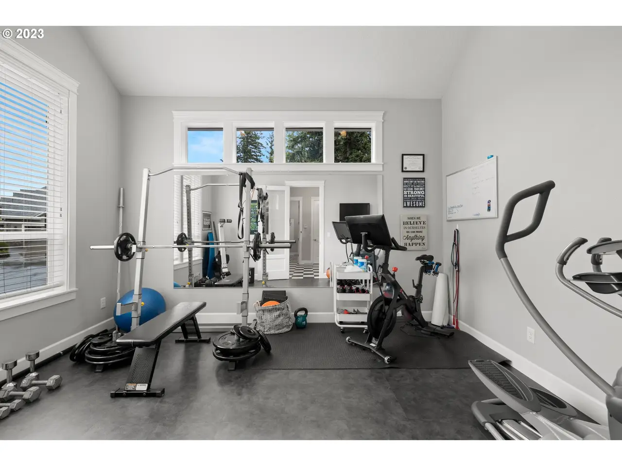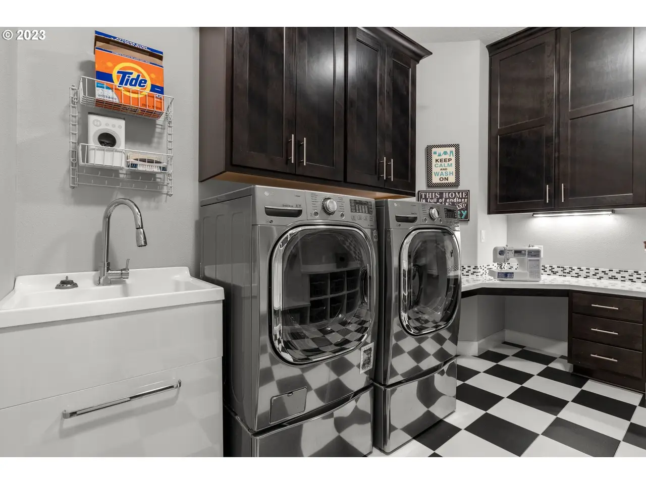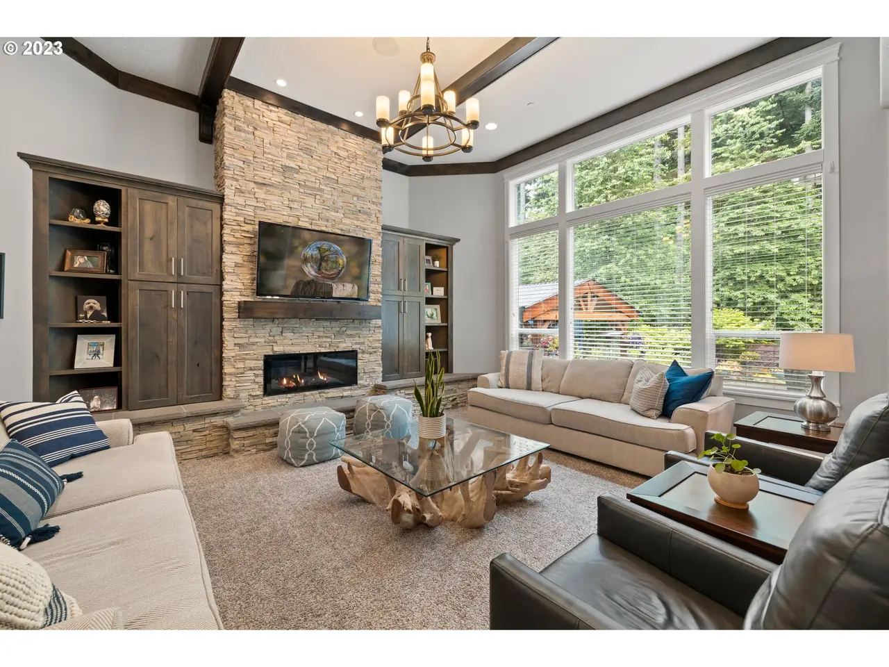 Close-in acreage on over one and a half acres. With five bedrooms, four full baths and two half baths, there is ample space for family and guests. The home spans 5,780 square feet and features a thoughtfully designed layout. No HOA or CCRs. The heart of the home, which has created many memories, is the gourmet kitchen, which is perfect for cooking enthusiasts. It boasts an oversized island with a prep sink, allowing for convenient meal preparation. The kitchen also includes a six-burner industrial range with a double oven and pot filler. A huge walk-in pantry provides plenty of storage space. The main level of the house features two offices, providing at-home work environments. Additionally, there is a designated exercise room allowing you to stay fit within the comfort of your own home. Convenience is key in this residence, with a mudroom including added storage. The laundry room is equipped with built-in features, a sewing nook and a sink area, making laundry tasks more efficient. The primary bedroom, situated on the main level, offers a retreat-like experience. It features a sitting area, allowing you to relax and unwind. The en-suite bathroom is a luxurious haven with double shower heads, providing a spa-like experience. The custom walk-in closet is a dream come true. The backyard of this home is truly an oasis. A covered patio and eating area provide the perfect setting for outdoor gatherings. You can relax and rejuvenate in the hot tub area or cozy up by the custom outdoor fireplace. For those who enjoy cooking outdoors, there is even an outdoor pizza oven. The yard is adorned with mature landscaping, and a water feature cascading into a pond. Also features a seasonal creek. Lastly, this property consists of a three-car attached garage and a three-car detached garage/shop with added RV parking. Shop is also big enough for your boat and added toys. Overall, this home offers a blend of luxury, functionality and outdoor beauty, providing an exceptional living experience.