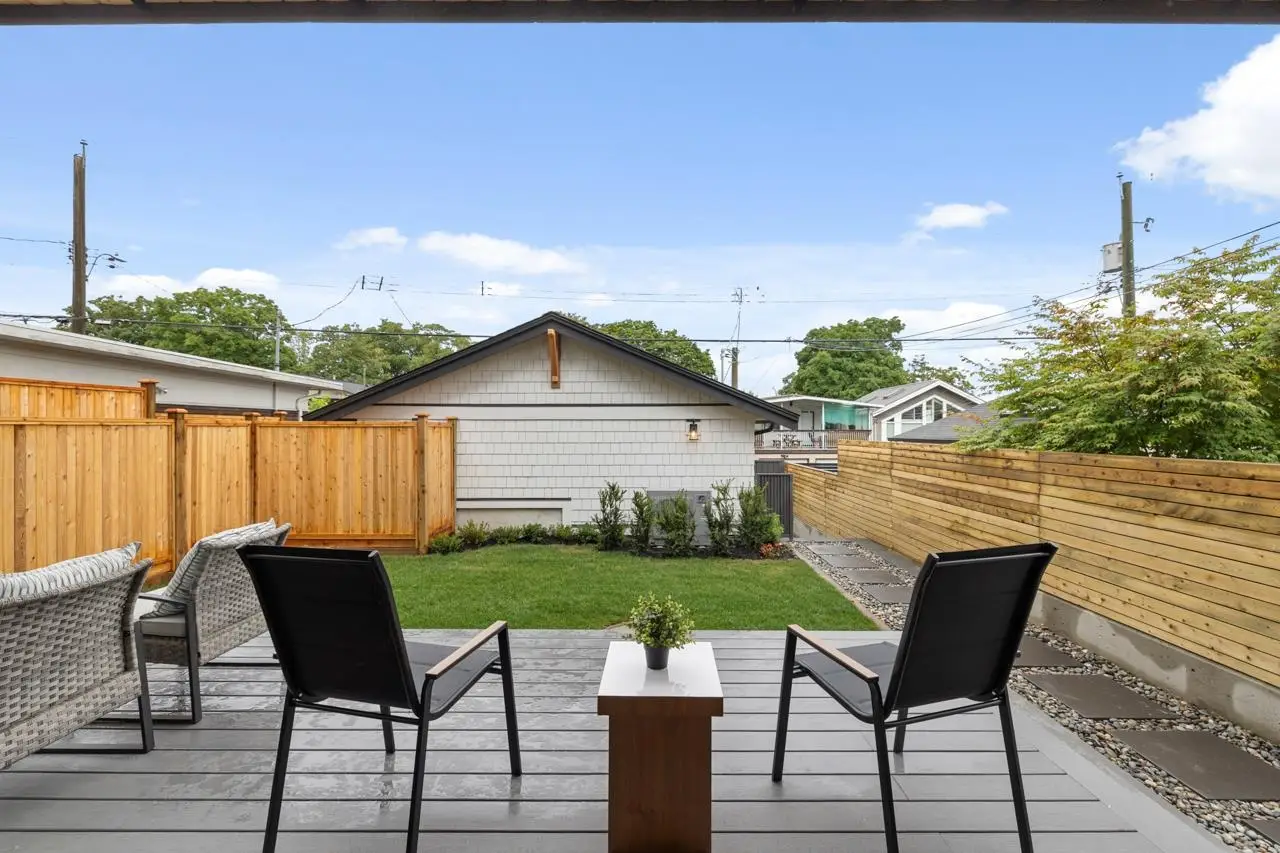 Uptown Group is proud to present this stunning 1708 SF 3 bed, 3.5 bath ½ duplex home located in one of the most desired East Vancouver neighbourhoods. The open kitchen features Fisher & Paykel appliances with a built-in coffee bar, quartz countertops and pantry and large island perfect for entertaining your guests. Cozy up to your fireplace while enjoying your favourite music on the surround sound system. The Main floor has an impressive 18 ft sliding door leading to the North facing Patio/yard with Mountain Views. Peace of mind with the private garage, security system with cameras and 2/5/10 Warranty. Bonus Large Crawl Space for storage. Within walking distance to Lord Nelson Elementary and Templeton Secondary. Open House Oct 25th/26th Sat 2-4pm Sun 1-3pm