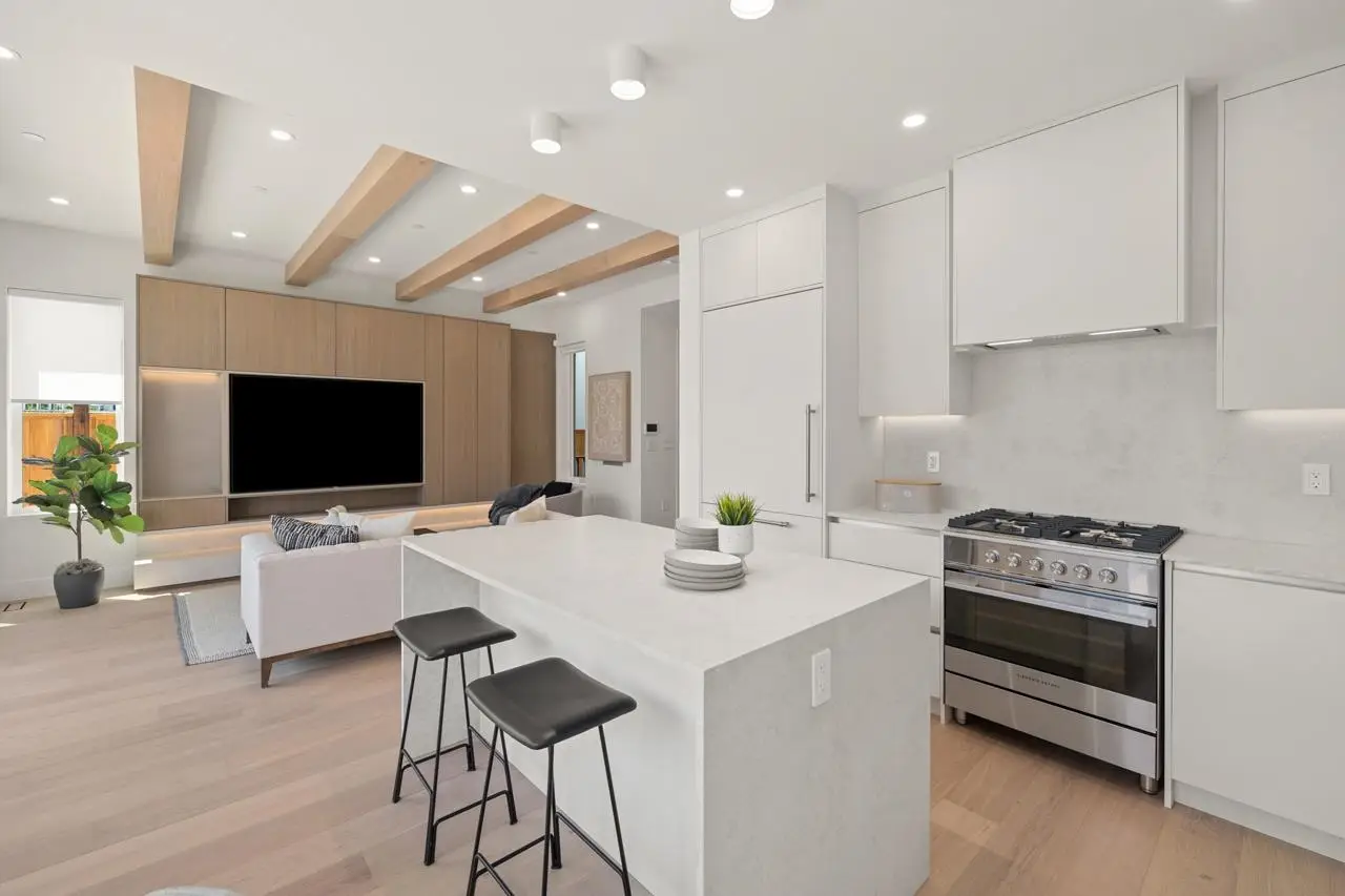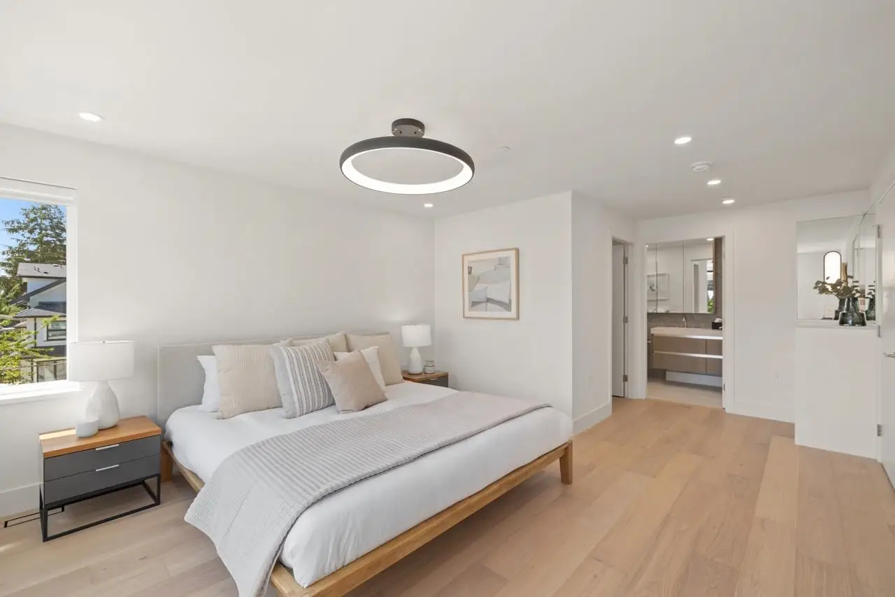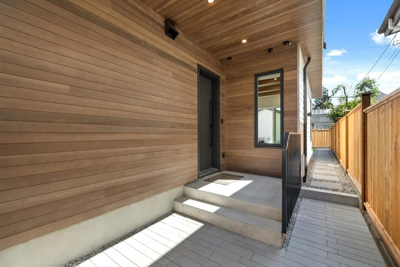 This stylish South facing 1/2 duplex by Sky Projects is located in the vibrant Mount Pleasant. This 1652 SF 3-bed/3.5 bath home features a large open main floor, brushed oak floors, an abundance of built in cabinetry, surround sound and automatic blinds. The kitchen boasts Fisher Paykel appliances, large island, matte quartz countertops and custom BCG cabinetry with plenty of storage. The Living and dining room feature large patio doors opening to the quiet at grade private fenced backyard with a sunny South exposure. The primary bedrm includes a large walk-in closet and ensuite and generous windows. Enjoy the security of a detached garage w/ EV capability and storage. 4' Crawl space. Convenient location near Main St, shopping & Transit.