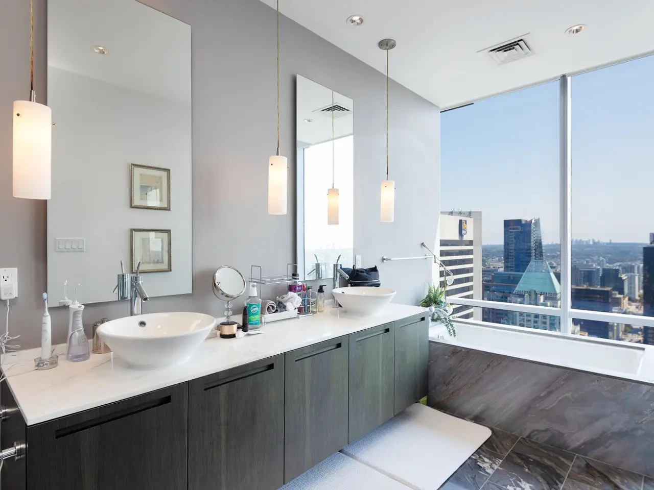 Floor-to-ceiling windows with panoramic ocean, mountain & city views