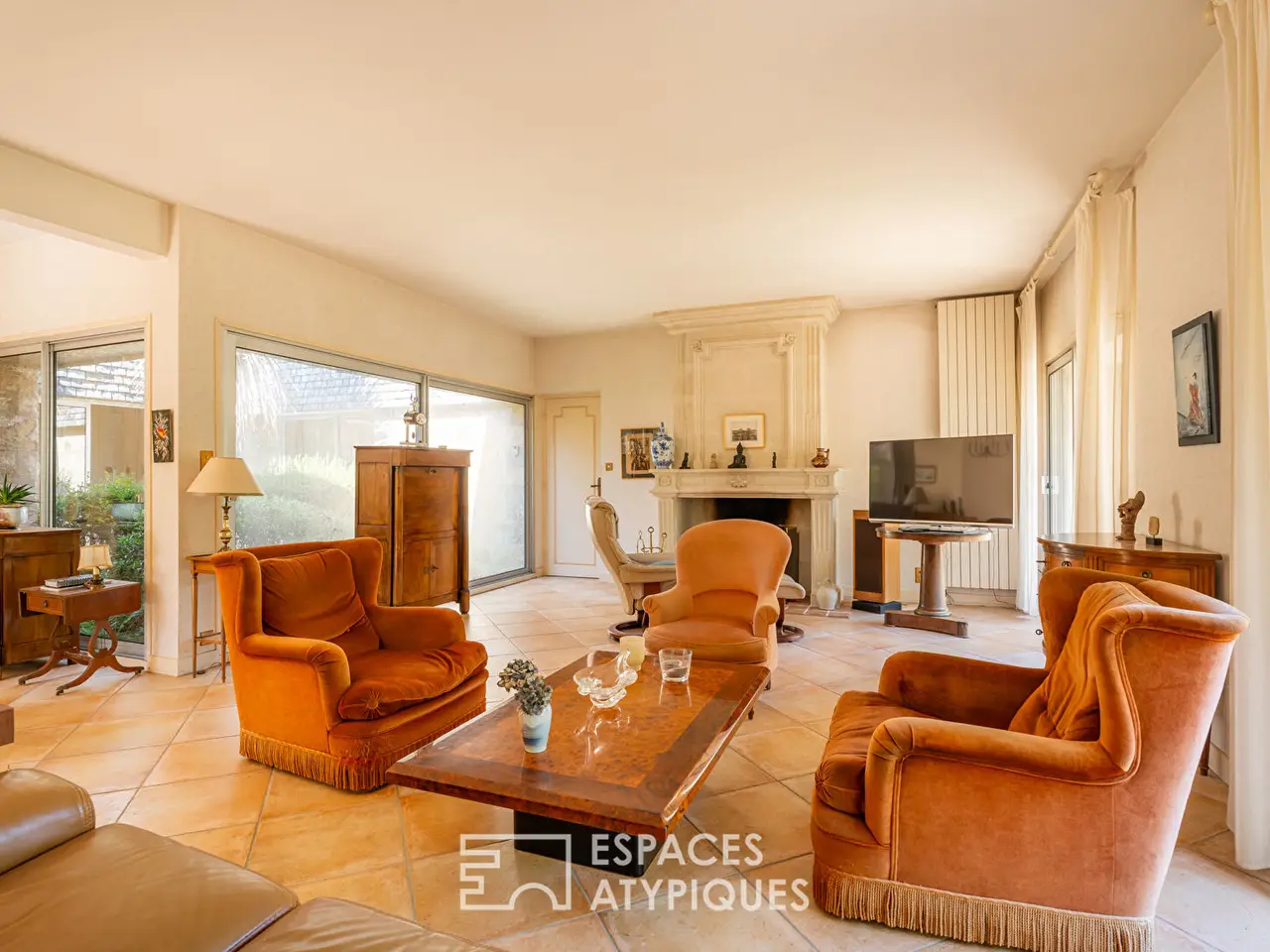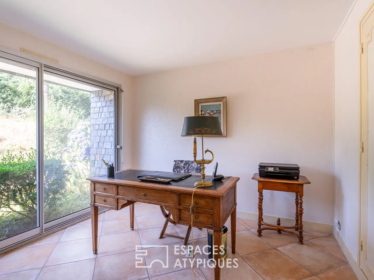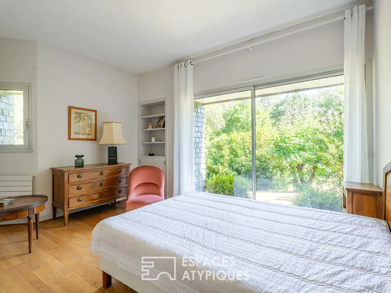 Located in Vannes, in the absolute calm of a private cul-de-sac, this single-story architect-designed house, designed by Yves Guillou, offers approximately 183 sqm of living space on a landscaped plot of over 6,000 sqm. Built in 1978, this property stands out for its harmonious integration into a privileged natural environment, on the edge of a river. Its architectural signature and clean lines give the whole a unique character. The whole is completed by a verdant garden, conducive to contemplation. Upon entering, the eye is drawn to a central planted patio, the true heart of the house around which the various living spaces are organized. The spacious and bright living room opens through large bay windows onto the wooded park. The fireplace structures the space while bringing warmth and conviviality. The separate, fully fitted and equipped kitchen is complemented by a dining area and naturally extends into a functional utility room providing access to the garage, a workshop, cellars, and a boiler room. On the sleeping side, the house offers an office, four bedrooms, two shower rooms, a bathroom, and three toilets, providing a fluid layout suited to family life. The carefully maintained landscaped park overlooks the river. Mature trees and a variety of species create a soothing and private atmosphere. This rare living environment, just minutes from downtown Vannes and the beaches of the Gulf of Morbihan, also benefits from the immediate proximity of schools, shops, and main roads. This house combines remarkable architecture, controlled volumes, and an exceptional environment. A unique property, at the crossroads of design and nature, designed for lovers of architecture and discreet elegance. ENERGY CLASS: E / CLIMATE CLASS: E Estimated average amount of annual energy expenditure for standard use, established from average energy prices indexed for the year 2021, 2022, 2023: between EUR4,400 and EUR6,010/year. Information on the risks to which this property is exposed is available on the Georisques website: www.georisques.gouv.fr Price including agency fees: EUR1,092,000 including 4% agency fees including tax payable by the purchaser. Contact: Anne-Cecile QUEMERAIS Telephone: 06 71 96 12 32 RSAC Vannes 834 522 773 RSACREF. 515EAMAdditional information* 6 rooms* 4 bedrooms* 2 bathrooms* 1 bathroom* Outdoor space : 6400 SQM* Property tax : 2 850 €Energy Performance CertificatePrimary energy consumptione : 193 kWh/m2.yearHigh performance housing*A*B*C*D*193kWh/m2.year57*kg CO2/m2.yearE*F*GExtremely poor housing performance* Of which greenhouse gas emissionse : 57 kg CO2/m2.yearLow CO2 emissions*A*B*C*D*57kg CO2/m2.yearE*F*GVery high CO2 emissionsEstimated average annual energy costs for standard use, indexed to specific years 2021, 2022, 2023 : between 4400 € and 6010 € Subscription IncludedAgency fees* Fees charged to the purchaser : 42 000 €MediatorMediation Franchise-Consommateurswww.mediation-franchise.com29 Boulevard de Courcelles 75008 ParisInformation on the risks to which this property is exposed is available on the Geohazards website : www.georisques.gouv.fr