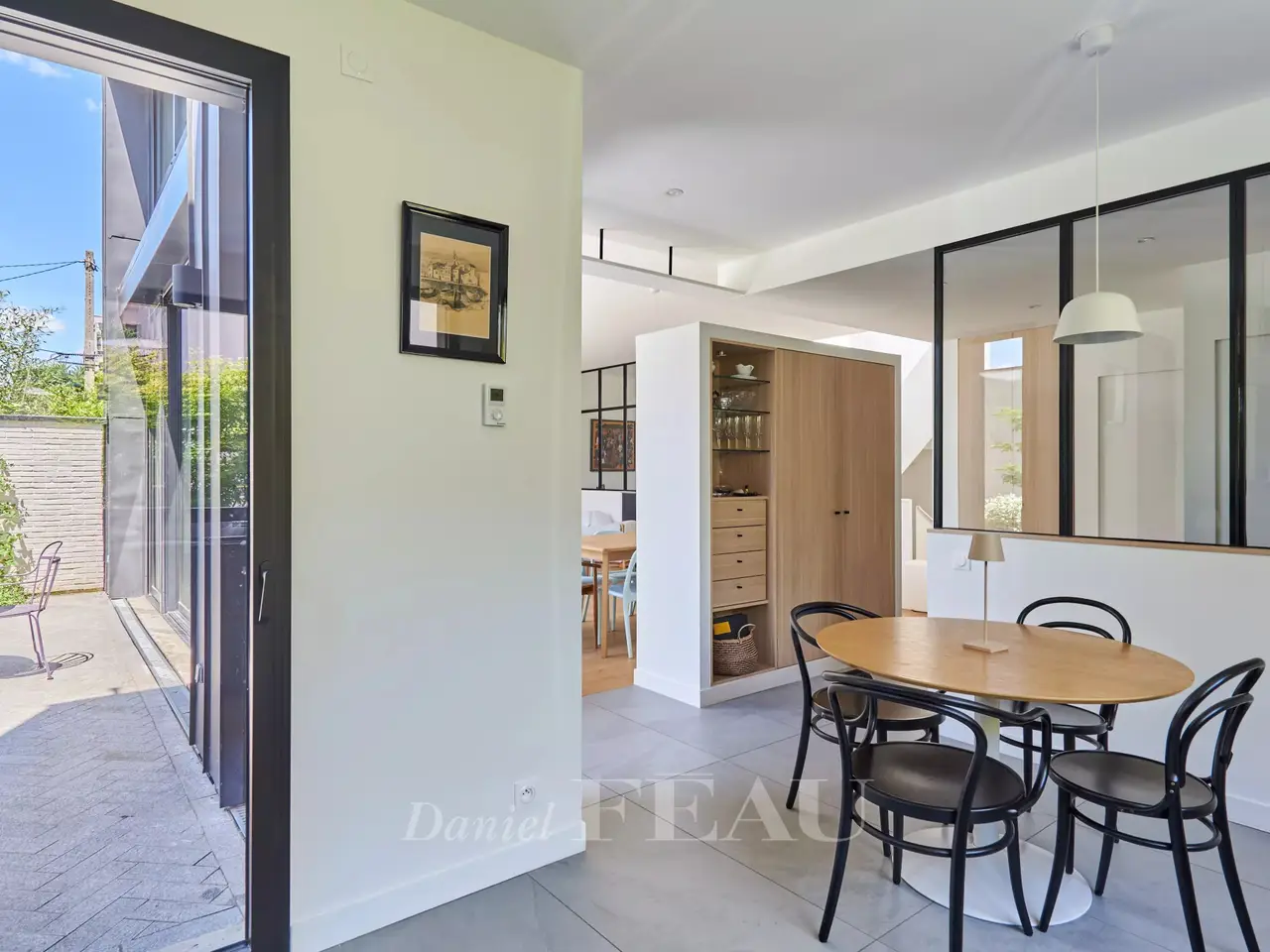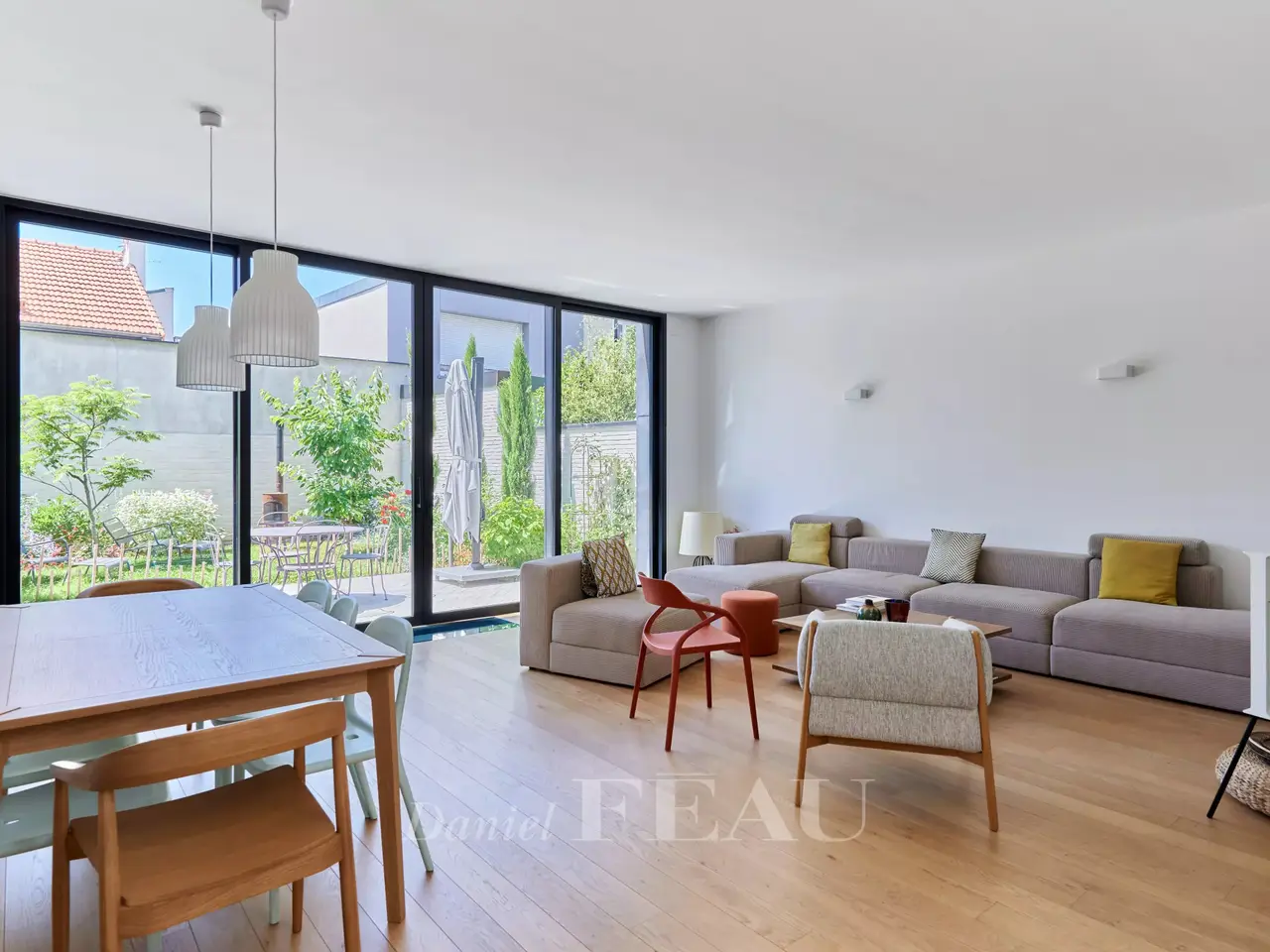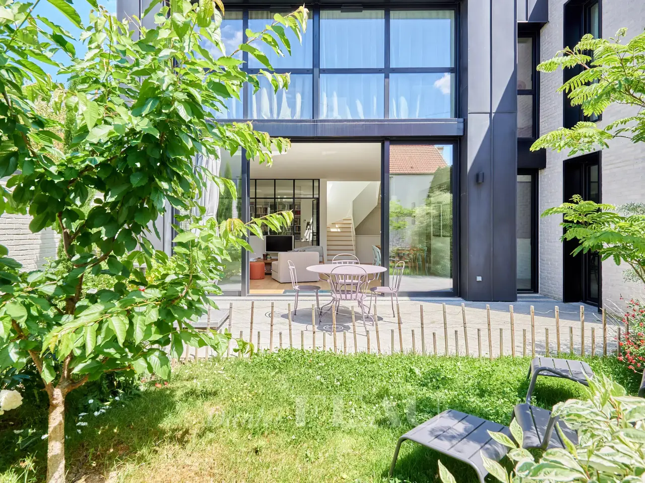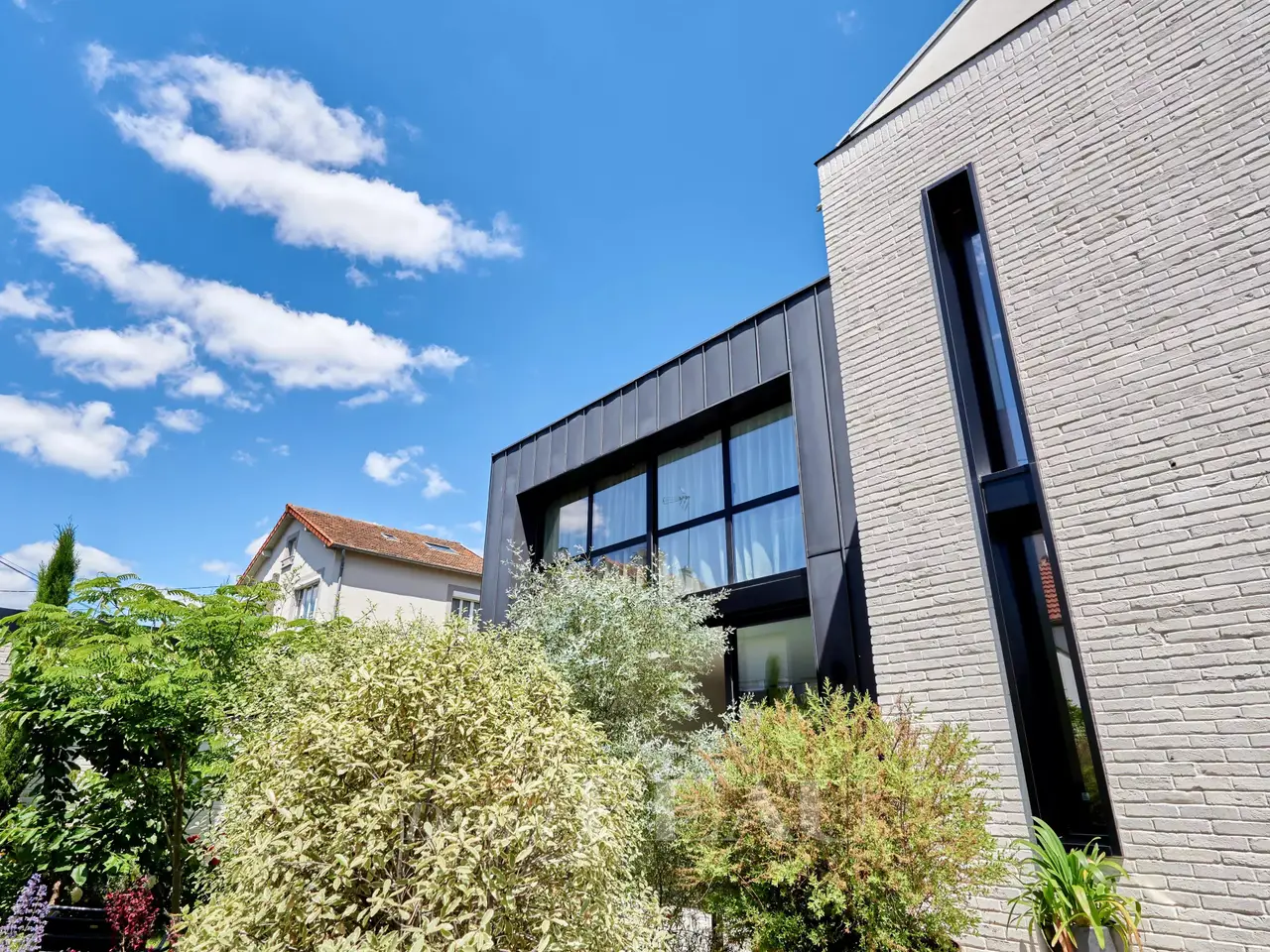In a green bower, nearby Vanves train station, architect house dating from 2022, offering 284 sqm of living space and a garden-terrace space of 62 m². On ground floor, the entry leads to a separate and equipped kitchen, a spacious living room opening onto the garden, a suite and its shower room, a study and a separate wc ; on the upper floor, four bedrooms, three shower rooms and a separate wc on the landing. In the basement, a utility room, a living room, a fitness room, a pantry and a technical space.