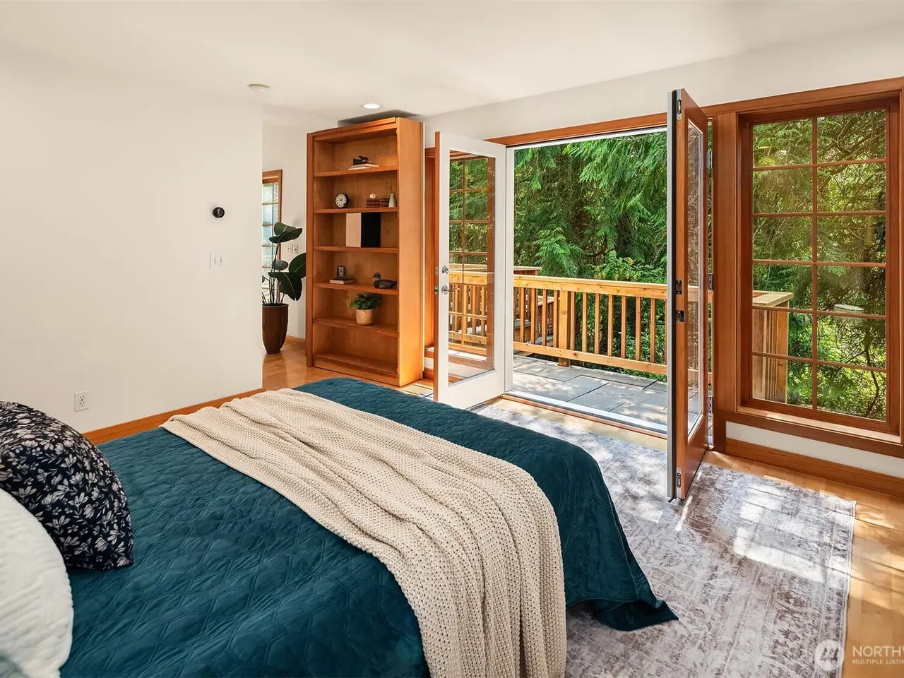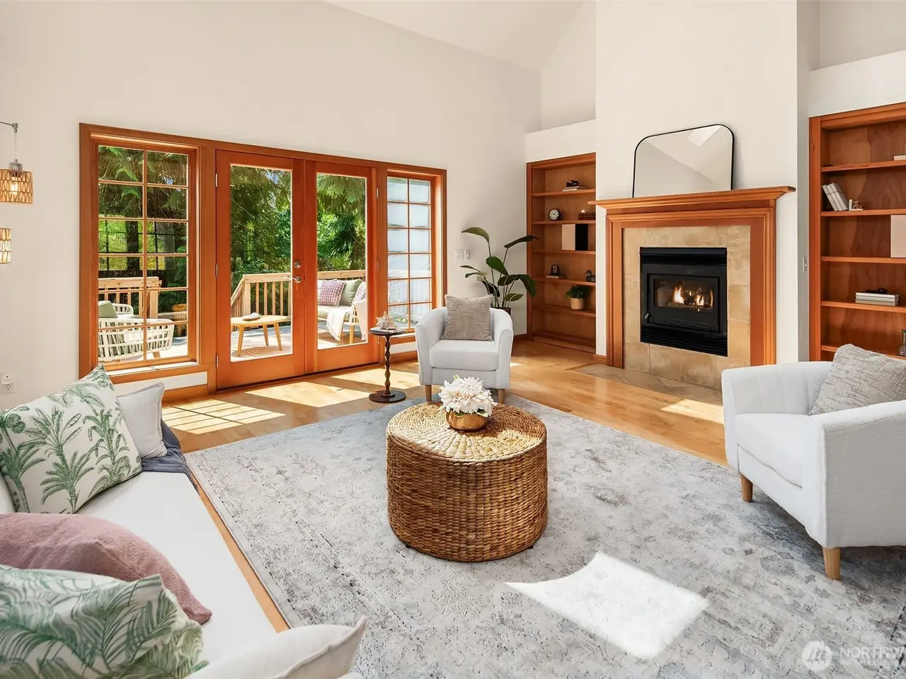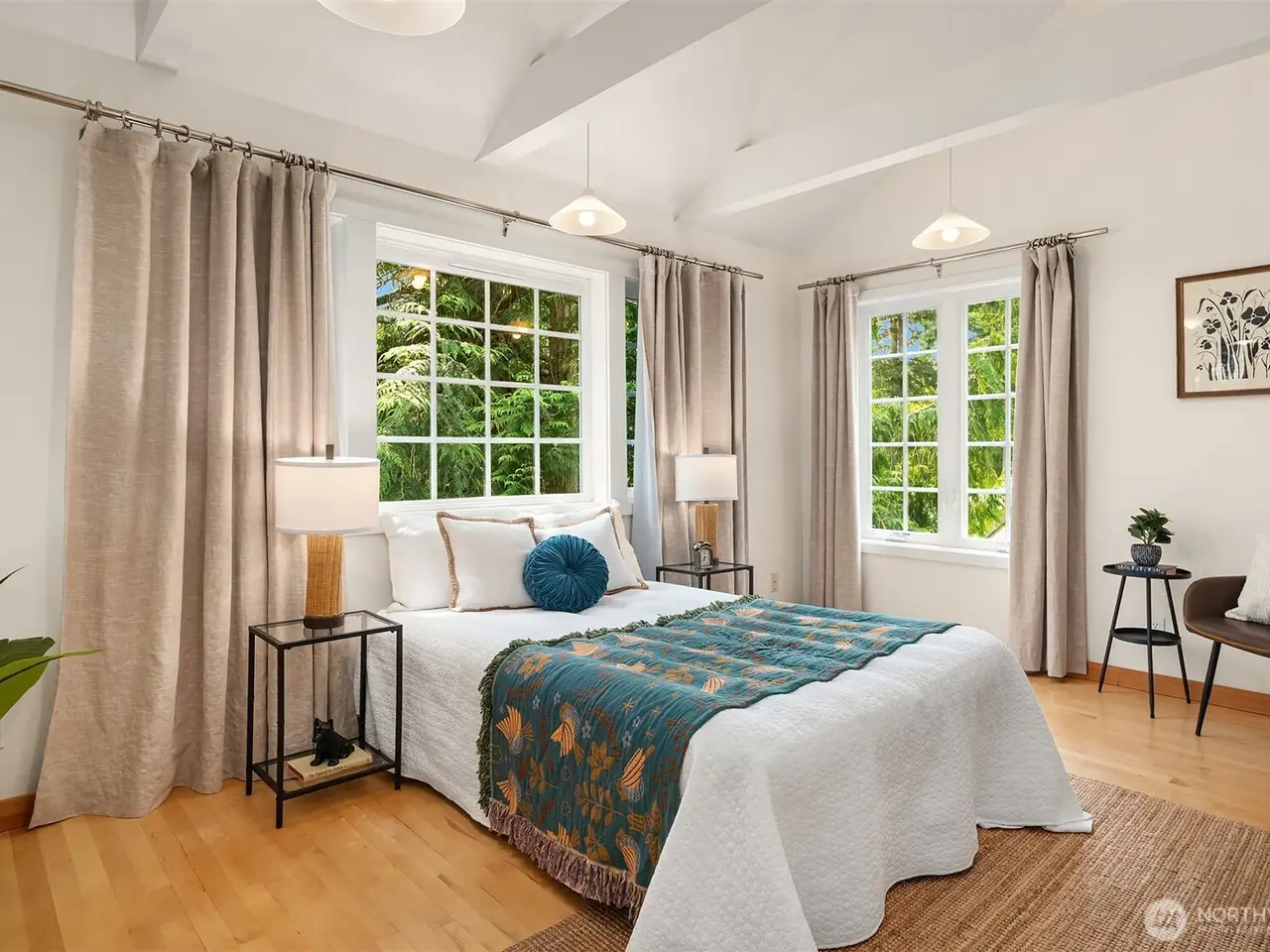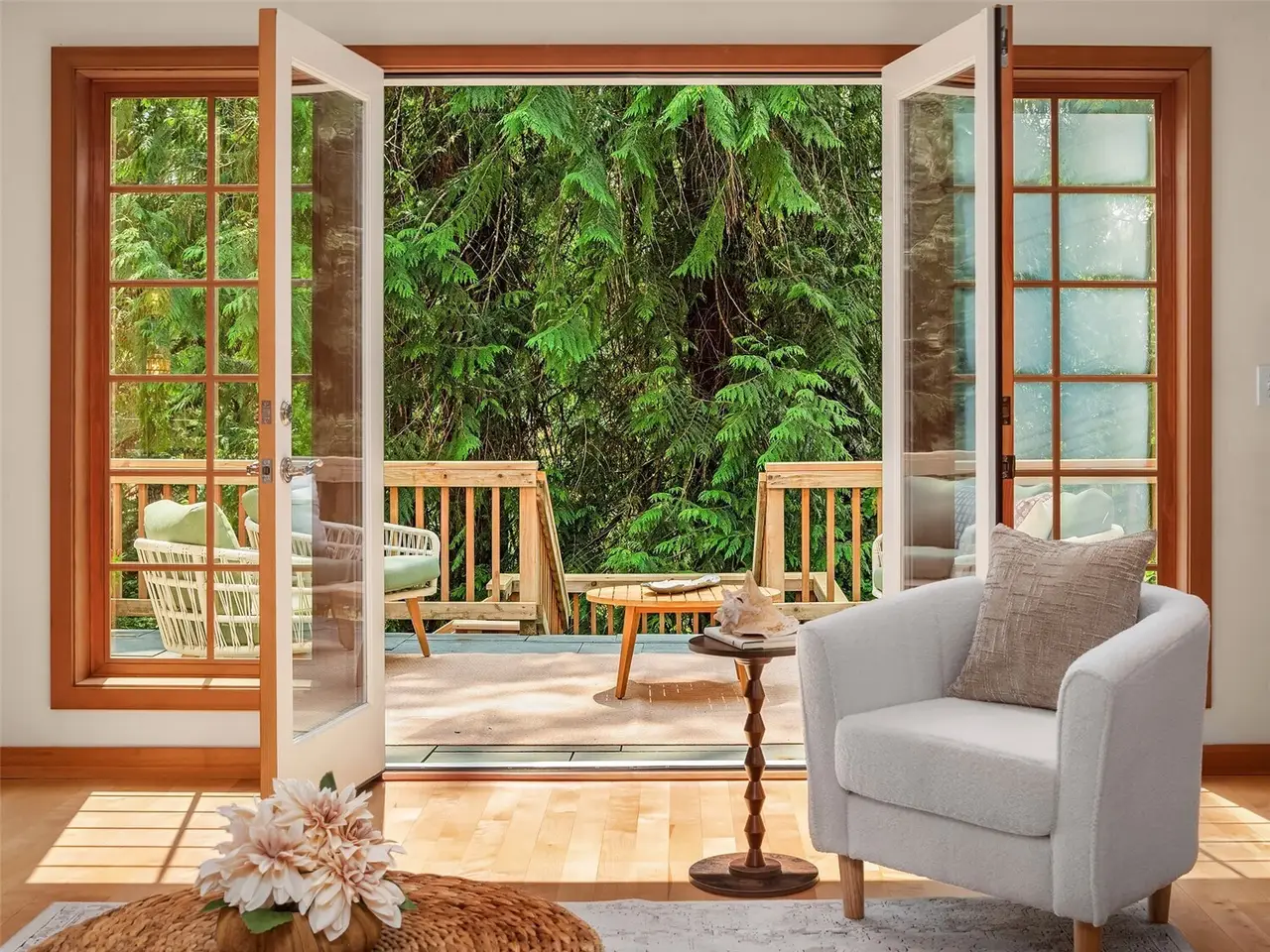 Tucked away on 5 serene acres along Vashon's west side, this retreat-like home blends elegance w/ privacy. Enjoy the sun-filled LR where madrone floors, a cozy fireplace,& soaring vaulted ceilings create a warm, welcoming ambiance. A hidden door reveals the primary suite w/ dual walk-ins, tiled bathroom & FR doors to the deck. A kitchen designed for both beauty & function, showcasing quartz counters, custom cabinetry, & premium appliances including a Liebherr fridge & Bertazzoni range. Upstairs boasts spacious bedrooms, a bonus room & full bath. Radiant floor heating runs throughout for comfort in every season. A 2-car garage & EV charging completes this peaceful island sanctuary--an inspiring place to live, entertain & recharge.