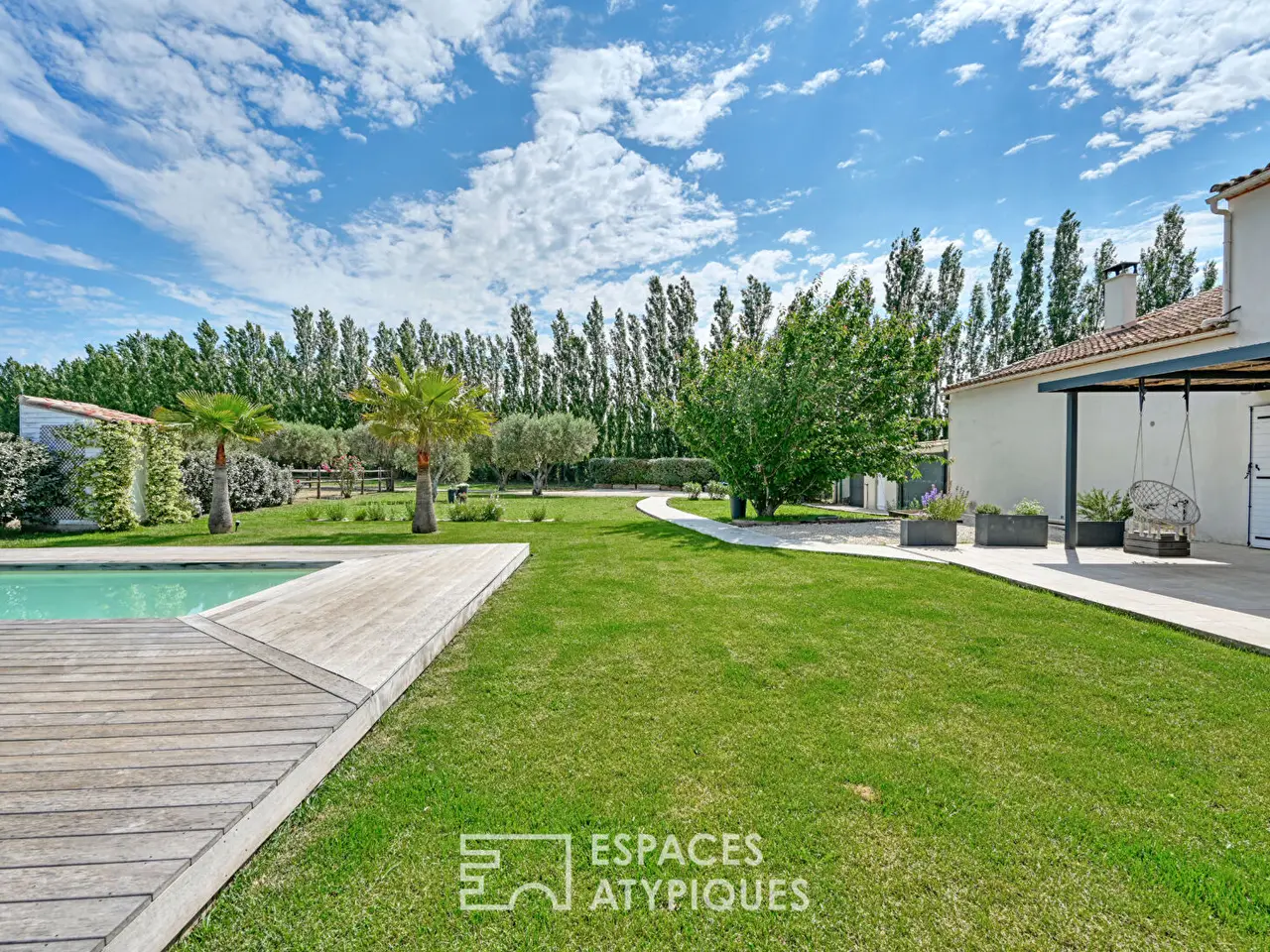 30 km from Nimes and 20 km from Aigues-Mortes, in a sought-after and privileged area, between vineyards and ponds, discover this perfectly maintained residence of more than 300m2.It offers warm, spacious and bright living spaces with cathedral ceilings and fireplaces and beautiful terraces where you can take meals while enjoying the view of the gardens and nature. Two master suites on the ground floor and, upstairs, two office spaces, 4 bedrooms, a bathroom and a shower room. The land of more than 6000m2 reveals 60m2 of outbuildings including a 25m2 workshop, a caravan, two swimming pools including one salt, a petanque court, a vegetable garden and a riding arena ready to accommodate horses. In a village for nature lovers, close to a nature reserve but not isolated with the possibility of rental income, the creation of a guest room / gites or even the ease of separating the two houses to have two independent spaces. Transport in the immediate vicinity, TGV station, Montpellier / Nimes airports and beaches 30 minutes away, motorway access 15 minutes away. ENERGYCLASS: B / CLIMATE CLASS: A - Estimated average amount of annual energy expenditure for standard use, established from 2021 energy prices: between EUR4,028 and EUR5,450 subscription included.Contact, Alexandra 06 18 07 74 02REF. 6609-8040Additional information* 10 rooms* 6 bedrooms* 2 bathrooms* 2 shower rooms* 1 floor in the building* Outdoor space : 6050 SQM* Parking : 10 parking spaces* Property tax : 3 700 €Energy Performance CertificatePrimary energy consumptionc : 150 kWh/m2.yearHigh performance housing*A*B*150kWh/m2.year28*kg CO2/m2.yearC*D*E*F*GExtremely poor housing performance* Of which greenhouse gas emissionsc : 28 kg CO2/m2.yearLow CO2 emissions*A*B*28kg CO2/m2.yearC*D*E*F*GVery high CO2 emissionsEstimated average amount of annual energy expenditure for standard use, established from energy prices for the year 2021 : between 4028 € and 5450 €Agency feesThe fees include VAT and are payable by the vendorMediatorMediation Franchise-Consommateurswww.mediation-franchise.com29 Boulevard de Courcelles 75008 ParisInformation on the risks to which this property is exposed is available on the Geohazards website : www.georisques.gouv.fr