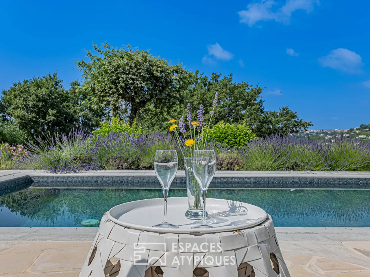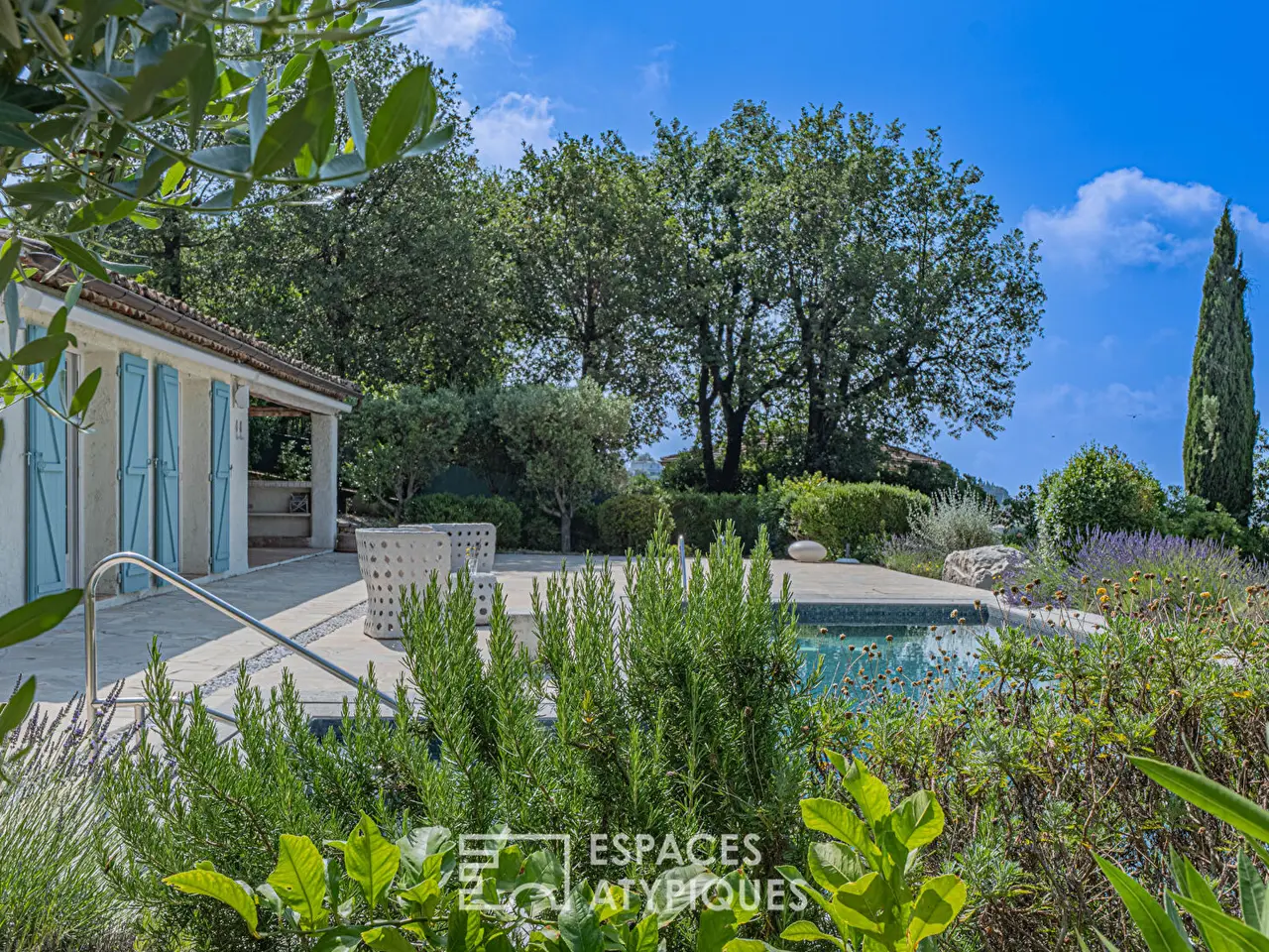 Nestled in a dominant position, this charming, typically Provencal property stands on a magnificent enclosed and landscaped plot of over 2500 m2. Once through the gate, you enter a haven of peace, a paved path offers a large double garage and allows parking for several vehicles in the courtyard. The entrance to the spacious building invites you to relax. The vast living/dining room, with its splendid fireplace, faces a beautiful terrace with an infinity pool. The semi-professional kitchen is not to be outdone, also opening onto a beautiful sheltered terrace, with its plancha and rotisserie. You can admire the simply sublime view of the old town of Vence and the surrounding hills. In the background, the legendary village of St Paul and the Mediterranean as far as Cap d'Antibes. On the night side, two beautiful en-suite bedrooms as well as a master bedroom upstairs with its private terrace promise beautiful nights under the mild weather of the Cote d'Azur. A 25-minute drive from Nice International Airport, 5 minutes from the historic heart of Vence and the pretty village of Saint Jeannet and only 20 minutes from the seaside. ENERGY CLASS: D / CLIMATE CLASS: B Estimated average annual energy expenditure for standard use: between EUR3,670 and EUR5,020 Information on the risks to which this property is exposed is available on the Georisques website: https://www.georisques.gouv.fr REF. 11457 Additional information * 5 rooms * 3 bedrooms * 1 bathroom * 2 shower rooms * Floor : 1 * 1 floor in the building * Outdoor space : 2502 SQM * Property tax : 3 000 € Energy Performance Certificate Primary energy consumption b : 240 kWh/m2.year High performance housing