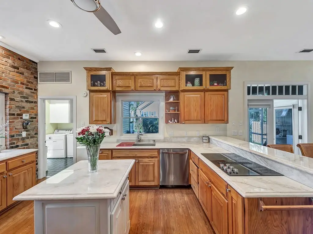 Charming Setting - .52 acre in Old Sugar Mill Ests. 4BR/4BA+Den. The island kitchen with quartz and stainless appliances opens to family room with cathedral ceilings; updated baths; fireplace in the living and family rooms; oak floors; oversized 2 car garage w/workshop. Lovely landscaping; gazebo & large screened pool area. Fantastic location quick trip to beaches & shopping. Sizes are approximate/subject to error.
