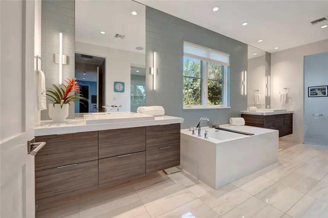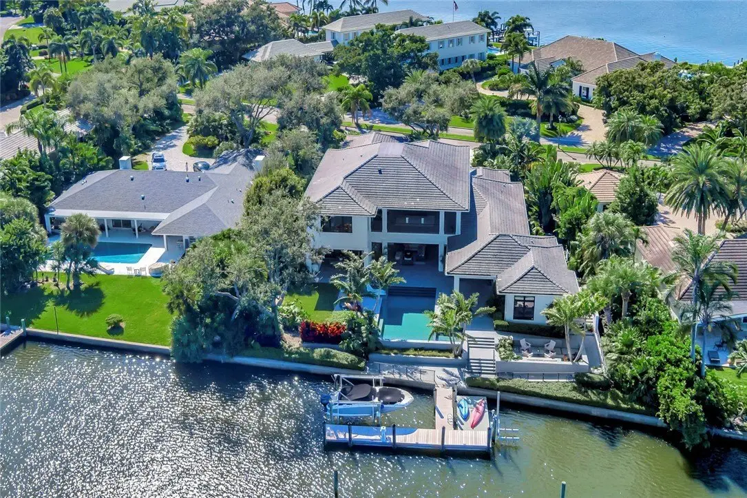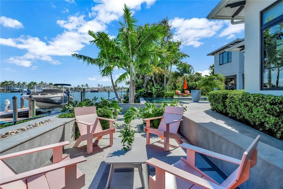 Modern European meets coastal West Indies in this stunning 6,628 sq ft Riomar Bay home. Built in 2019 on a .49-acre lot with 120' of Intracoastal frontage, it offers 6BR/4.5BA including 1/1 cabana. The traditional floor plan is enhanced by modern architectural elements. Kitchen features a 16' Pompeii quartzite island. A media room anchors the 2nd floor, connecting the luxurious primary suite & guest rooms. A resort-style pool, multiple outdoor seating areas, boat dock with lift, and expansive loggias with unobstructed views of Quail Valley River Club complete this retreat.