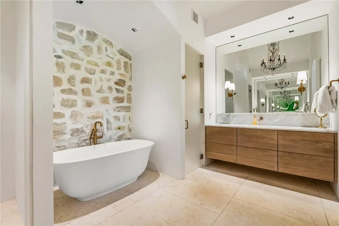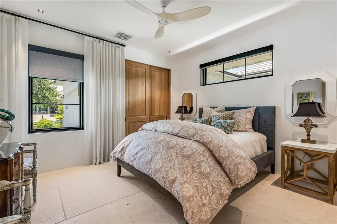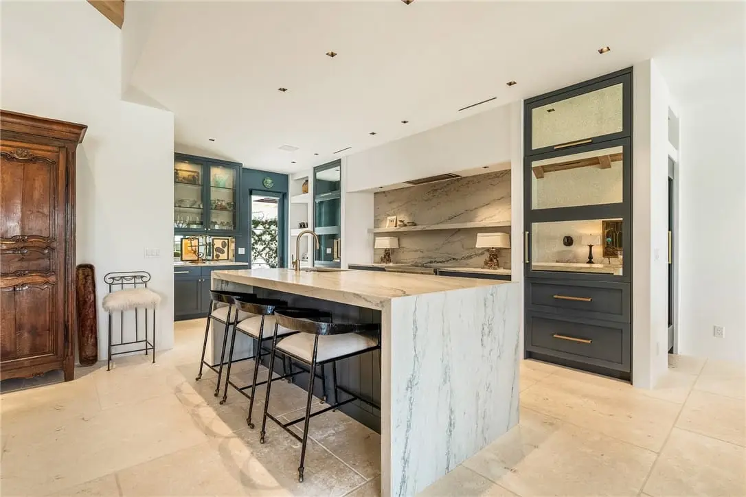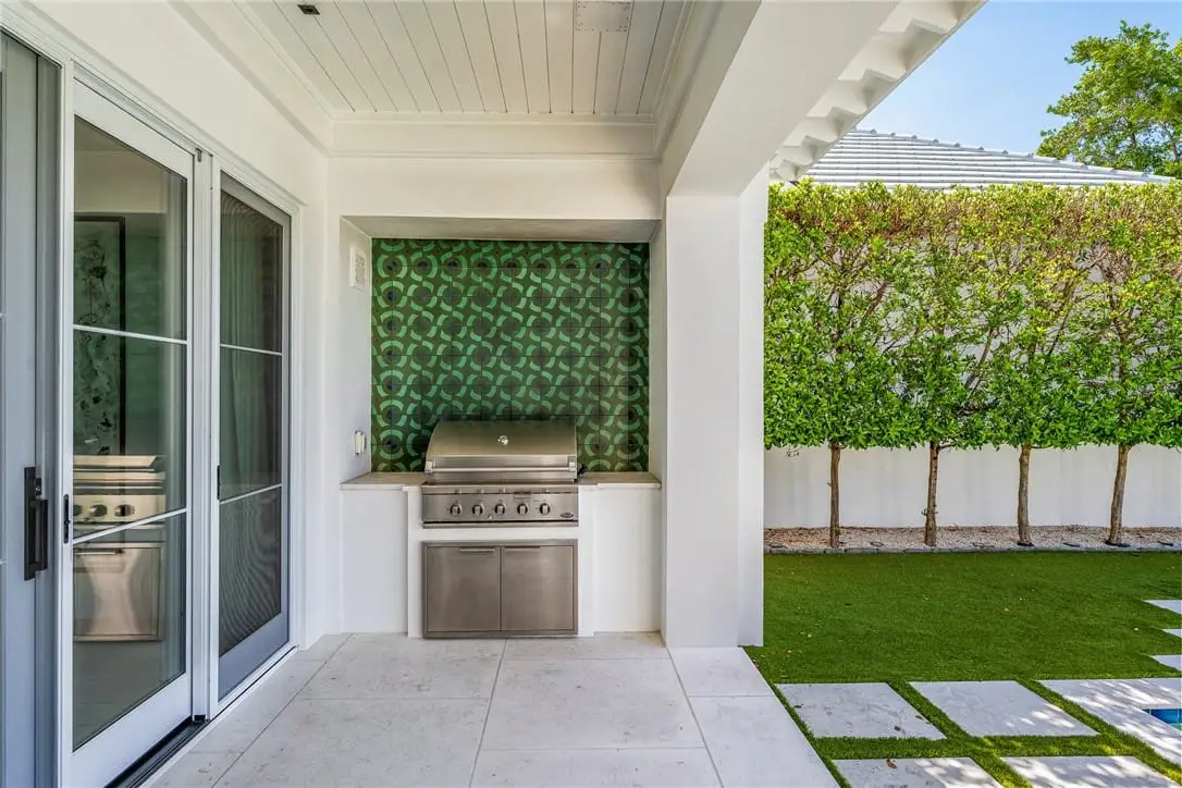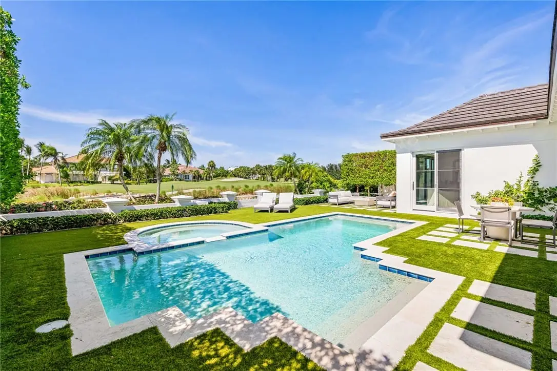 Stunning Orchid Island home with beautiful golf view of the 14th fairway. Remodeled updates include impact glass, Imported Turkish limestone floors throughout, oak interior doors and an open kitchen with top-tier appliances and Quartzite counters. A beautiful cathedral wood ceiling accents the light and airy living room and a modern gas fireplace opens to the living and dining rooms. The spacious primary suite offers golf views. An expansive electric-heated pool with new spa, built-in grill adjoins a shaded patio and gas firepit perfect for entertaining and relaxing at home. Sizes approximate/subject to error.