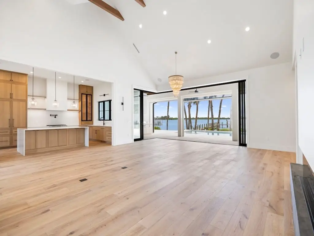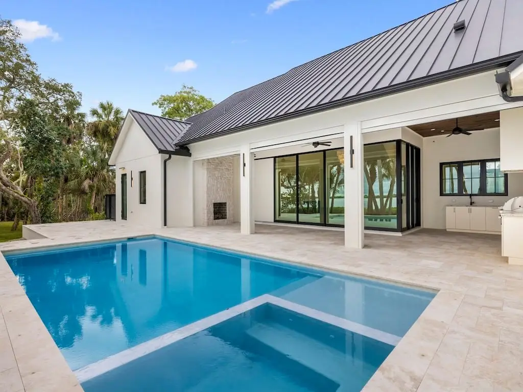 Riverfront Estate sanctuary; your private resort. Elegant luxury meets effortless Florida living. New custom masterpiece boasts 300 feet of direct riverfront on over an acre, a 180-foot dock & boat lift, beckons magical morning fishing & sunset cruises only steps from home! 4,270 sq ft, 4/5 1/2, 3+ car garage, open concept, soaring ceilings, exposed wood beams, 10-ft impact sliders, indoors flow seamlessly outside to a resort-style lanai, pool & spa. 3 fireplaces, state-of-the-art features, and timeless craftsmanshipan experience too extraordinary to describe, yet impossible to forget.