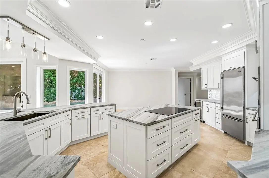 Chef's kitchen with Sub-Zero, Wolf appliances & dolomite counters
