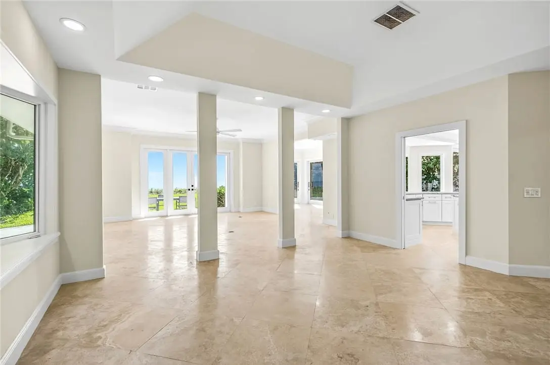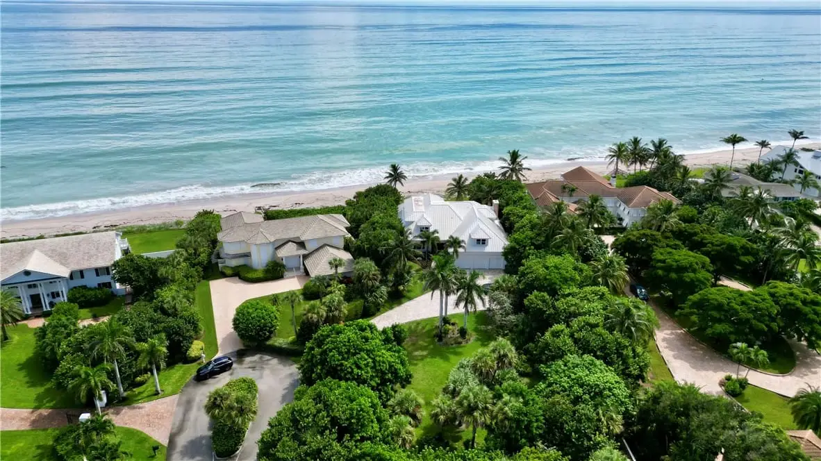 Tropical Oceanfront Luxury in Indian River Shores Set on over an acre of private and direct oceanfront, this extraordinary residence in Village Shoresa unique and gated enclave of just 20 homes in the heart of Indian River Shoreshas been beautifully transformed for todays coastal lifestyle. A gorgeous winding travertine driveway leads to a 3-car air conditioned garage and a tropical paradise of lush landscaping, sweeping lawns, and a pool overlooking the Atlantic.Inside, the home offers 5 bedrooms, 6 full baths, an oceanfront office, and a versatile flex room. Elegant natural stone and oak flooring, refined finishes, and walls of glass frame uninterrupted beach and ocean views. The chef’s kitchen, reimagined with Sub-Zero, Wolf appliances, and dolomite countertops with a leather finish, flows seamlessly into inviting living and dining spaces designed for both entertaining and quiet retreats.Every detail reflects thoughtful updatingfrom limestone baths and marble vanities to refined lighting, custom doors, and coastal-inspired design elements. Outdoors, a spacious lawn leads to dune plantings and a wide, uncrowded beach to create the perfect private retreat, with room to expand or build a guest home.Walk to the quaint Village Shops boutiques and restaurants, and located just minutes from Ocean Drives dining and cultural venues, this rare oceanfront haven offers unmatched privacy, exclusivity, and the relaxed elegance of Vero Beach living. Sizes approx/subj to error.
