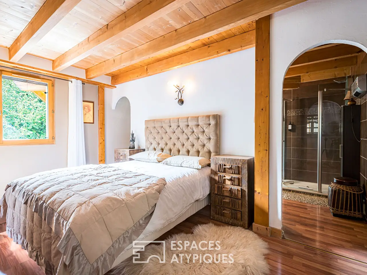 Located on the heights of Albertville, in a preserved and residential setting, this 250 sqm timber-frame villa with elegant architecture offers a rare living environment, facing south and enhanced by its surroundings. It embodies the perfect balance between comfort and tranquility. The entrance sets the tone, leading into a comfortable living room with a fireplace that flows seamlessly into a fitted open kitchen and dining area. The double-height ceiling in the living room, bathed in natural light, ensures brightness throughout the space. On this level, you will also find a bedroom with en-suite shower room, an office, a laundry room, as well as a stunning living area whose large bay windows extend naturally onto the terrace and garden. The upper floor is accessed via a spacious mezzanine overlooking the living room. Here, the night area offers three additional bedrooms, one of which has an en-suite shower room and dressing. A bathroom completes this floor. Outdoors, a beautiful 58 sqm outbuilding offers additional living space, perfect for hosting friends, painting, or DIY projects. A landscaped garden invites relaxation or convivial gatherings: a bamboo terrace surrounds a lovely heated swimming pool (12.50 x 4 m) with integrated cover. A wellness area with jacuzzi and a pool house complete this haven. A carport and additional outdoor parking spaces enhance the outstanding features of this family home. ENERGY CLASS: D / CLIMATE CLASS: B Estimated average annual energy costs for standard use, based on 2024 energy prices: between €3,460 and €4,750. Information on the risks to which this property is exposed is available on the Georisques website for the relevant zones: www.georisques.gouv.fr. REF. 2044EA Additional information * 8 rooms * 5 bedrooms * 1 bathroom * 3 shower rooms * Outdoor space : 5575 SQM * Parking : 6 parking spaces * Property tax : 2 791 € Energy Performance Certificate Primary energy consumption d : 194 kWh/m2.year High performance housing