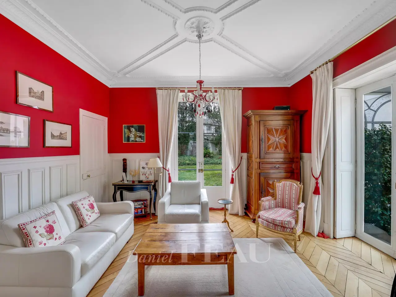 This exceptional apartment with the feel of a private house is in a fine 18th century private mansion with a near 500 sqm garden. Offering 340 sqm of floor space and 237 sqm of living space as defined by the Carrez Law, it comprises a garden level including three living/reception rooms (80 sqm in total) featuring Herringbone parquet flooring and fireplaces, a 50 sqm period veranda, a kitchen and a guest wc. Upstairs are 4 spacious bedrooms, a bathroom, a shower room and a wc. The garden level comprises a fitted studio apartment, technical premises, a workshop and a storage room. With a one-car garage. The apartment is particularly bright and features high ceilings with mouldings, Herringbone parquet flooring and marble fireplaces. Near good schools and the bus lanes, a 15-minute walk from the station, and a few minutes from the Haras de Jardy, its golf course and tennis courts. Easy A13 and A86 access.