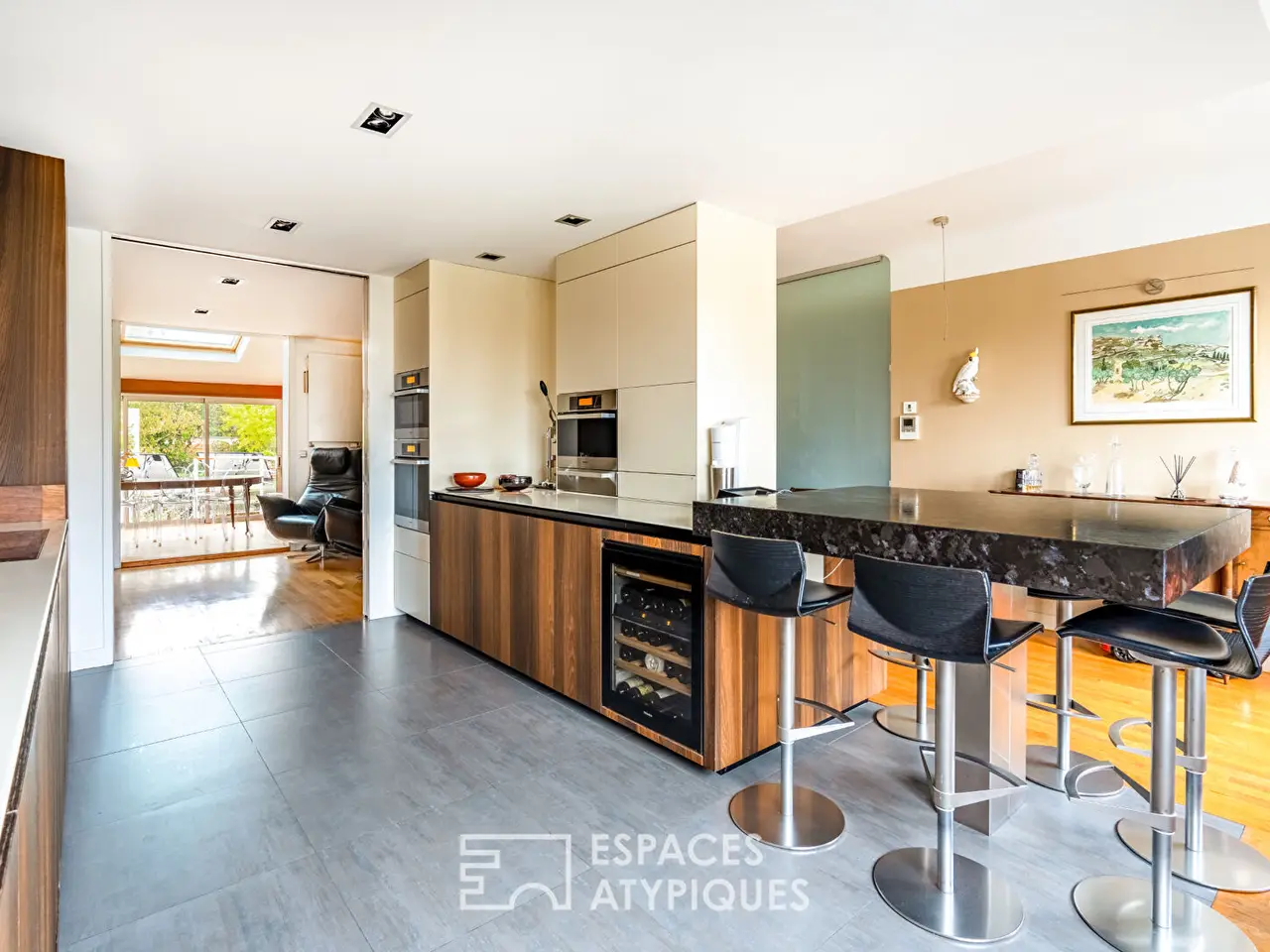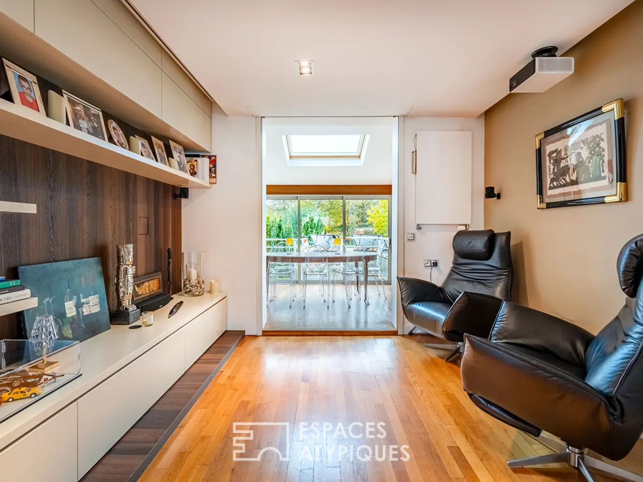 Located in the quiet and sought-after area of Porchefontaine in Versailles, this contemporary house of 219 sqm on the ground and 195 sqm Carrez stands out for its high-end equipment and its spaces optimized for a rare comfort of life. Perfectly adapted to a family life, it seduces with its bright layout and its multiple technical assets. It offers 6 bedrooms and an office in family configuration. It can also be perfectly suited to a liberal profession because it has two beautiful independent rooms with private access. Three toilets, two shower rooms and a bathroom offer the necessary comfort required. The large living room bathed in natural light, is structured around a modern and fully equipped kitchen, ideal for moments of sharing. Designed for relaxation, the living room has a video projector or an integrated television, creating a friendly atmosphere for movie nights. The heat pump and photovoltaic panels offer this house an energy management that is both economical and environmentally friendly. The exterior is not left out with a pretty garden, perfect for enjoying sunny days. A spacious jacuzzi integrated into an extension allows you to relax all year round, while the huge barbecue invites you to eat outdoors. A deck for repairing and storing cars is an atypical addition, ideal for car enthusiasts. An ideally located electrical terminal will meet the need for recharging a hybrid or full electric car. Of course, a laundry room, cellar and storage room complete this already rich set of proposals. The DPE in D guarantees good energy performance, a guarantee of comfort and savings. This rare and atypical property, with undeniable development potential, is part of the standing of Espaces Atypiques, combining high-end services and a privileged living environment in one of the most popular districts of Versailles. A unique opportunity for lovers of unique properties, which combines charm, modernity and character. 3 min walk from the main food shops 3 min walk from schools 5 min walk from Porchefontaine train station 10 min walk from Versailles Chantier train station 10 min by bus from Versailles Rive Gauche train station Quick N12 access by car or motorbike to Paris, Velizy or west Yvelines ENERGY CLASS: D / CLIMATE CLASS: B. Estimated average amount of annual energy expenditure for standard use, based on energy prices as of 01/01/2021: between EUR2,450 and EUR3,370. REF. 8442 Additional information * 9 rooms * 6 bedrooms * 1 bathroom * 2 shower rooms * 2 floors in the building * Outdoor space : 327 SQM * Parking : 4 parking spaces * 9 co-ownership lots * Property tax : 2 803 €