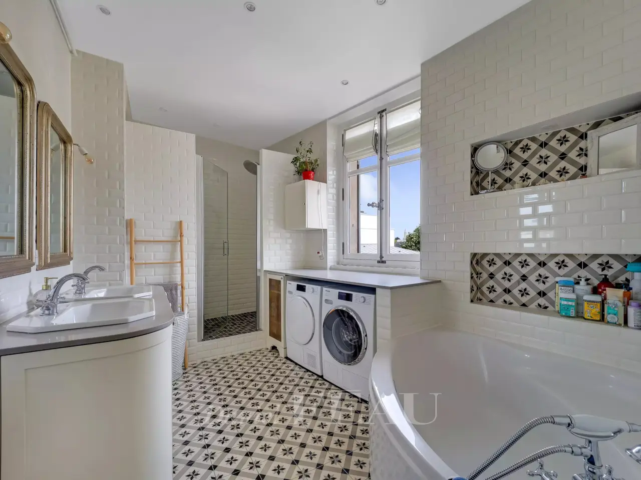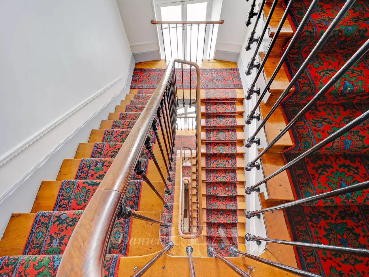 This duplex apartment on the 3rd and top floor of a 19th century building with elegant common areas offers 185 sqm of floor space and 157 sqm of living space as defined by the Carrez Law. Renovated throughout in 2021, it includes a bright double living/reception room with wide floor-to-ceiling windows opening onto a continuous balcony, a kitchen, and a master bedroom with a bath/shower room and a wc. Benefiting from separate access, the upper floor includes a family room, three further bedrooms, a shower room and a wc. With two cellars. Period features include 2.90 metre high ceilings, parquet flooring, tomette floor tiles, and fireplaces. The building is not equipped with a lift. In a prime location 3 minutes from the station and under 10 minutes from Place du Marché, rue de la Paroisse and the shops. Hoche catchment area.