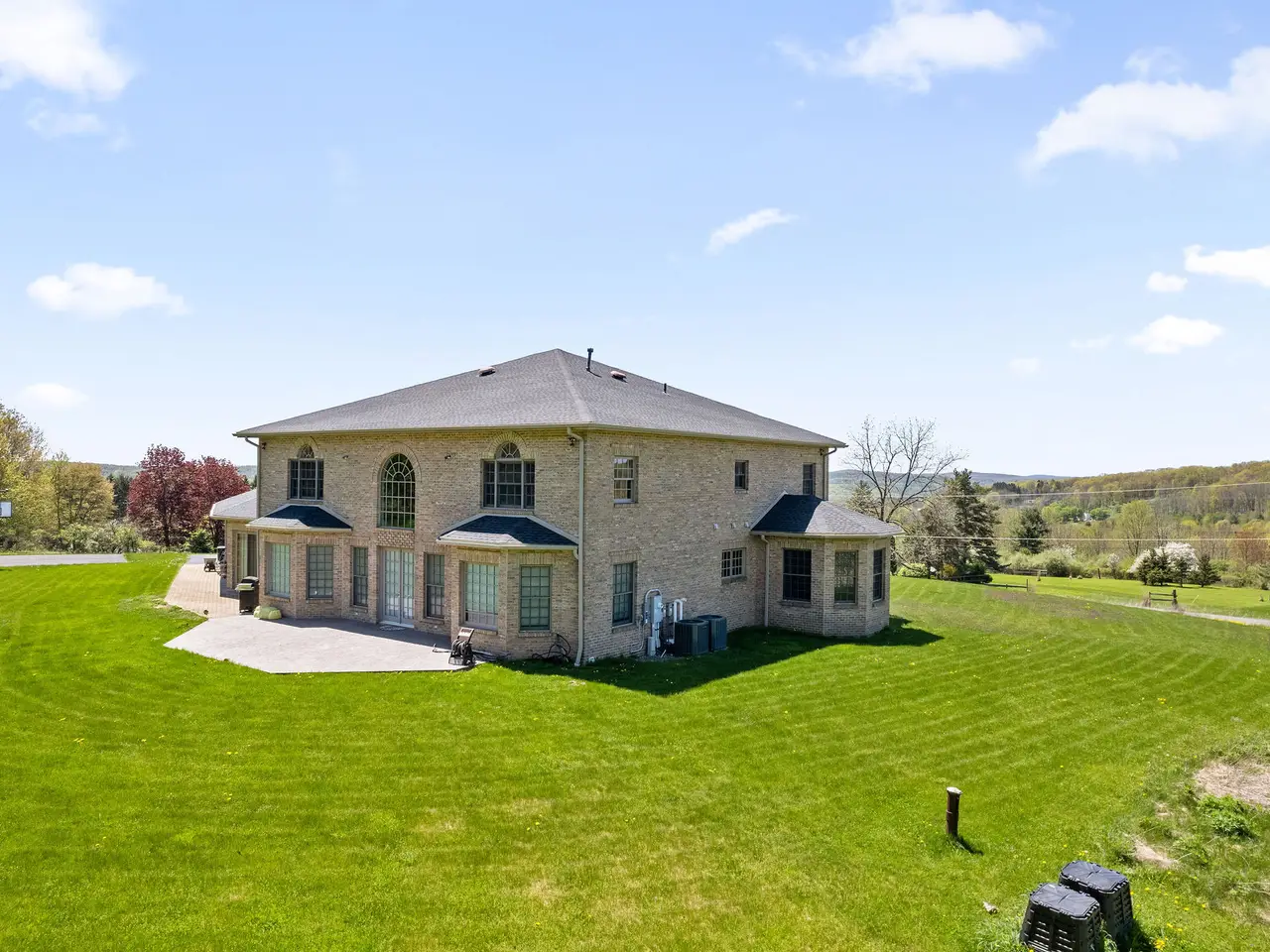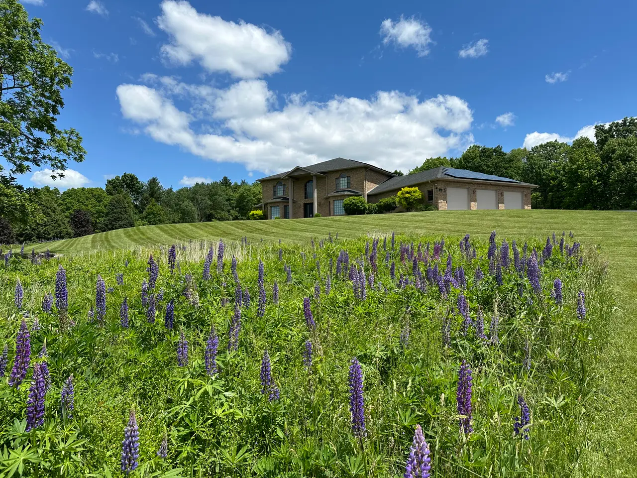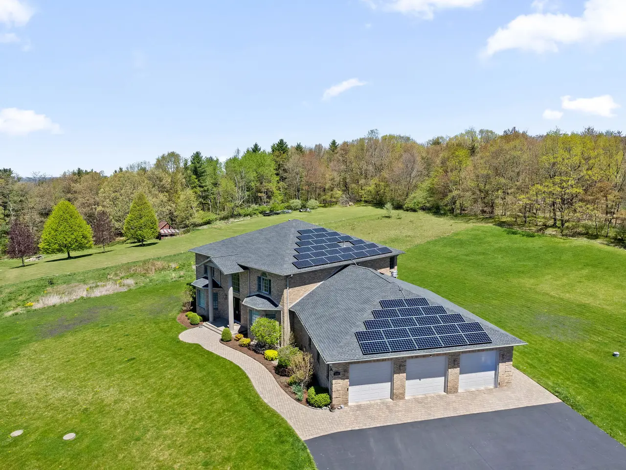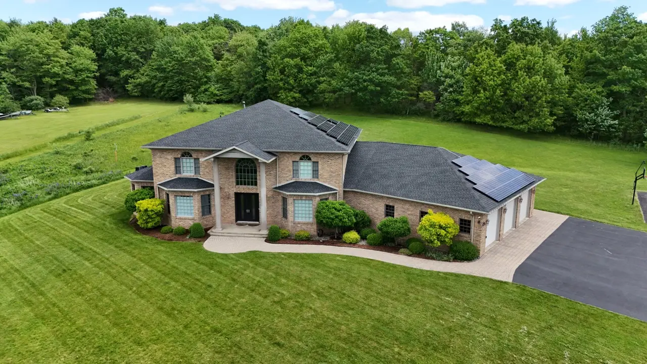 This custom-built villa-style residence is perched majestically on 3.73 acres of serene landscape, this home is a perfect blend of luxury and sustainability. Recent upgrades include a state-of-the-art whole-house solar panel system, complete with a Tesla charger and battery backup, ensuring energy efficiency and independence. Step inside to find soaring ceilings that create an airy, open ambiance. The first-floor master suite is a sanctuary, boasting a massive en suite bath with high-end finishes. Each room in this home features its own heating and cooling zone, all controlled by smart thermostats for personalized comfort. The chef’s kitchen is a culinary delight, equipped with a brand new Wolf cooktop induction range and additional storage solutions. Convenience is key with laundry facilities on both the first and second floors. The upgraded HVAC system ensures year-round comfort, while the central vacuum system adds a touch of modern convenience. Plenty of room in the three-car garage!