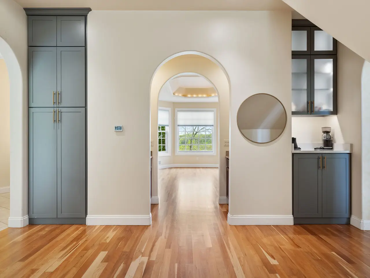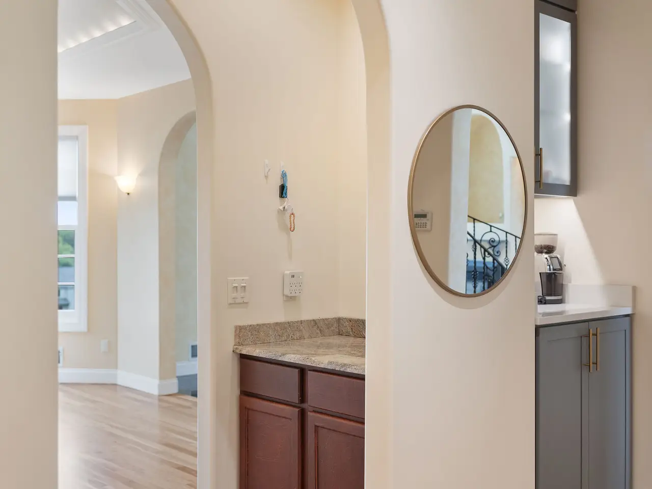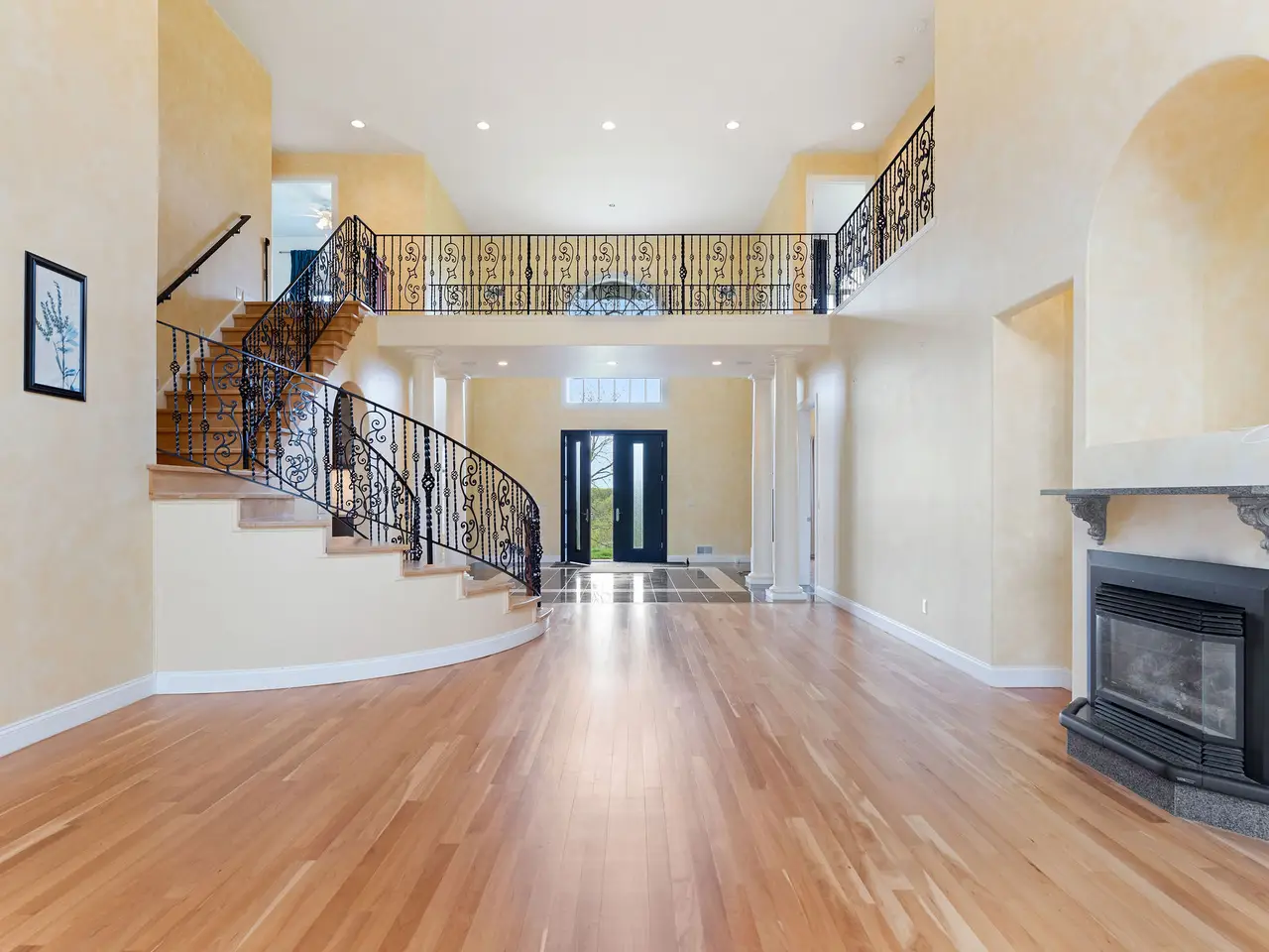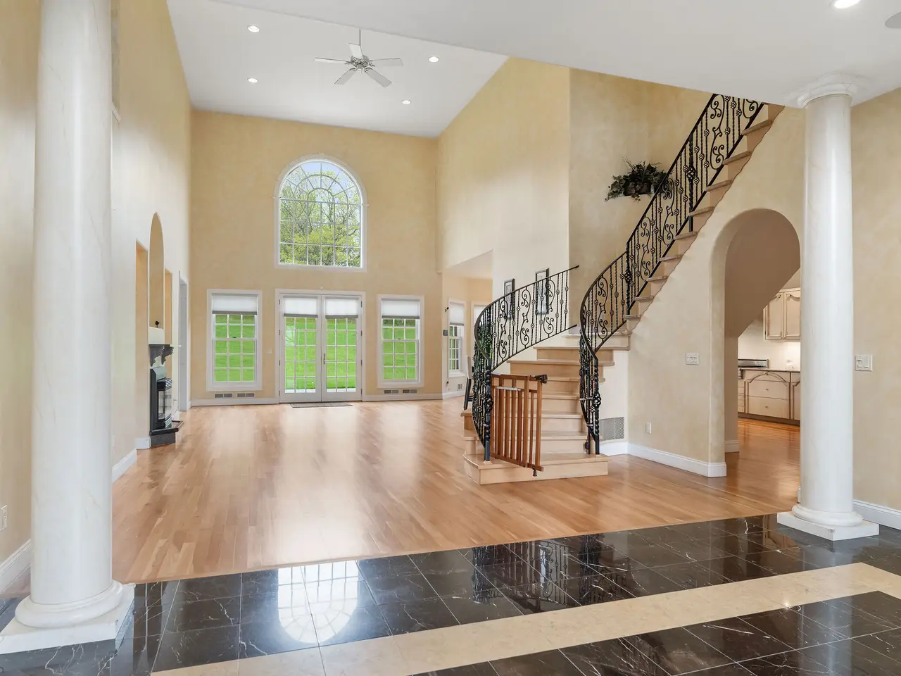 This custom-built villa-style residence is perched majestically on 3.73 acres of serene landscape, this home is a perfect blend of luxury and sustainability. Recent upgrades include a state-of-the-art whole-house solar panel system, complete with a Tesla charger and battery backup, ensuring energy efficiency and independence. Step inside to find soaring ceilings that create an airy, open ambiance. The first-floor master suite is a sanctuary, boasting a massive en suite bath with high-end finishes. Each room in this home features its own heating and cooling zone, all controlled by smart thermostats for personalized comfort. The chef’s kitchen is a culinary delight, equipped with a brand new Wolf cooktop induction range and additional storage solutions. Convenience is key with laundry facilities on both the first and second floors. The upgraded HVAC system ensures year-round comfort, while the central vacuum system adds a touch of modern convenience. Plenty of room in the three-car garage!