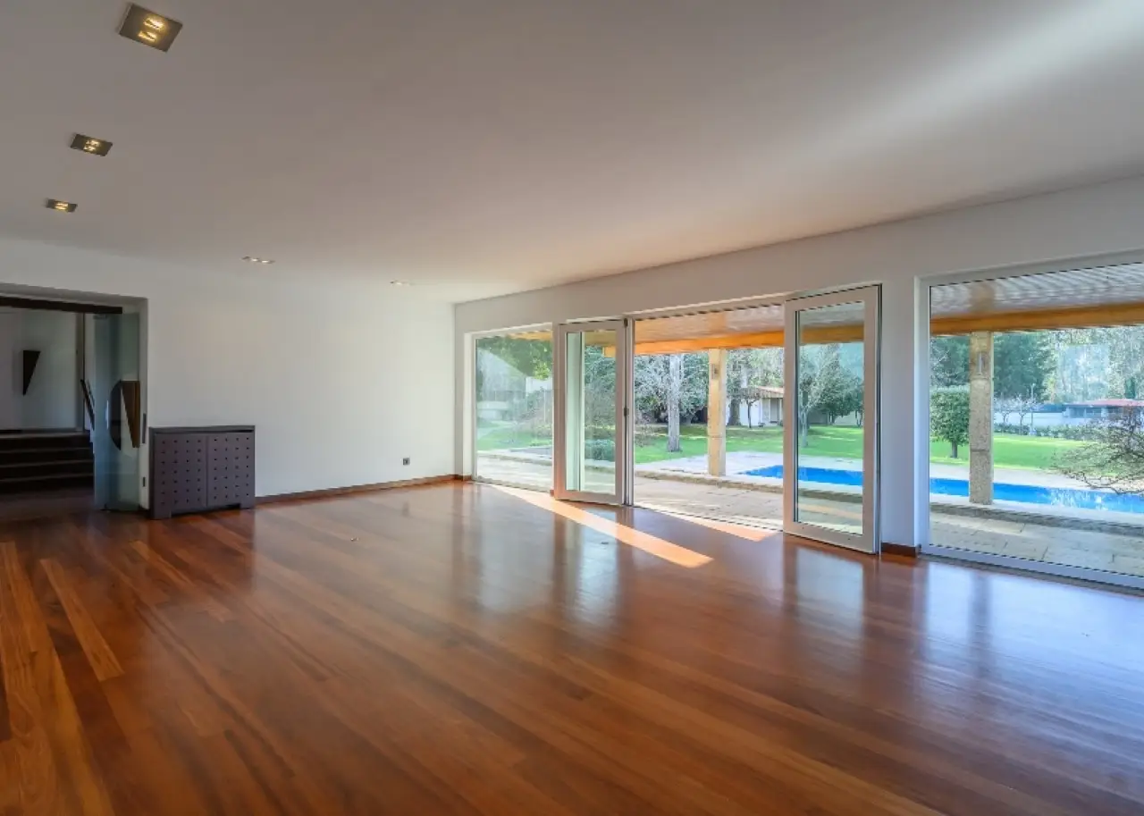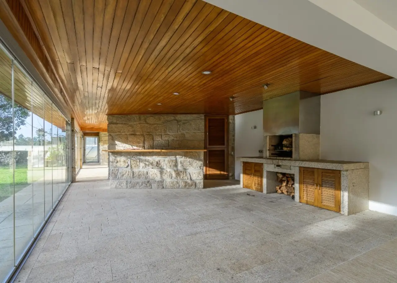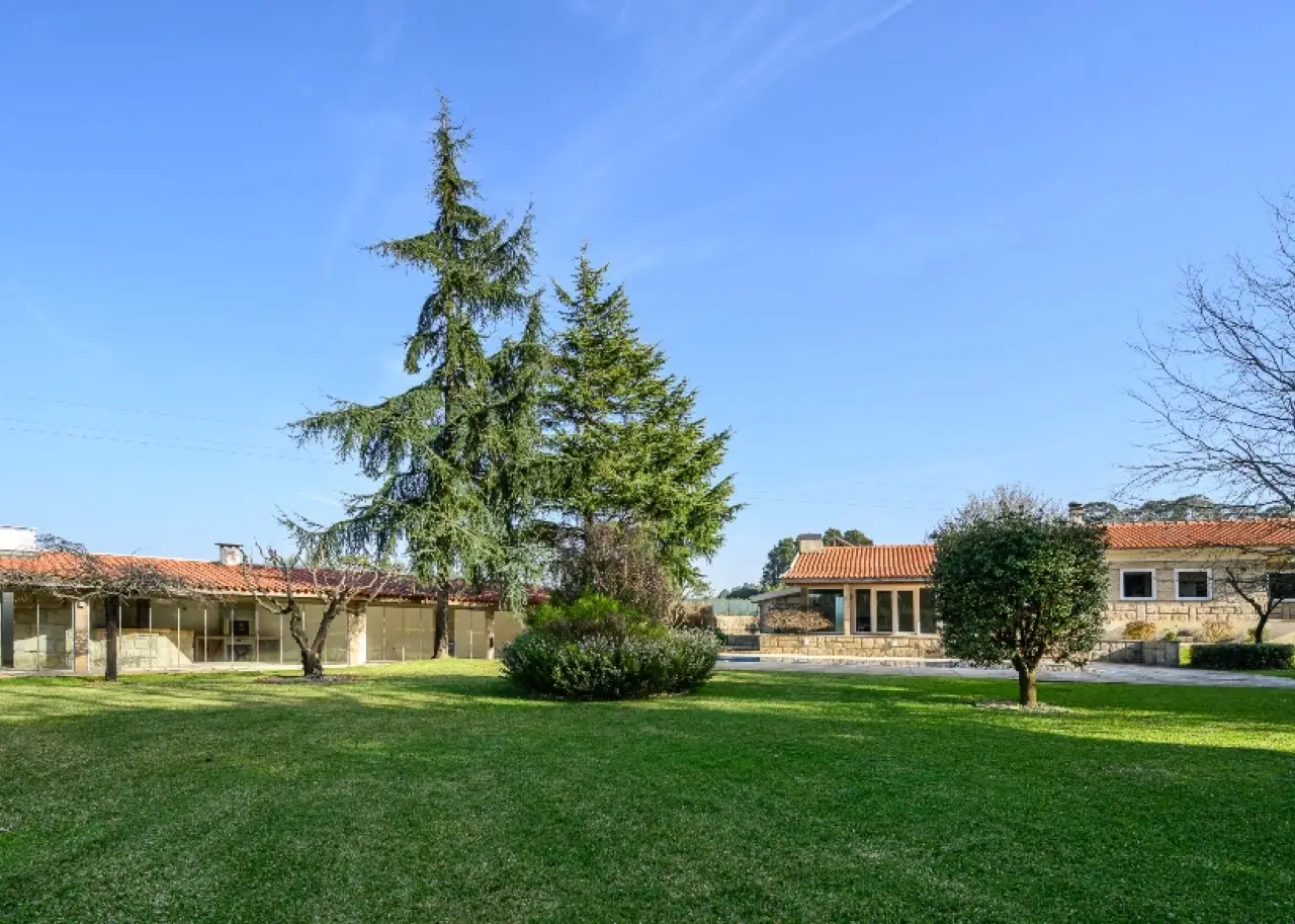 Discover the ideal combination of urban proximity and rural tranquilly in this majestic property, situated at the same distance from Vila do Conde as it is from Porto, which is 15 minutes away. Featuring a privileged location on an expansive property measuring approximately 7,430 m2, this villa is an epitome of luxury and serenity, encircled by a verdant garden. By permitting an abundance of natural light to enter through the glazed openings, each space is imbued with a cheerful and inviting ambiance, and there is a constant connection to the verdant space beyond. The well-appointed and capacious kitchen maintains a direct line of communication with both the dining area and the exterior. In addition to an ample number of storage cabinets, this residence features a capacious pantry and a utility room. An endearing annexe featuring a completely glazed façade and a complete kitchen with a barbecue is situated on the exterior. This area is ideal for dining al fresco while taking in the view of the verdant garden and swimming pool. Additionally, the engine chamber of the pool is located here. In addition to the swimming pool mentioned earlier, this villa also features a tennis court featuring a support area that can be utilised as a private gym, catering to sports enthusiasts. The house is equipped with a central heating system, solar panels for the domestic hot water system and air conditioning in some of the rooms. CHARACTERISTICS: Plot Area: 7 430 m2 | 79 976 sq ft Deployment Area: 430 m2 | 4 628 sq ft Building Area: 550 m2 | 5 920 sq ft Bedrooms: 4 Energy efficiency: D FEATURES: Covered outdoor parking for 6 cars Heating system - gas boiler DHW - solar panels Air conditioning Swimming pool Tennis court Annex with kitchen and barbecue