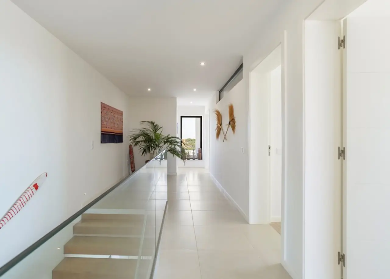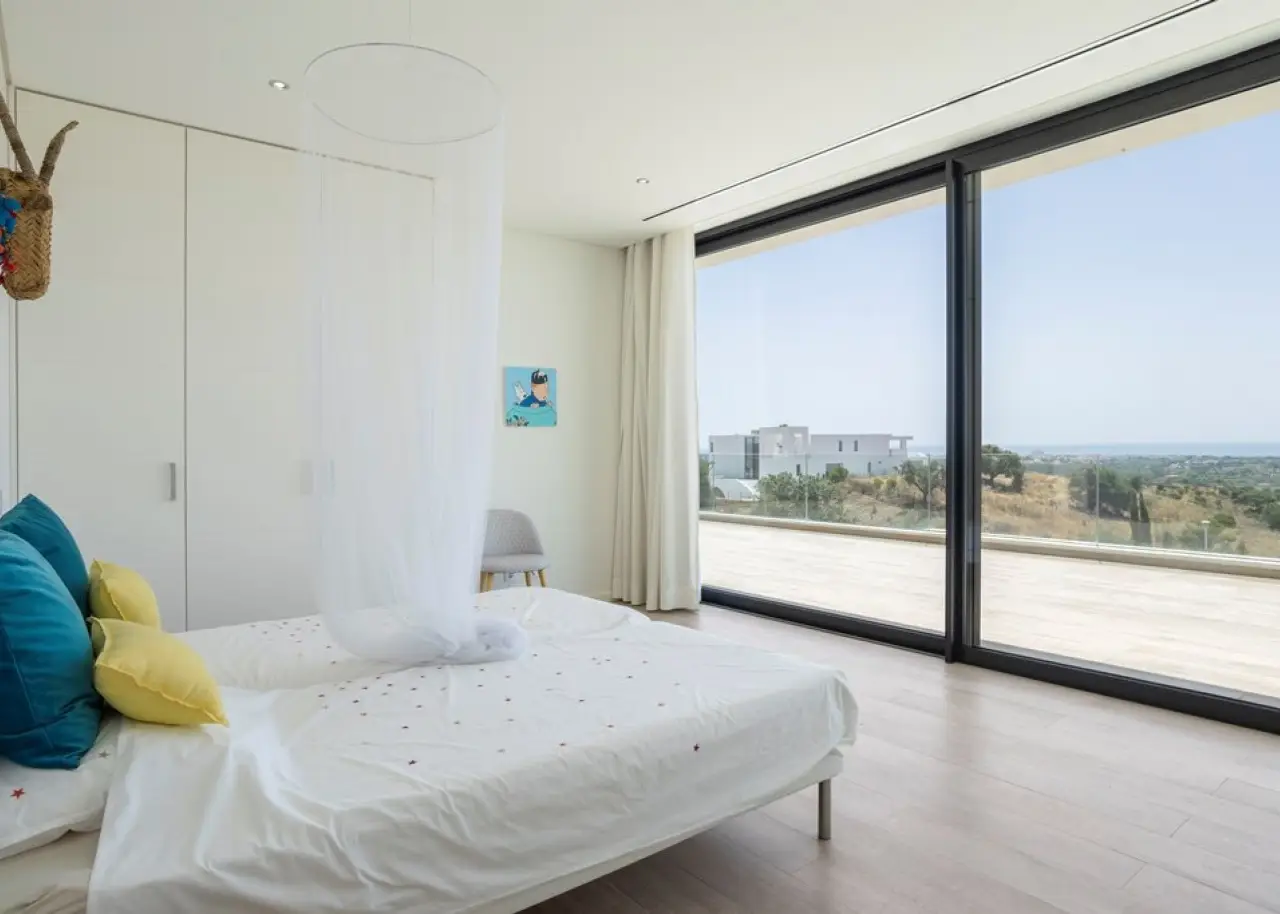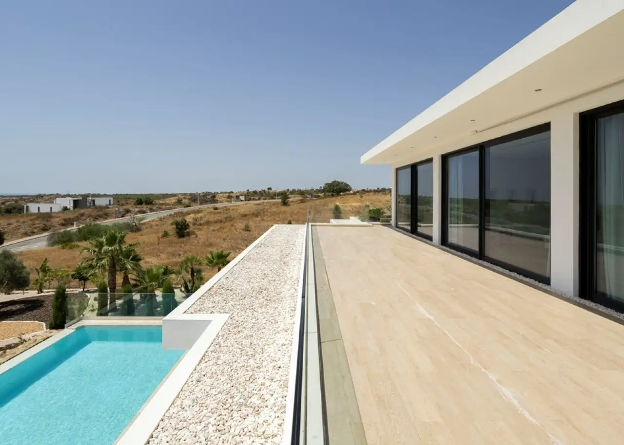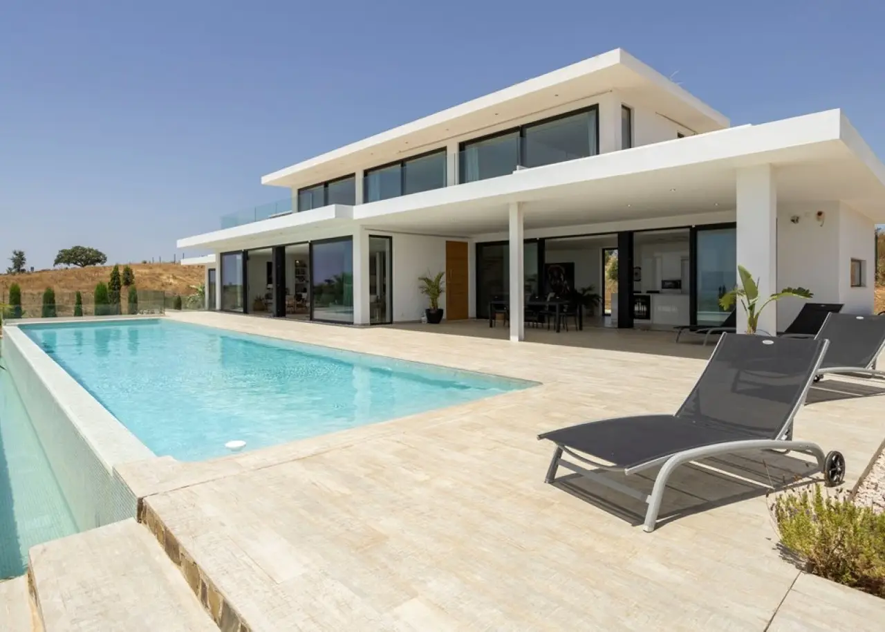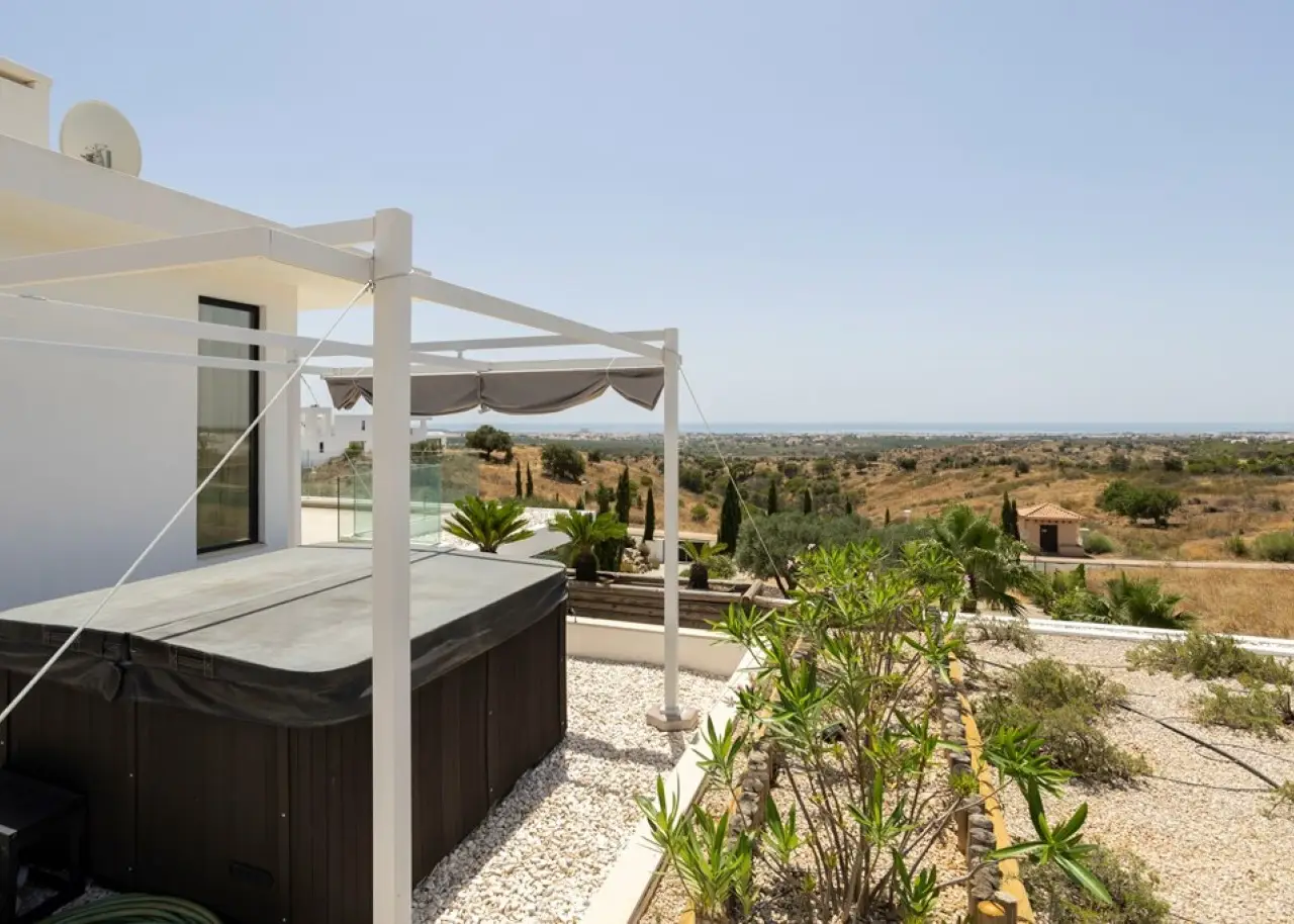 Luxury 5-bedroom detached villa with stunning sea views in Monte Rei Resort, Algarve, Portugal. The huge floor-to-ceiling windows not only flood the space with natural light, but also give direct access to the pool area, creating a harmonious flow between indoor and outdoor living. A vast open-concept space on the main floor seamlessly integrates the kitchen, dining room and living room. The modern kitchen features a central island, perfect for casual dining and entertaining. It also contains two beautifully decorated en suite bedrooms. The second floor has three generous en suite bedrooms, facing south and with stunning sea views, all designed for comfort and privacy. The highlight of this floor is the beautiful terrace that connects all the rooms, where you can enjoy a jakuzzi in a serene setting and take in the panoramic views. Outside extends a stunning infinity pool, creating an oasis of tranquillity with unobstructed views. Surrounding the property is a beautiful, low-maintenance landscaped garden. Throughout the villa, the high-quality décor and modern design elements feature simple lines and a sophisticated aesthetic. Located in the prestigious Monte Rei Resort, this luxurious villa offers a unique combination of elegance, comfort and stunning natural beauty, making it the perfect retreat for those seeking a sophisticated lifestyle. CHARACTERISTICS: Plot Area: 2 519 m2 | 27 114 sq ft Useful area: 408 m2 | 4 392 sq ft Deployment Area: 282 m2 | 3 035 sq ft Building Area: 408 m2 | 4 392 sq ft Bedrooms: 5 Bathrooms: 7 Garage: 2 Energy efficiency: A FEATURES: Luxurious Independent 5 suites Sea views Infinity pool 3 floors Garden Jakuzzi Modern design Privacy