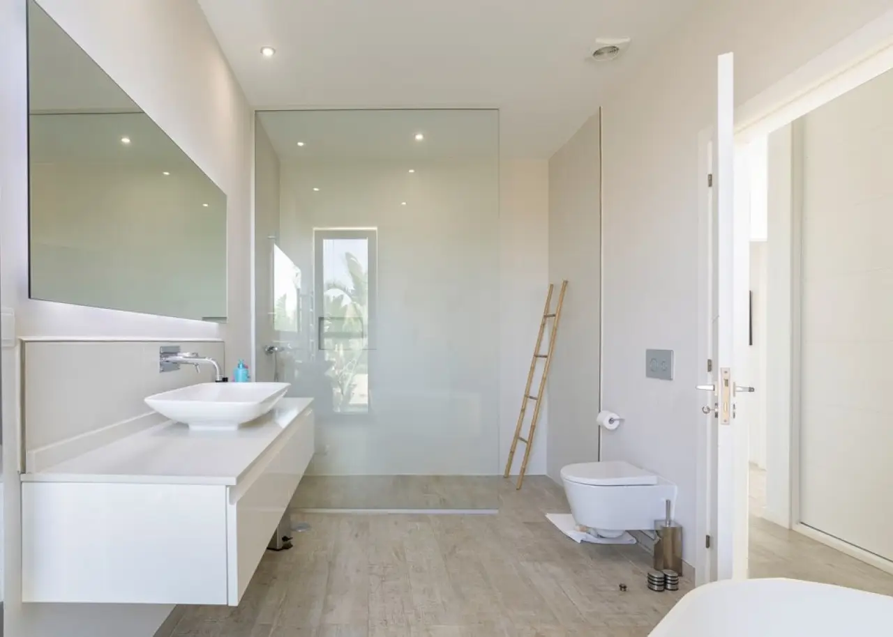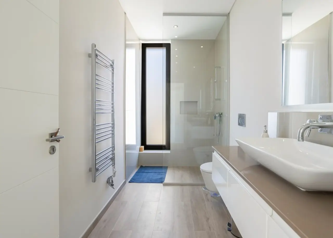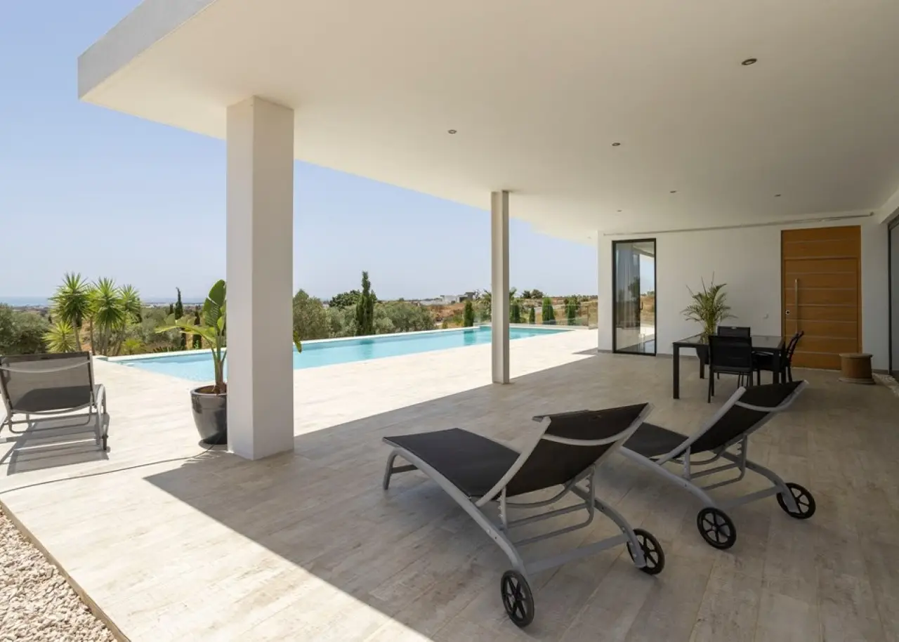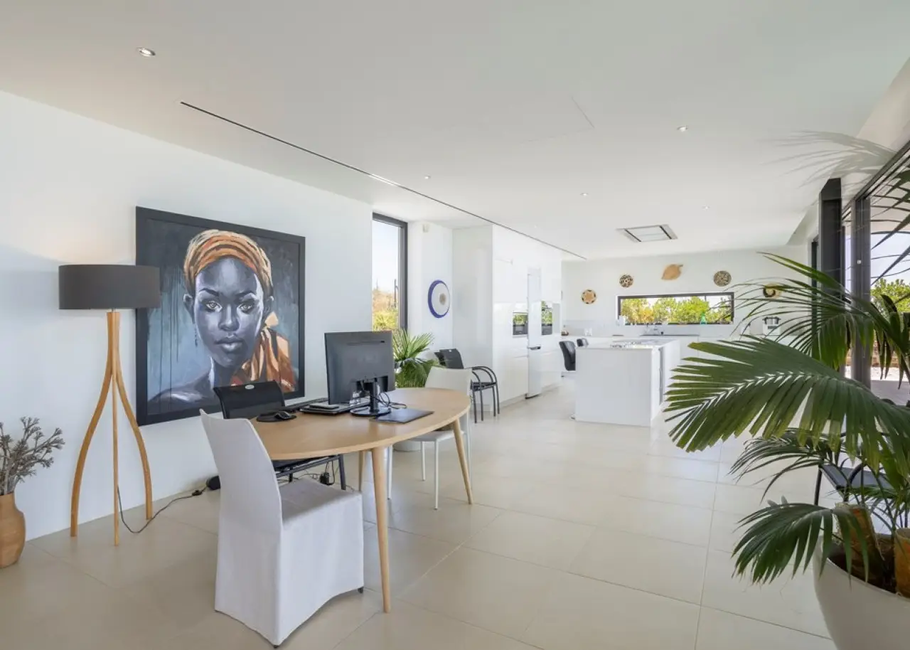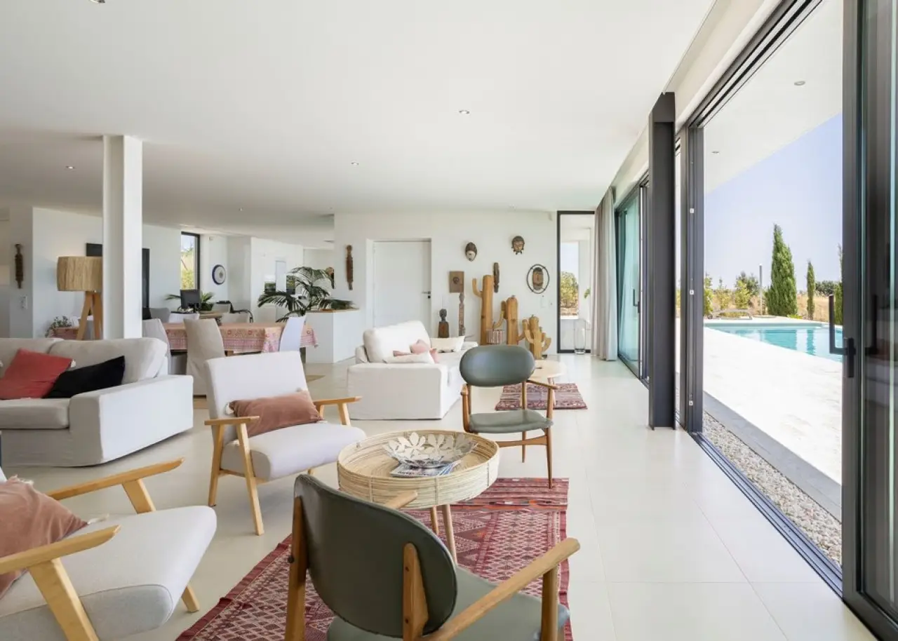 Luxury 5-bedroom detached villa with stunning sea views in Monte Rei Resort, Algarve, Portugal. The huge floor-to-ceiling windows not only flood the space with natural light, but also give direct access to the pool area, creating a harmonious flow between indoor and outdoor living. A vast open-concept space on the main floor seamlessly integrates the kitchen, dining room and living room. The modern kitchen features a central island, perfect for casual dining and entertaining. It also contains two beautifully decorated en suite bedrooms. The second floor has three generous en suite bedrooms, facing south and with stunning sea views, all designed for comfort and privacy. The highlight of this floor is the beautiful terrace that connects all the rooms, where you can enjoy a jakuzzi in a serene setting and take in the panoramic views. Outside extends a stunning infinity pool, creating an oasis of tranquillity with unobstructed views. Surrounding the property is a beautiful, low-maintenance landscaped garden. Throughout the villa, the high-quality décor and modern design elements feature simple lines and a sophisticated aesthetic. Located in the prestigious Monte Rei Resort, this luxurious villa offers a unique combination of elegance, comfort and stunning natural beauty, making it the perfect retreat for those seeking a sophisticated lifestyle. CHARACTERISTICS: Plot Area: 2 519 m2 | 27 114 sq ft Useful area: 408 m2 | 4 392 sq ft Deployment Area: 282 m2 | 3 035 sq ft Building Area: 408 m2 | 4 392 sq ft Bedrooms: 5 Bathrooms: 7 Garage: 2 Energy efficiency: A FEATURES: Luxurious Independent 5 suites Sea views Infinity pool 3 floors Garden Jakuzzi Modern design Privacy