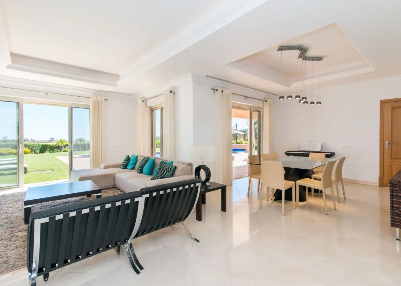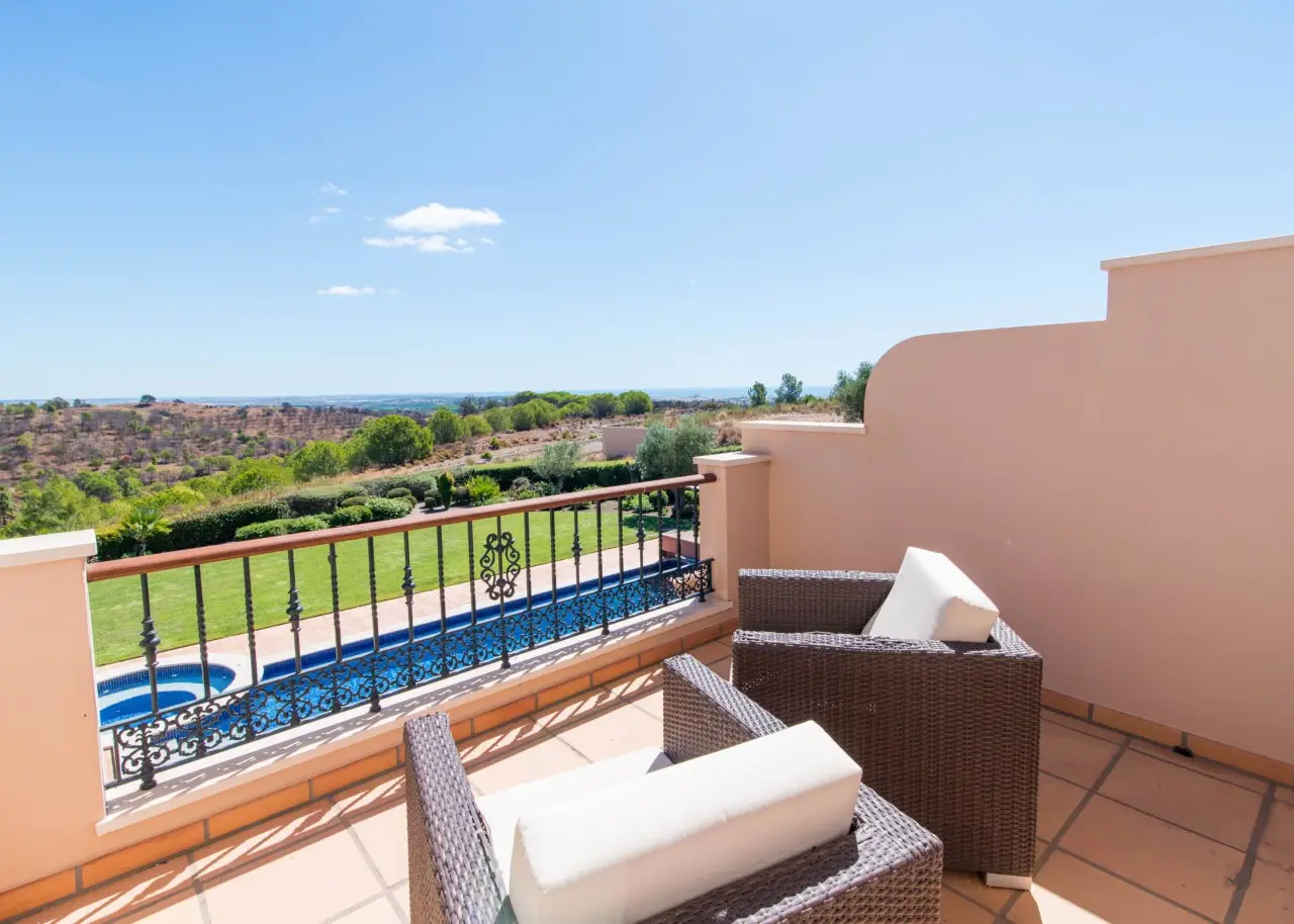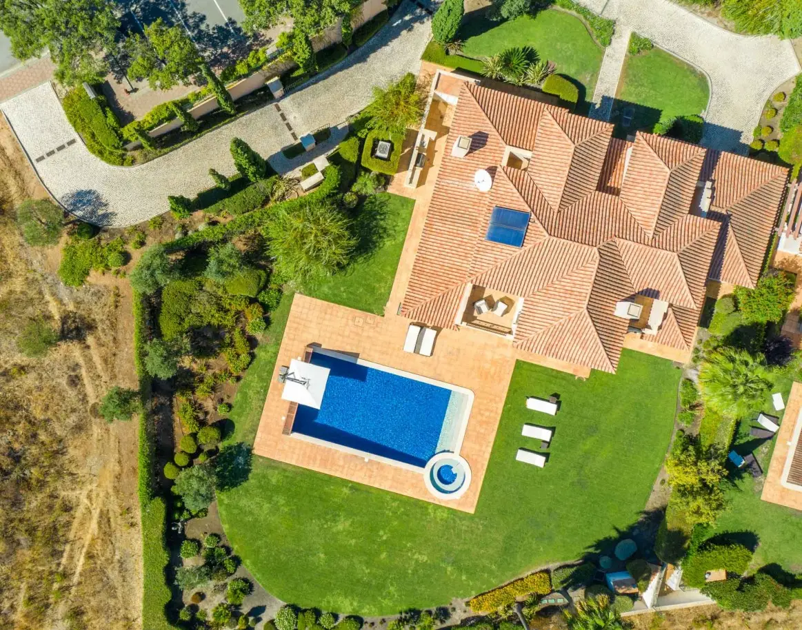 Luxury five bedroom villa for sale in Vila Real de Santo Antonio, Algarve. This villa has five bedrooms, all with en suite bathrooms and a dressing room, a living room, a fully equipped kitchen, a utility room, a cellar, and a garage. It is already decorated and meticulously maintained. The villa features expansive outdoor recreation areas, a barbecue, a heated swimming pool, and a jacuzzi, as well as breathtaking views of the sea and golf course. In a prime location, surrounded by nature, only ten minutes from the Spanish border and forty-five minutes from Faro International Airport. CHARACTERISTICS: Plot Area: 1 871 m2 | 20 139 sq ft Area: 550 m2 | 5 920 sq ft Building Area: 550 m2 | 5 920 sq ft Bedrooms: 5 Bathrooms: 6 Energy efficiency: B FEATURES: Fully furnished and equipped Five suites Laundry Barbecue Swimming pool Jacuzzi Alarm system Solar panels Air conditioning