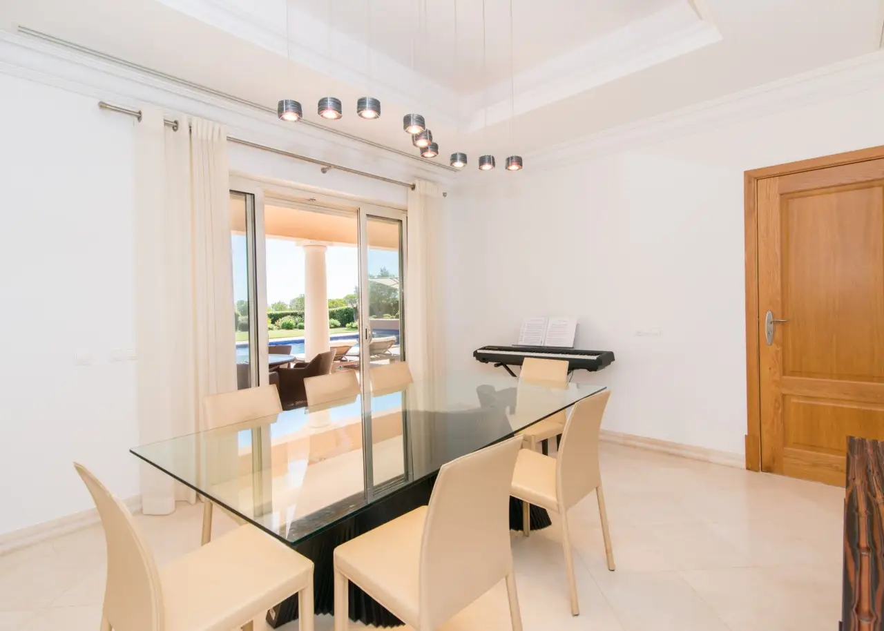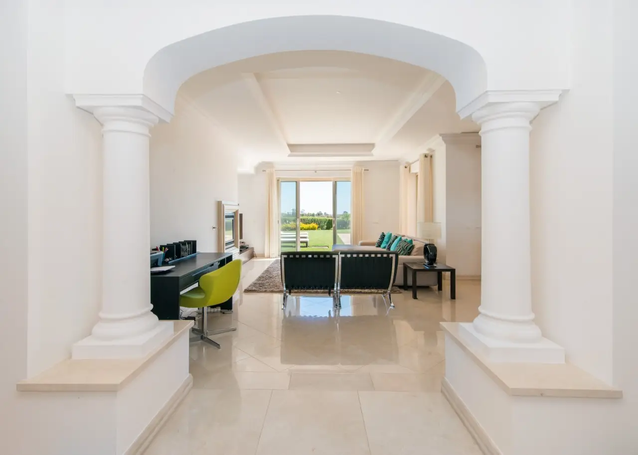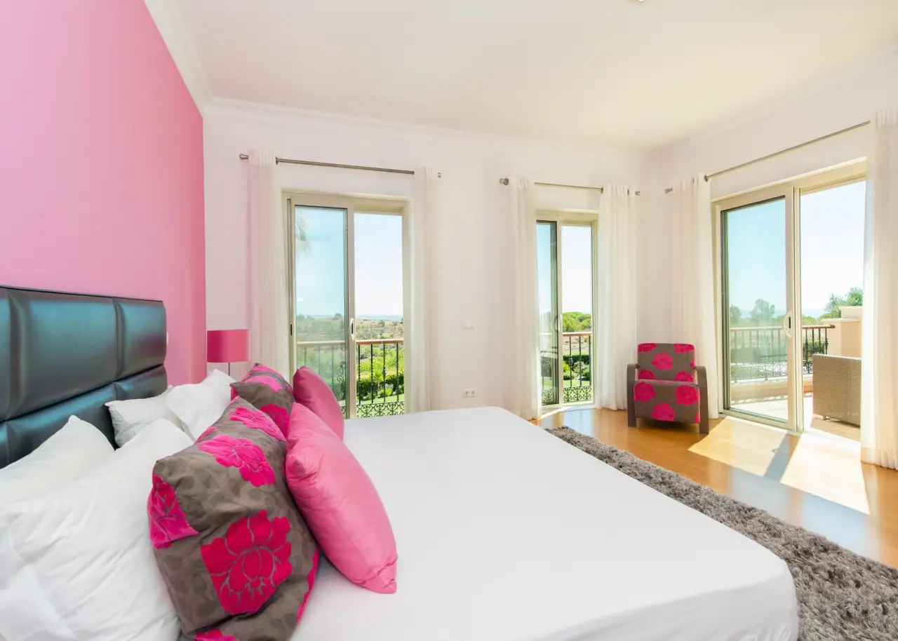Luxury five bedroom villa for sale in Vila Real de Santo Antonio, Algarve. This villa has five bedrooms, all with en suite bathrooms and a dressing room, a living room, a fully equipped kitchen, a utility room, a cellar, and a garage. It is already decorated and meticulously maintained. The villa features expansive outdoor recreation areas, a barbecue, a heated swimming pool, and a jacuzzi, as well as breathtaking views of the sea and golf course. In a prime location, surrounded by nature, only ten minutes from the Spanish border and forty-five minutes from Faro International Airport. CHARACTERISTICS: Plot Area: 1 871 m2 | 20 139 sq ft Area: 550 m2 | 5 920 sq ft Building Area: 550 m2 | 5 920 sq ft Bedrooms: 5 Bathrooms: 6 Energy efficiency: B FEATURES: Fully furnished and equipped Five suites Laundry Barbecue Swimming pool Jacuzzi Alarm system Solar panels Air conditioning