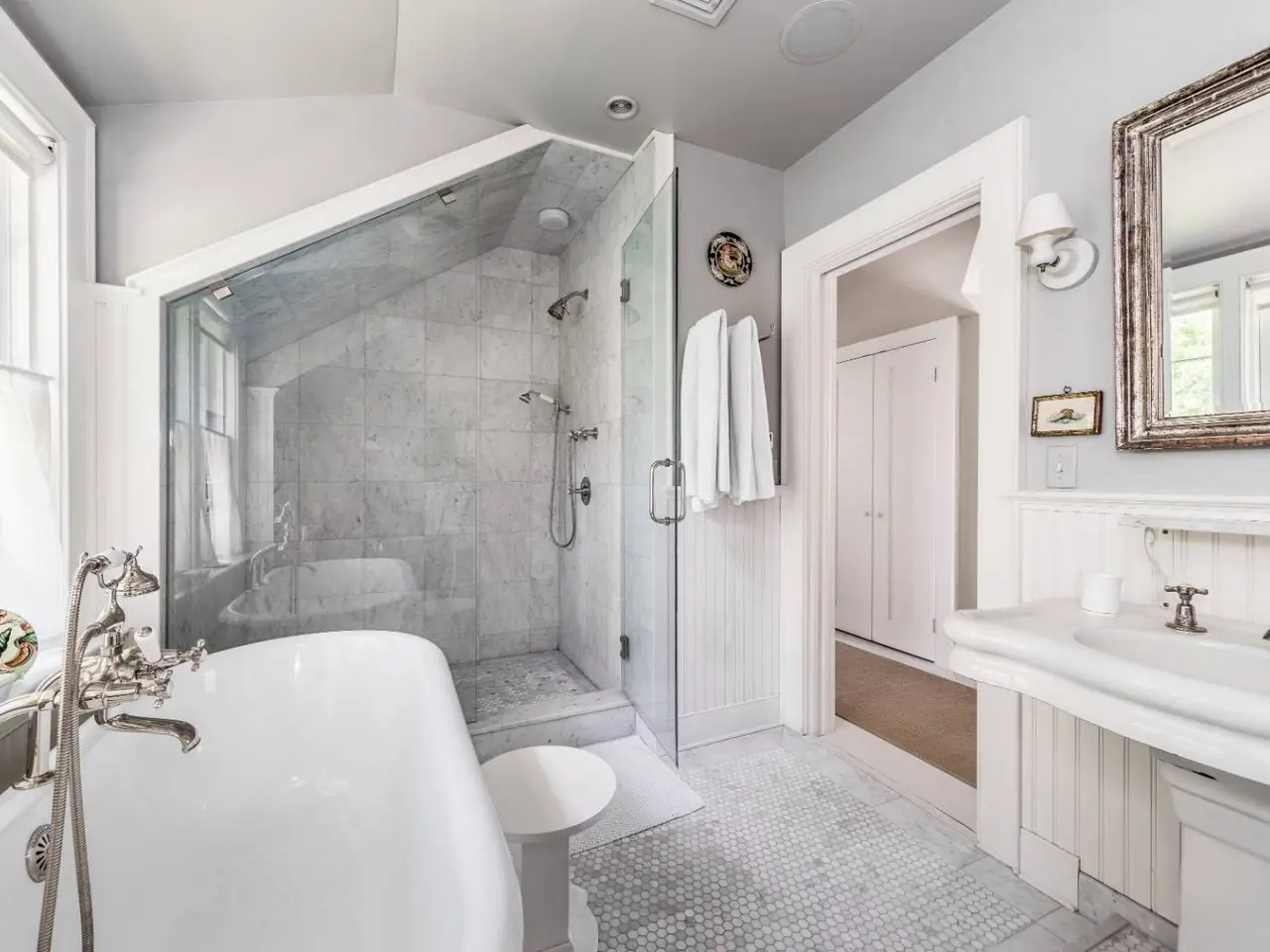 Be the first to enjoy this just-completed perfect home right in the heart of the Village. Newly expanded upon and completely renovated, this home has a new private master suite with Juliette balcony overlooking the mature perennial gardens and heated gunite pool. There are three guest bedrooms and thread half beautiful baths. There is a junior primary bedroom with en suite bedroom on main floor. Not only is there a formal dining room, newly expanded comfortable living room with fireplace, there is also a state-of-the-art, eat-in-kitchen with island, pantry and all new top-of-the-line stainless steel appliances that opens onto a gracious sunroom with French doors leading out to the terrace and gardens. Additional amenities include cable and wireless broadband. A wonderful way to be close to it all while having this tranquil setting.