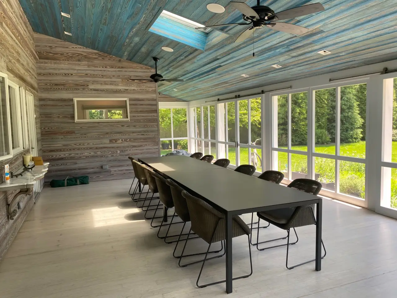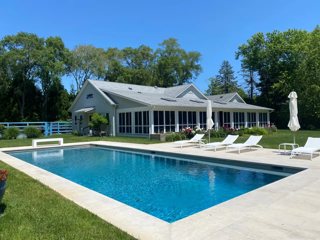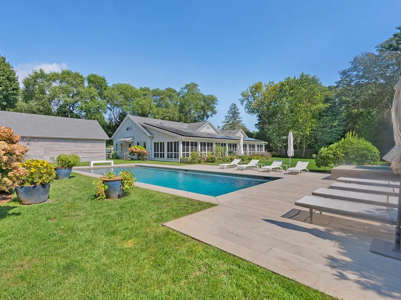 Stunning one-level home beautifully appointed with stellar art in the center of East Hampton Village set back from the road and down a long driveway. You can entertain outside on the large 1,000-square-foot screened-in porch with Italian-designed furniture in front of a gas fireplace. Outdoor gas and charcoal grills. Expansive magnificently landscaped backyard with 15 x 50 gas-heated gunite pool and 8 x 8 spa. Chef's kitchen with Viking stove, Sub Zero refrigerator, two dishwashers, and large center island opening to the living area with gas fireplace and dining area filled with natural light. Split floor plan with two bedrooms on one side and two bedrooms on the other, each with its own TV and ensuite baths. Additional room to be used as den or office. Sonos system, Apple TV, organic vegetable/herb garden (will be maintained by gardner), and composting vessel. Perfect summer rental in East Hampton Village, affording privacy but where everything is just moments away. AVAILABLE 9/19/25 THROUGH 10/5/25 FOR $22K. Listing ID: 898208