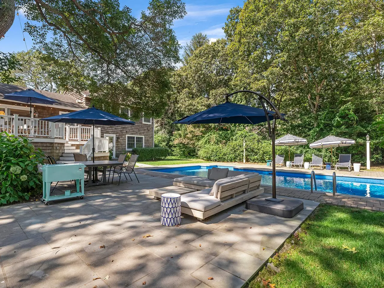 This recently renovated 4 bedroom, 3.5 bath Quogue Village home is filled with light and offers a stunning backyard with an expansive lawn, mature landscaping, heated pool and stone patio. Enter through the welcoming foyer and a primary suite with spa bath and powder room, awaits on the first floor. The main level includes a cozy living room with fireplace, dining area, and well-equipped kitchen. Off the dining room is the outdoor deck for dining and entertaining. The upper level boasts a second primary en suite, two guest bedrooms and a hall bath. A lower level family room provides another entertaining space. The layout lends itself to multiple areas for gathering. Located in the Village with access to the residents-only Quogue Beach. Available for Winter 2025/2026 and Summer 2026. Listing ID: 925747