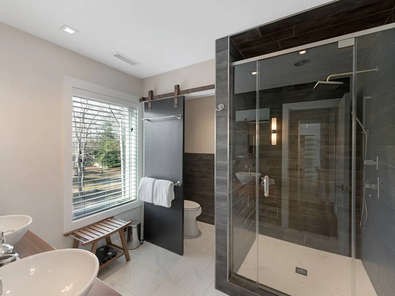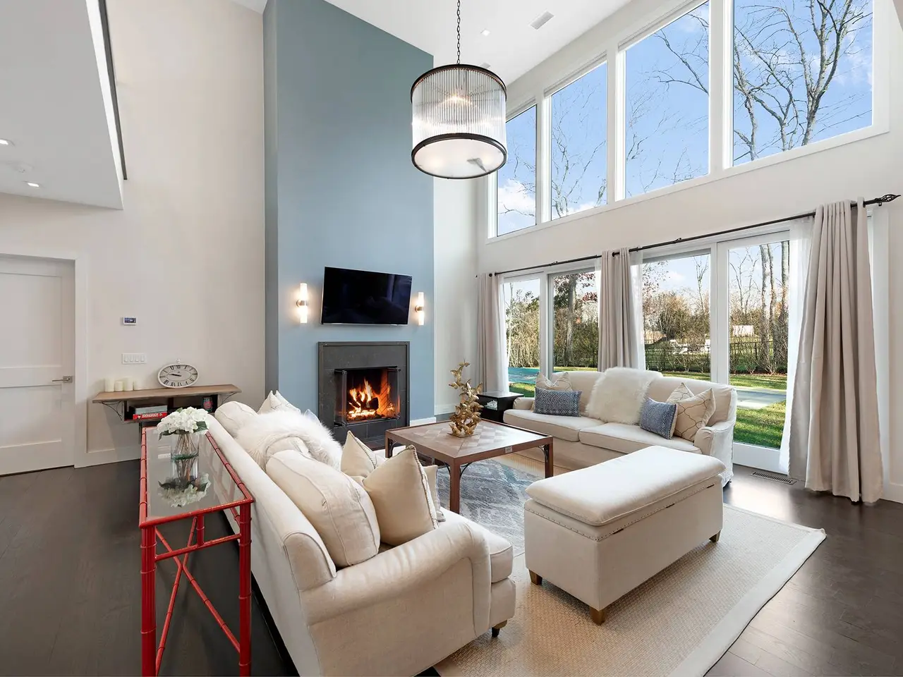 Located in the Village of Sag Harbor, this pristine contemporary home features four bedrooms, three full and one half bathrooms. Natural light floods the spacious double-height living room with a fireplace and is open to a formal dining room and a sleek white chef's kitchen with a center island. Two primary en suite bedrooms and two guest rooms provide accommodation together with a large entertainment area fitted with surround sound, a game room, and a gym on the finished lower level. The back grounds are highlighted by a beautiful gunite swimming pool.