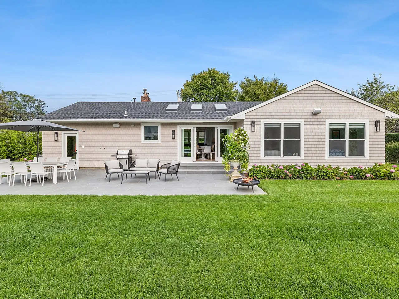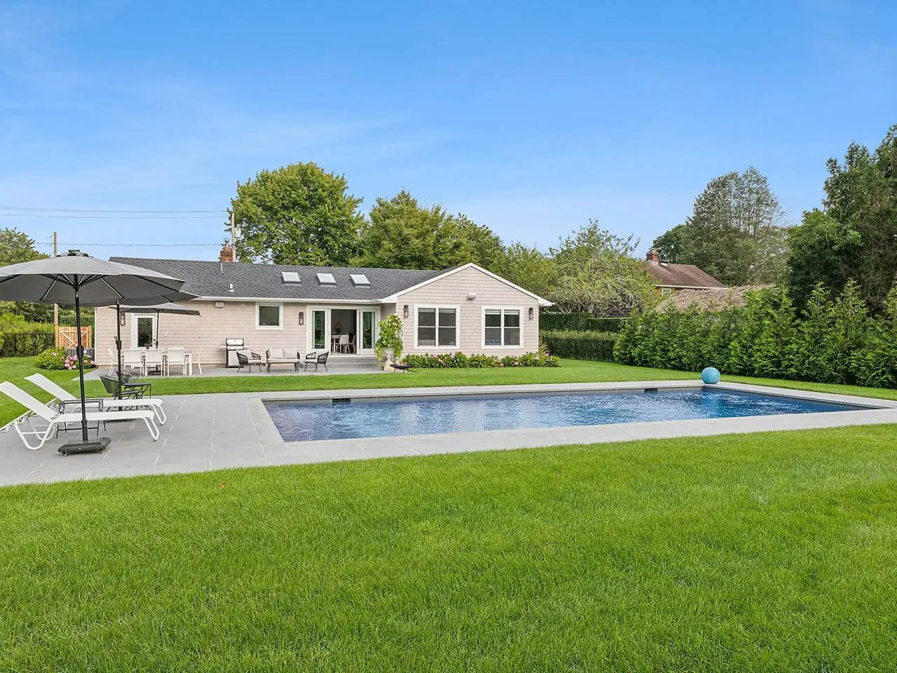Experience effortless luxury, stylized by Greg McKenzie Design, in this single-level, modern cottage, renovated in 2025 with premium finishes and state-of-the-art amenities. Perfectly designed for relaxation and entertaining, the home boasts a chef's dream kitchen with Wolf and Sub-Zero appliances, flowing into sun-drenched living areas flooded with natural light from skylights and expansive glass sliders. Entertainment-ready living includes a Sonos sound system throughout and seamless access to expansive outdoor spaces. Lounge in the heated 18x40 saltwater gunite pool, dine al fresco, or unwind on the sleek oversized ceramic patios. Privacy hedges and green giant trees ensure a serene retreat. The home offers four spacious bedrooms: a luxurious primary wing, an ensuite guest bedroom, and two additional guest rooms, complemented by three full bathrooms and an outdoor shower. Flat-panel TVs and modern finishes combine technology with serene design for comfort and style. Located just two blocks from the village center, this Hamptons escape blends convenience, style, and ultimate comfort, making it the perfect destination for a luxurious getaway.