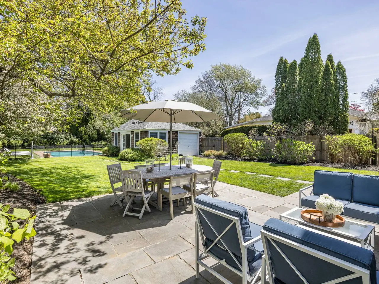 Nestled on a quiet street just steps from the heart of Southampton Village, this beautifully updated home combines charm with convenience. The light-filled interior features modern updates throughout, with two separate sitting areas leading to the kitchen and dining room overlooking the backyard. On the second floor, the house features three spacious bedrooms and two baths. The backyard is beautifully landscaped and private, including a spacious patio for outdoor dining and relaxation and a heated gunite pool. The property includes a charming pool house, complete with a comfortable sitting area and a full bathroom. This serene retreat offers the perfect blend of comfort, style, and summer fun, with easy access to world-class restaurants, boutique shops, and pristine ocean beaches-all just a stone's throw away.