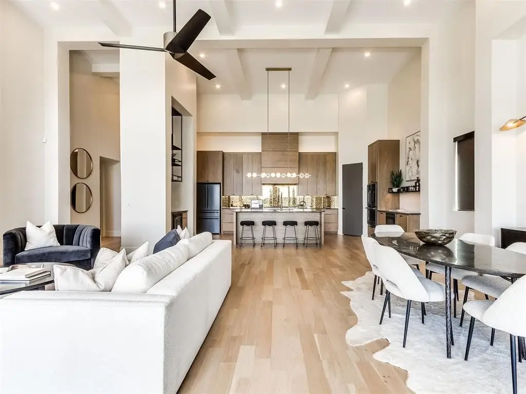 Modern sophistication meets timeless design in this stunning residence on nearly half an acre just minutes from Lake Hefner Floor-to-ceiling Pella windows flood the home with natural light highlighting soaring ceilings and wide-plank wood floors that bring warmth and elegance to every space The chef's kitchen boasts Cafe appliances professional series 30" convection French door double wall ovens 48quot; commercial style gas rangetop with 6 burners and griddle custom fit stainless interior dishwasher microwave drawer sleek custom cabinetry striking countertops and designer lighting opening seamlessly to the spacious living and dining areas The primary suite is a spa-inspired retreat with a freestanding soaking tub oversized glass shower and dual vanities framed by clean modern finishes 16 Foot ceilings 8 Garage Doors Oversized 2 car with gorgeous epoxy floors For added piece of mind this home is equipped with spray foam insulation ensuring to be more efficient Step outside to an impressive back patio anchored by a dramatic floor-to-ceiling stone wall - a true showpiece and entertainer's dream The expansive backyard is ideal for a future pool and pool house offering endless opportunities for outdoor living With architectural drama refined finishes and a layout designed for both entertaining and everyday luxury this home is nothing short of unforgettable