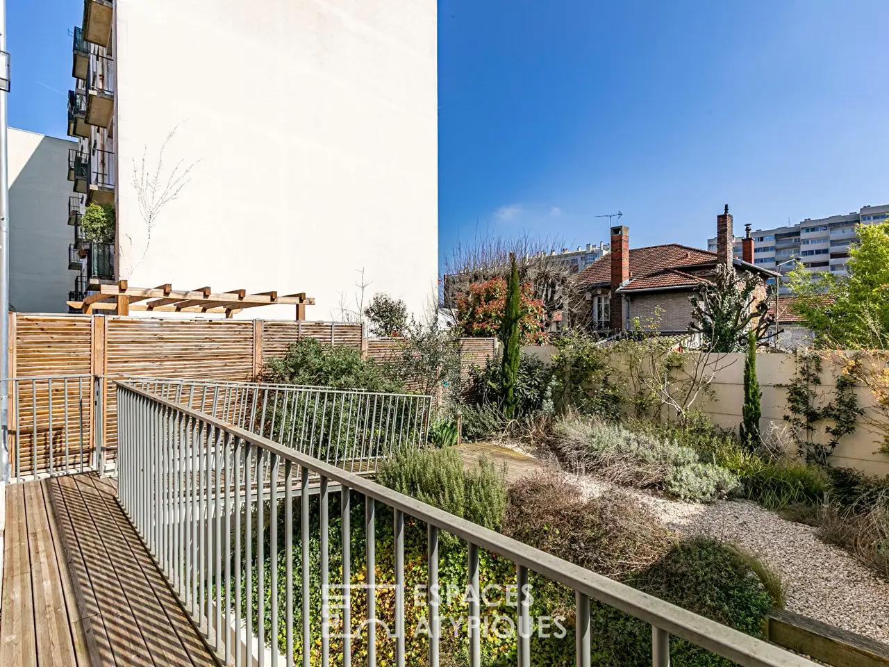 Close to the city center and just a 5-minute walk from the Paul Vaillant-Couturier metro station (Line 7), this house by a visionary bio-climatic architect developing around 207m2 of living space is built on a 180m2 plot. Once through the gate, the entrance allows direct access to the main living room facing East-West totaling approximately 50m2 and having a cloakroom. The lower level hosts a large dining kitchen of 40m2 fully fitted and equipped and opening onto a terrace from which it will be pleasant to share rich convivial moments with family or friends. A lavatory and a technical room that can be used as a saddler complete this level. The first floor accessible by the main staircase of this house consists of 4 bright bedrooms, a bathroom and a separate toilet. On the 2nd and last floor, the vast master suite of 16m2 with a dressing room, a bathroom and a toilet room offers an unobstructed view of the surrounding green spaces and has a fitted terrace facing south-west. This bright place out of time is conducive to reading and rest. The dry garden of this bio-climatic house with extraordinary energy performance has been designed to provide a pleasant and rational outdoor space requiring little maintenance. It is also accessible from the main living room and from the kitchen via a staircase and a walkway made of wood and metal with the most beautiful effect, giving this house a unique architectural signature. The outdoor space facing west and located at the front of this house allows you to park a vehicle in a secure way and also offers the possibility of enjoying the sun from the ground floor. Small town bordering Paris, Villejuif has, in places, the look of a village. Positioned between the Seine and Bievre valleys, on the Longboyau plateau, the town is the highest point in the Val de Marne department. Its local shops, its transport (Metro and RER) as well as its education centers (primary, secondary and higher education) make it a popular city where life is good. Metro: 5 minutes on foot Schools: 2 minutes on foot Shops: 7 minutes on foot REF. 10247 Additional information * 7 rooms * 5 bedrooms * 1 bathroom * 1 bathroom * 2 floors in the building * Outdoor space : 180 SQM * Parking : 1 parking space Energy Performance Certificate Primary energy consumption a : 41 kWh/m2.an High performance housing