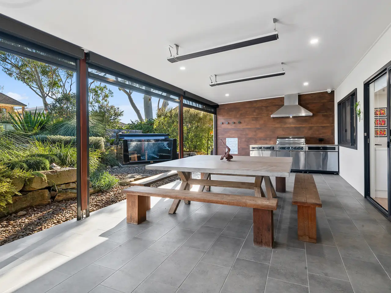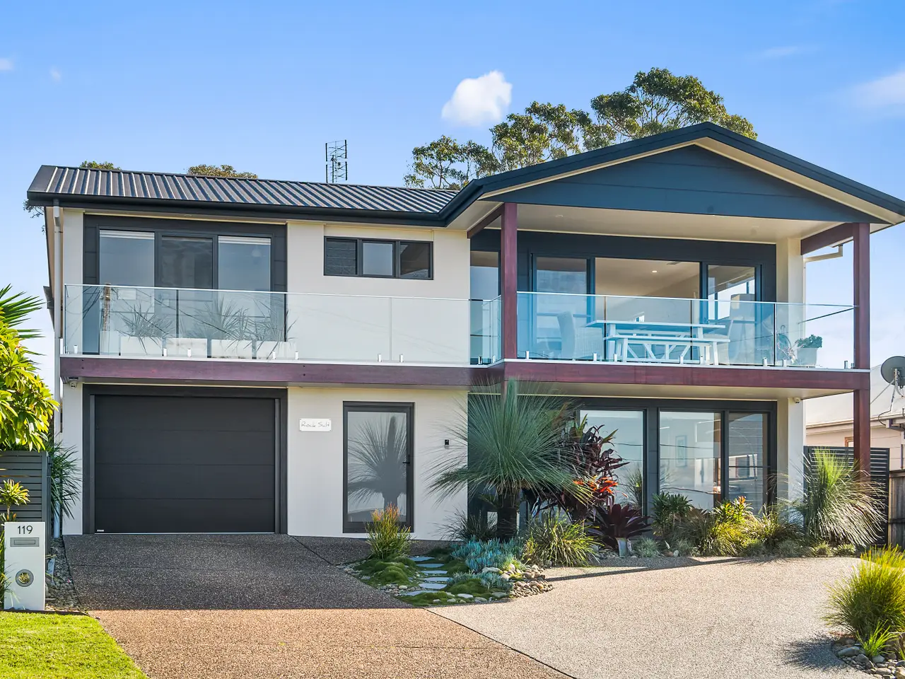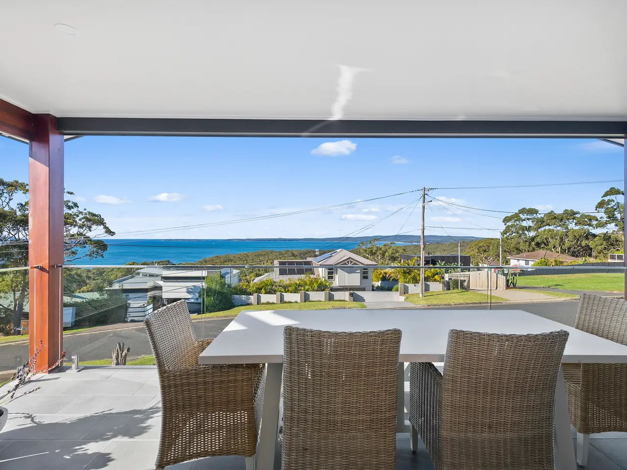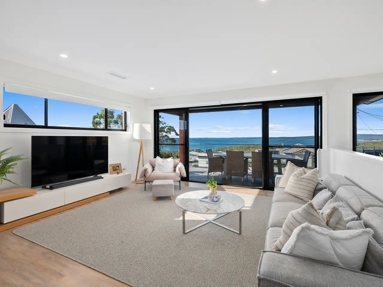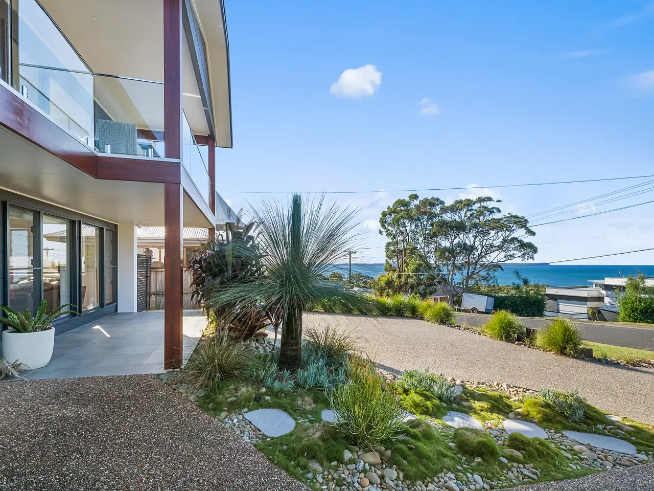 A reimagining of the great Aussie beach house, 'Rock Salt' elevates coastal living-literally and stylistically. Elevated above Jervis Bay, this striking two-storey sanctuary captures panoramic ocean views while delivering a lifestyle designed for entertaining across generations. Inside, four bedrooms and three bathrooms offer supreme flexibility, anchored by a breathtaking upper-level master retreat with balcony access, walk-in robe and ensuite. A second full kitchen downstairs joins an open-plan living area, billiards room, and gym, ensuring space and comfort for every kind of gathering. Meanwhile, the main kitchen reveals a walk-in pantry, premium integrated appliances, and seascape vistas. Outdoors, native landscaping wraps around a level lawn, a luxurious spa, and a covered alfresco zone with built-in BBQ kitchen, heating, and weather screens-designed for summer celebrations and cosy winter evenings alike. High-spec inclusions like 7.7kW solar, ducted air, and smart home features complete the package. Just steps from The Country Club Vincentia golf course, the white sands of Jervis Bay, and the relaxed cafes and restaurants of Vincentia and Huskisson, 'Rock Salt' is where modern coastal design meets the rhythm of an easy going, salt-kissed lifestyle. • Elevated position captures sweeping views across Jervis Bay • Two-storey layout with four bedrooms and three bathrooms • Luxe upper-level master suite with ocean-facing balcony and ensuite • Dual kitchens, including a downstairs setup ideal for entertaining • Expansive alfresco with built-in BBQ, heating, and weather protection • Native gardens, level backyard, and spa create a private outdoor retreat • Versatile spaces, including billiards room, gym, home office and multiple living zones • Large concrete driveway with off-street space for boat or caravan • Double garage with internal access for added ease • Enhanced features including ducted air, 7.7kW solar, and smart systems