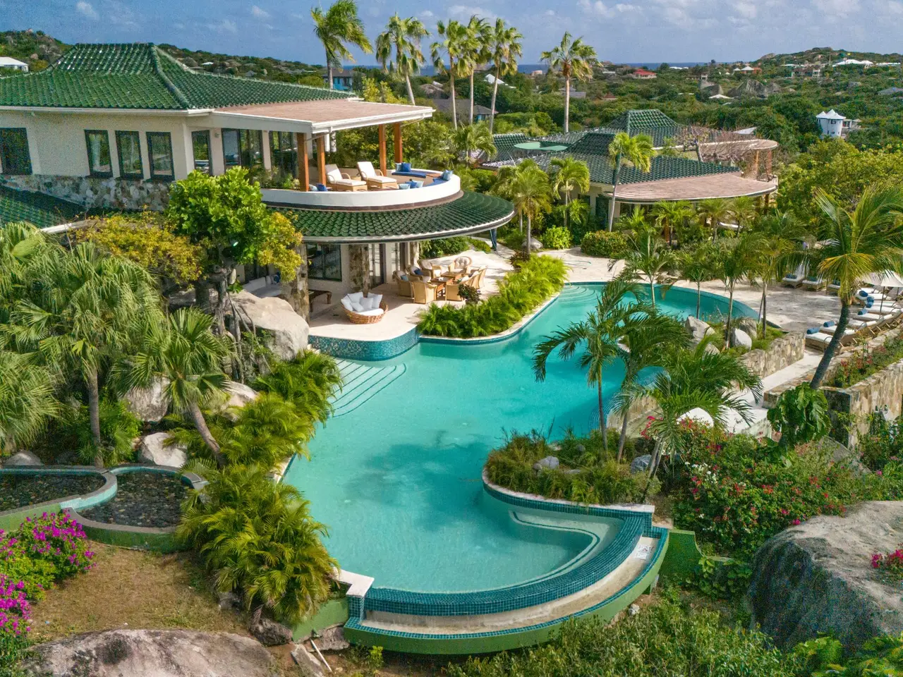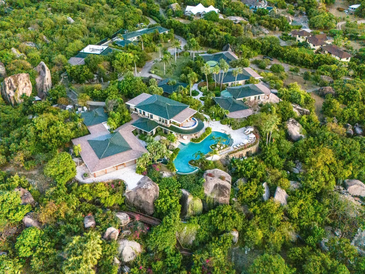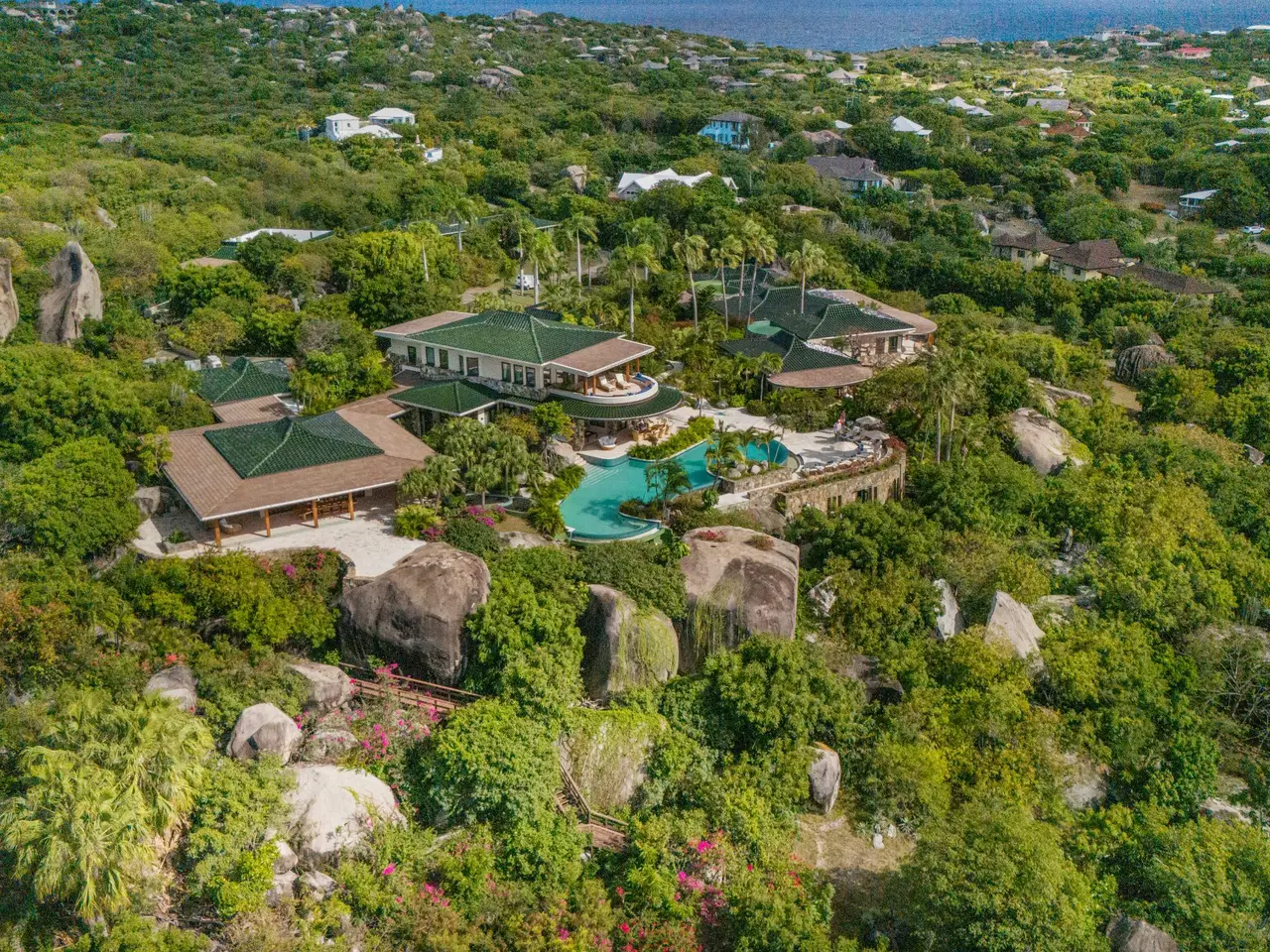 Seldom do beachfront estates comprising 18 acres of freehold land and over 1,000 feet of pristine white sand come to the market in the Caribbean. For over forty years, Valley Trunk Estate has remained in the same ownership, developed as a retreat serving several generations of the same family. Tucked behind immense granite boulders, the property offers security and privacy within carefully landscaped grounds which front the secluded, white sand beach. Following an extensive refurbishment programme, completed in 2024, the estate is now available for sale through CIRE | British Virgin Islands and Premier Estate Properties. The Villa Set around a freeform, infinity pool overlooking the ocean, the main villa extends to over 20,000 square feet of covered area featuring 10 en-suite bedrooms, including a master suite, with living areas opening to the large, freeform swimming pool. A separate 4-bedroom villa with a tennis court rounds off the guest accommodation. Separate staff quarters are available for employees including a two-bedroom manager’s house. The main villa is carefully situated on a low ridge sixty feet above the beach, maximizing the stunning sunset views looking west over the Sir Francis Drake Channel and the myriad of islands within the BVI. The master suite features an open terrace overlooking the pool while the remaining nine bedroom suites are situated in three separate blocks wrapping around the ridge taking advantage of the spectacular ocean views. The extensive refurbishment of the villa created a modern interior redesign to a clean coastal aesthetic with bright interiors crafted from natural materials, all accented with natural treasures from Africa combined with Italian craftsmanship. The family areas in the main villa feature an extensive lounge with built-in bar and a separate cinema screening room. The living accommodation opens to the pool terrace with covered areas for exterior living, making this central building a natural place to entertain guests. A second day room with small kitchen is located between two of the bedroom units, providing an additional living area away from the master suite. The buildings within the main villa are connected by landscaped pathways carefully designed to separate the guest entertainment areas from the service areas. Pool & Terrace Set around a freeform, infinity pool overlooking the ocean, the main villa extends to over 20,000 square feet of covered area, contained within the central, two storey villa with master bedroom and a further nine bedroom suites within three standalone buildings. When first developed, the main villa was carefully situated on a low ridge sixty feet above the beach, maximizing the stunning sunset views looking west over the Sir Francis Drake Channel and the myriad of islands within the BVI. Dining The freeform pool, with infinity edges, is the centre piece of the villa measuring almost eighty feet in length. Incorporating landscaped areas and the panoramic views of the grounds and sea, the pool is the focus for entertainment, linking the bedrooms with the master suite and the dining pavilion. A water feature by the dining pavilion circulates water for the pool while covered terraces and sundecks provide plenty of space for guests to relax, with the choice of sun or shade. Master Suite Extending to over 1,100 sq ft, the master suite features the master bedroom and seating area, bathroom, closet and office. The twin folding doors open to the extensive terrace with roof overhang providing both shaded and sunny areas. Panoramic views of the ocean, islands and sunset provide a spectacular backdrop to the master suite. Each bedroom suite features an en-suite bathroom with travertine floors and glass tiles, new fixtures and bespoke vanities. New windows and folding French doors were selected for smoother indoor-outdoor living to complement the airy, fresh and natural design, while raised ceilings and ceiling fans encourage a blend of seamless outdoor living. Beach and Grounds Set over 18 acres of landscaped grounds, Valley Trunk Estate fronts one of the most spectacular beaches in the Caribbean. White sand stretching over 1,000 feet has rocky promontories at either end providing a playground in the rock pools and snorkeling in dramatic underwater seascapes. From the boulder fields along the rear and northern boundaries to the open grass areas closer to the beach, the eighteen acres of grounds provide a backdrop for guests exploring the many pathways leading from the main house to the beach. The grounds are filled with mango, almond, starfruit and cashew trees and a diverse range of native and exotic plants, many of which are grown at the on-site nursery. Valley Trunk Estate was developed as a generational home, a place for families to grow up, learn about the sea, enjoy the outdoors. To visit Valley Trunk is to experience a private world, an oasis where buildings merge into the landscape and land becomes the sea. Barefoot on the beach and island living. Privacy but not isolation. The rhythm of Valley Trunk is experienced, not sold.