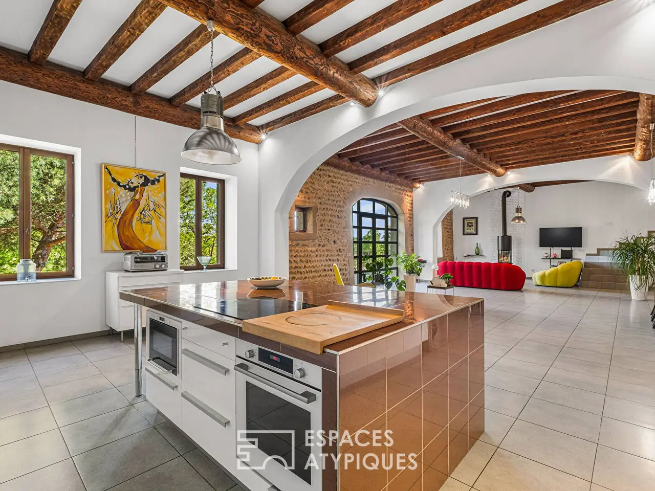 Located in Vourles, southwest of Lyon, this old farmhouse has been carefully transformed into a loft-style home. Behind its stone walls, the property reveals a warm atmosphere, blending old-world charm with a modern renovation. Exposed beams, raw materials, open spaces, and contemporary finishes create a harmonious balance. The property exudes a true personality, rare within 20 minutes of Lyon.The house offers 240 sqm of living space on a 2,975 sqm wooded plot. It includes four bedrooms, including a master suite, an office, a wine cellar, and a tasting room. The living areas boast high ceilings and generous volumes. The fluid and functional layout has been designed to accommodate all lifestyles, from shared moments to more intimate spaces. Outside, the landscaped garden offers a privileged setting, with no overlooked views.A carefully designed Japanese garden, a jacuzzi, and vast green spaces extend the interior volumes in a spirit of tranquility. The unobstructed view and the ambient calm reinforce the feeling of being elsewhere, while remaining close to the city. This property seduces with its singularity, its character and the quality of its renovation. A house of character, designed as a unique place to live, in the heart of nature, at the gates of Lyon.ENERGY CLASS: E / CLIMATE CLASS: B Estimated average amount of annual energy expenditure for standard use, established from energy prices for the years 2021, 2022, 2023 (subscriptions included): between EUR4,660 and EUR6,360.Contact: Florian - 06 14 12 03 34REF. 11041-1Additional information* 7 rooms* 4 bedrooms* 1 bathroom* 1 bathroom* Outdoor space : 2975 SQM* Parking : 6 parking spaces* Property tax : 1 900 €Energy Performance CertificatePrimary energy consumptione : 284 kWh/m2.yearHigh performance housing*A*B*C*D*284kWh/m2.year9*kg CO2/m2.yearE*F*GExtremely poor housing performance* Of which greenhouse gas emissionsb : 9 kg CO2/m2.yearLow CO2 emissions*A*9kg CO2/m2.yearB*C*D*E*F*GVery high CO2 emissionsEstimated average annual energy costs for standard use, indexed to specific years 2021, 2022, 2023 : between 4660 € and 6360 € Subscription IncludedAgency feesThe fees include VAT and are payable by the vendorMediatorMediation Franchise-Consommateurswww.mediation-franchise.com29 Boulevard de Courcelles 75008 ParisInformation on the risks to which this property is exposed is available on the Geohazards website : www.georisques.gouv.fr
