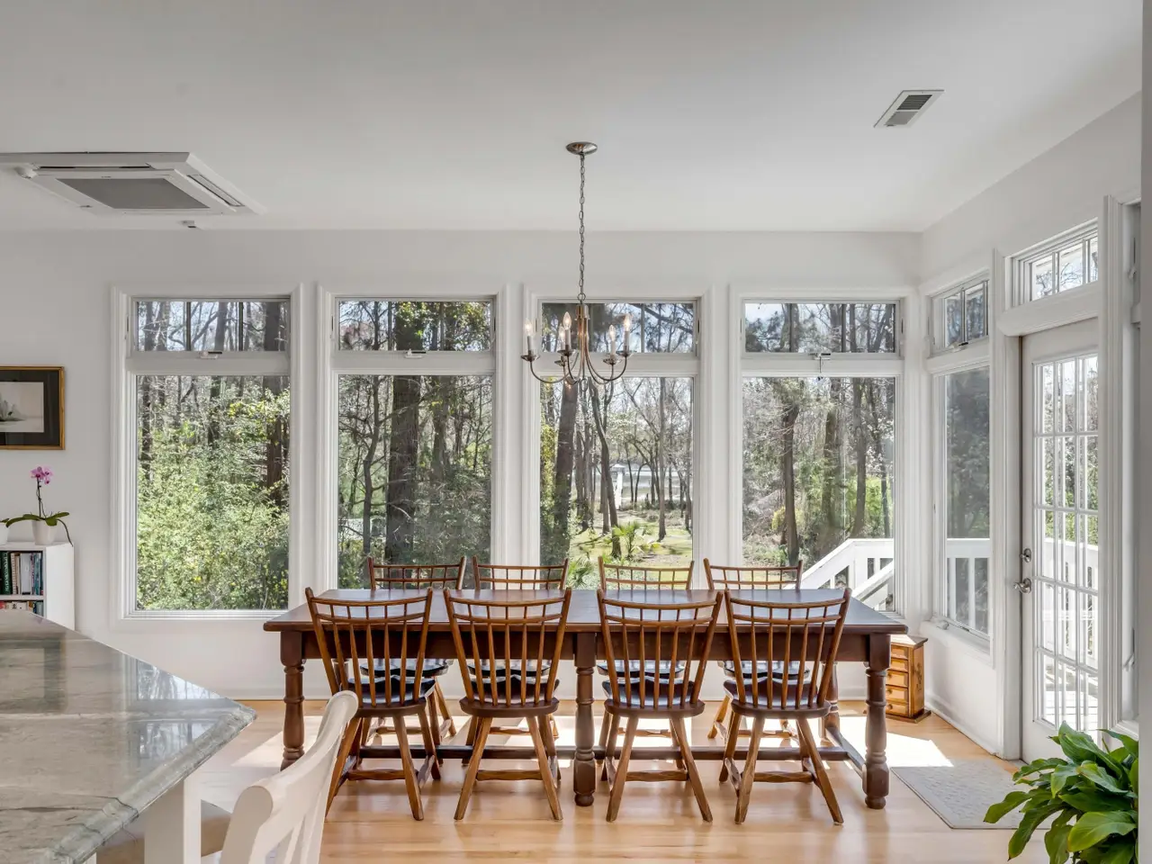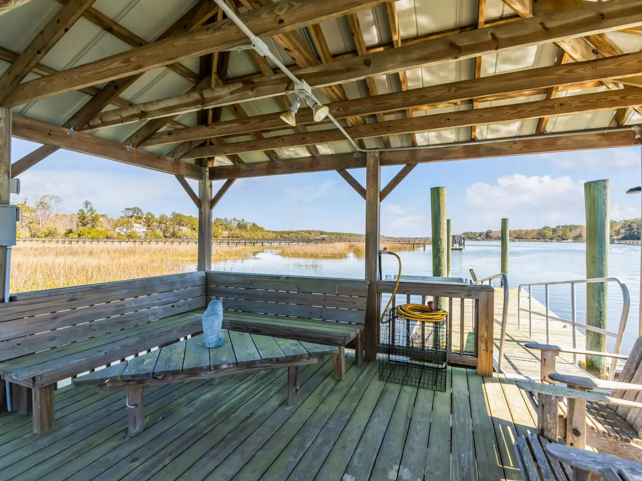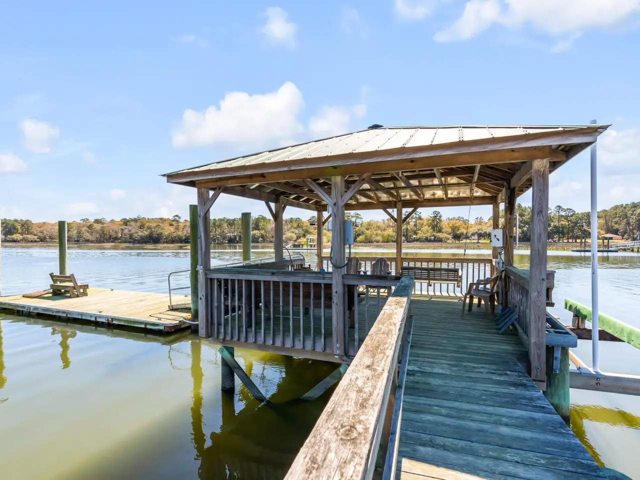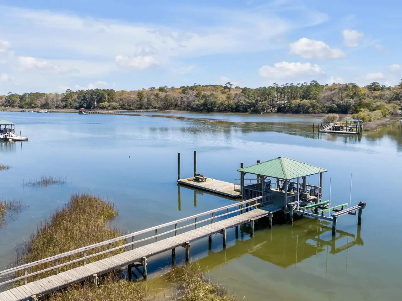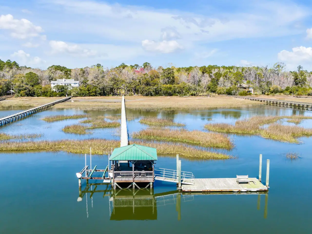 Set on 3.5 acres in Longcreek Plantation, one of Wadmalaw Island’s premier waterfront communities, this deep water estate offers the perfect blend of privacy, convenience, and luxury. Located in a private gated neighborhood, it’s just ten minutes from Johns Island dining and shopping, yet feels worlds away. Enjoy quick, direct ocean access from your true deep water dock (eight feet at mean low water), complete with a 12,000-pound boat lift. The home features a multi-car garage, modernized kitchen and bathrooms, elevator, saltwater pool, greenhouse, whole-house generator, and dedicated office space—all within a highly efficient layout. The open floor plan centers around a chef’s kitchen outfitted with Wolf and Sub-Zero appliances, plus a bar with an ice maker. The primary suite is thoughtfully separated, offering a peaceful retreat. A media room provides flexibility and could easily serve as a formal dining room. Expansive windows on both the front and back of the home flood the space with natural light and showcase gorgeous Lowcountry views. The property is incredibly private—except for the occasional deer or turkey sighting. This is Lowcountry deep water living at its finest.
