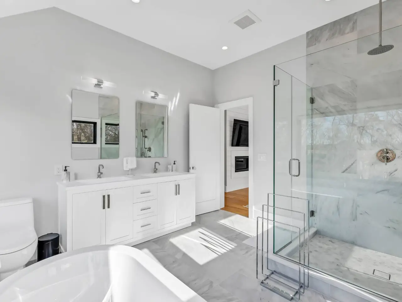 Glass-walled rain shower