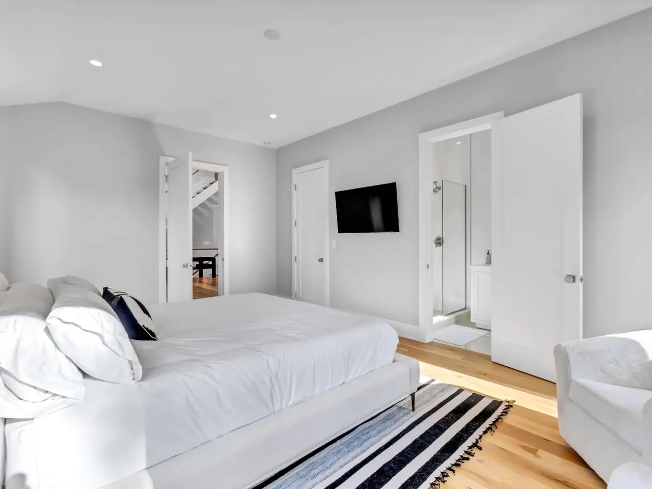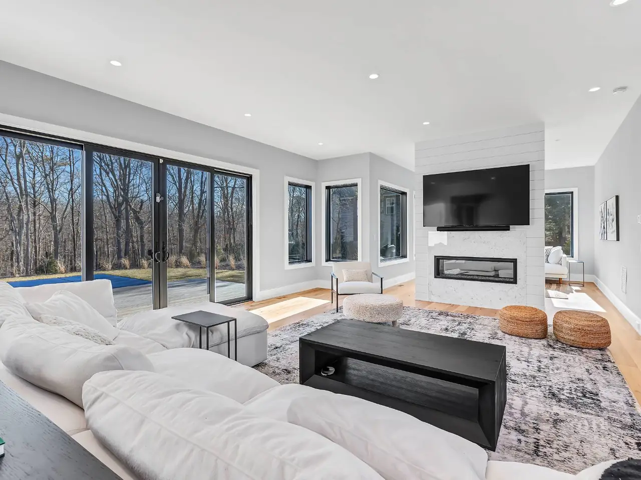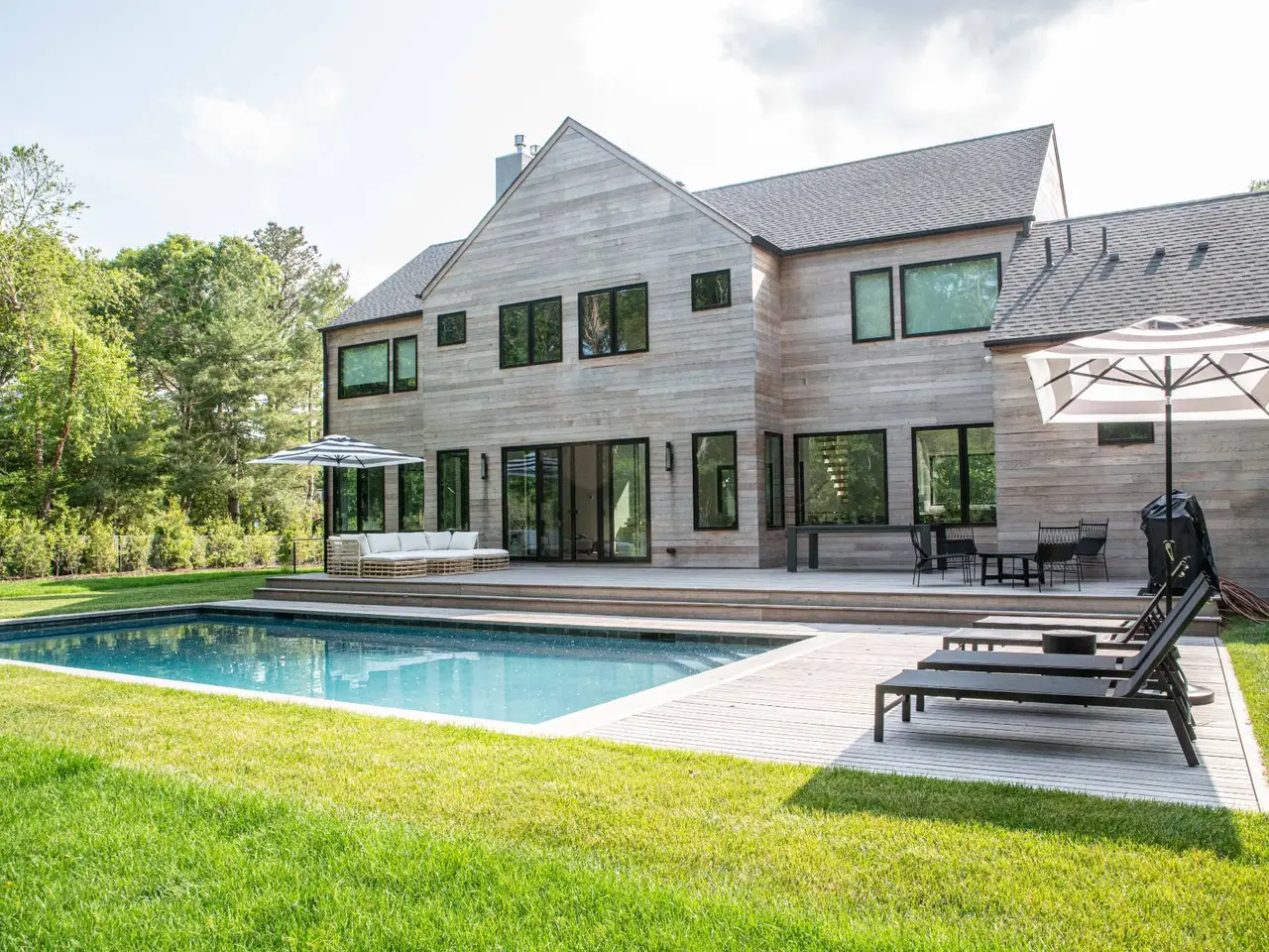 This elegant new construction home is just moments from desirable Beach Lane in Wainscott. This traditional-style home is approximately 5,200 square feet on three levels with six bedrooms, six full baths, and is situated on .59 acre in a quiet Wainscott street. Complete with chic furnishings throughout the three finished levels, with a great backyard for entertaining around the heated gunite pool and sun deck. Inside, through the double-height entry foyer, light shines from the walls of rear-facing sliding glass doors throughout the open-concept main level. Pristine gatherings and living spaces are anchored by a freestanding fireplace, complimented by stunning shiplap accents, elegant hardwood white oak floors, and recessed lighting. The impressive eat-in kitchen features premium appliances, quartzite countertops, and a convenient adjacent dining space. On the main level, the spacious and bright Primary bedroom has arched ceilings and boasts a luxe bath with a deep soaking tub, a glass-walled rain shower, and dual vanities. Upstairs are 4 bedrooms connected by a bright balcony, an ensuite Primary and another ensuite Guest bedroom. Two other bedrooms share a bath. The fully finished lower level offers additional space to relax and entertain, plus another en-suite bedroom. Your next vacation will be unforgettable in this stunning luxury property. Just moments from famed ocean beaches and close to all the elevated experiences available in the Villages of East Hampton, Bridgehampton, and Sag Harbor.