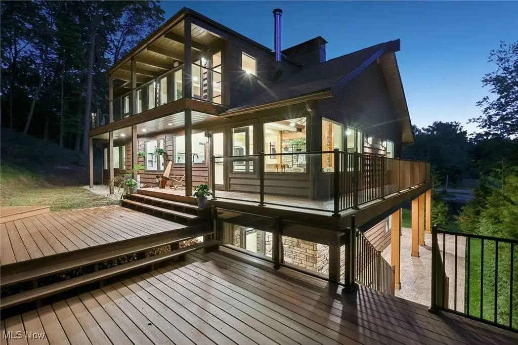Discover a one-of-a-kind luxury retreat nestled in the heart of Waite Hill, where refined living, thoughtful design, and serene natural beauty come together in perfect harmony. Fully renovated from top to bottom, this 4-bedroom, 5.5-bath home is situated on a 5 acre wooded lot with a winding driveway, tranquil pond, and minimalist landscaping designed to blend seamlessly with the natural surroundings. High-quality finishes and meticulous attention to detail are evident throughout. The stunning chef's kitchen features quartzite countertops, Cafe appliances, custom cabinetry, and an open dining area. The main living space is anchored by a dramatic floor-to-ceiling stone fireplace. The spacious primary suite includes a walk-in closet and spa-like bath with a stone walk-in shower, multiple shower heads, and double vanity. A second ensuite bedroom, laundry, and half bath complete the main floor. The garden level offers a private guest suite, two full bathrooms, a large living area, fully equipped gym, swim spa, and a gallery-style hallway. An elevator connects the garden level to the main floor for ease and accessibility. The third floor features a loft with a wood-burning stove, a balcony with peaceful wooded views, and a private apartment with full kitchen, bedroom, and bath-ideal for guests or extended family. Additional highlights include a 3-car attached garage with an optional fourth bay currently used for the swim spa, second-story front and rear porches, and bonus storage space above the garage. Zoned heating and cooling ensure year-round comfort, while dimmable lighting throughout the home allows you to tailor the ambiance to any mood or occasion. Stylish furnishings from Restoration Hardware, Pottery Barn, and Arhaus-most included-complete this rare offering. An adjacent 5-acre parcel is also available for purchase, offering the opportunity to expand your private estate. A truly one-of-a-kind Waite Hill retreat combining luxury, privacy, and natural beauty.